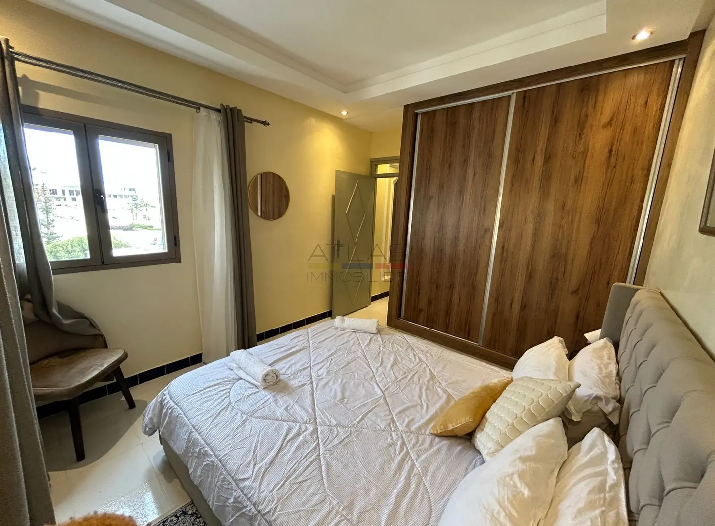 The sleeping area features a comfortable bedroom with built-in storage, offering both calm and functionality. A modern shower room with toilet completes the property and perfectly meets the requirements of year-round living. Thanks to its proximity to the sea, local amenities, and main access routes, this apartment represents a highly sought-after opportunity for anyone looking to rent a furnished apartment in Essaouira on a long-term basis.