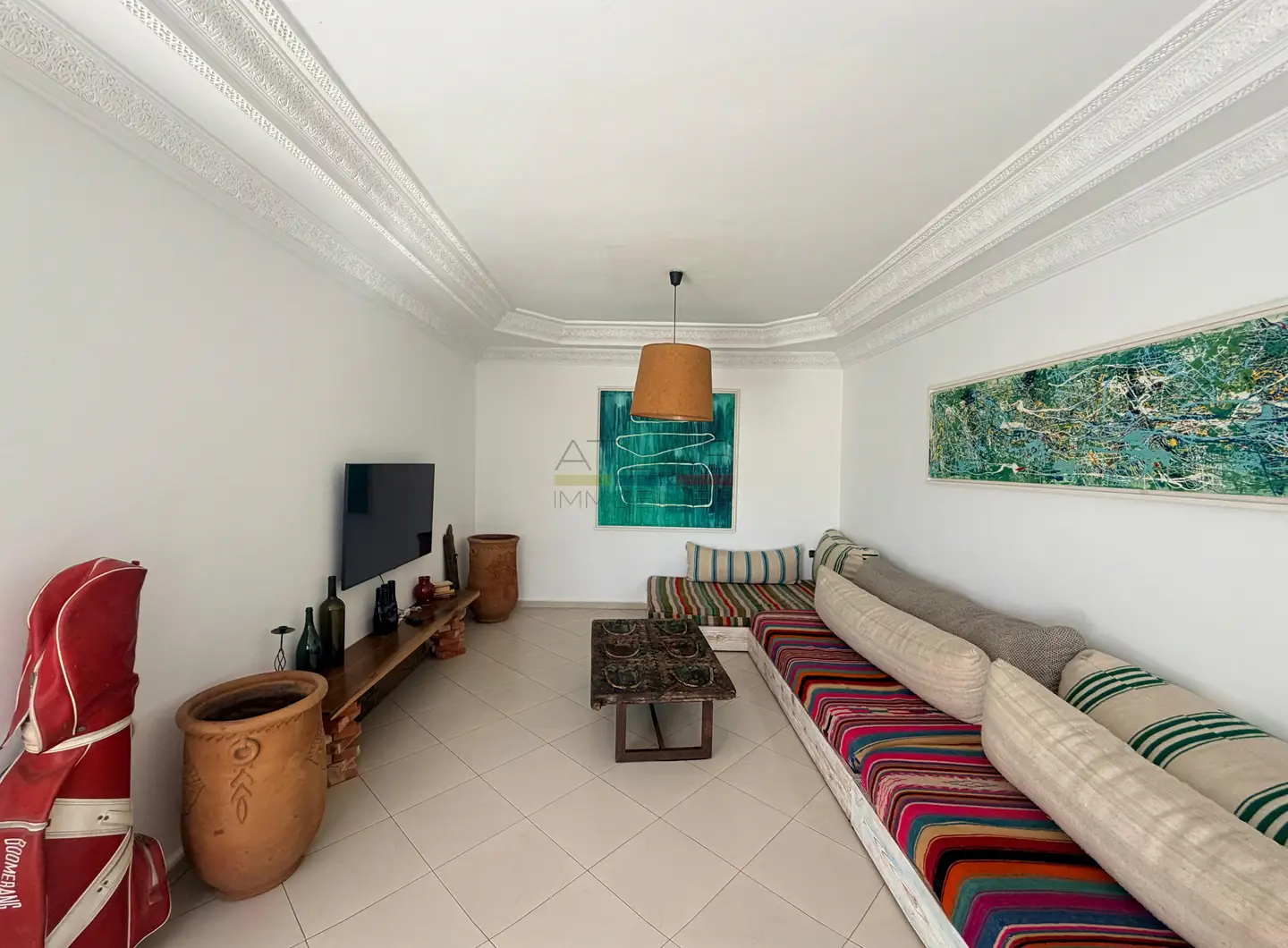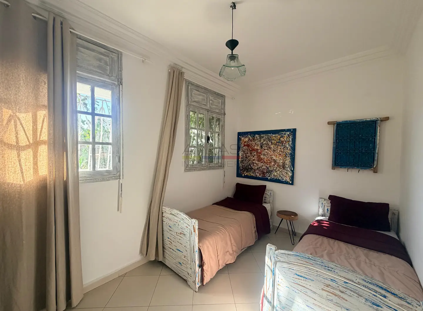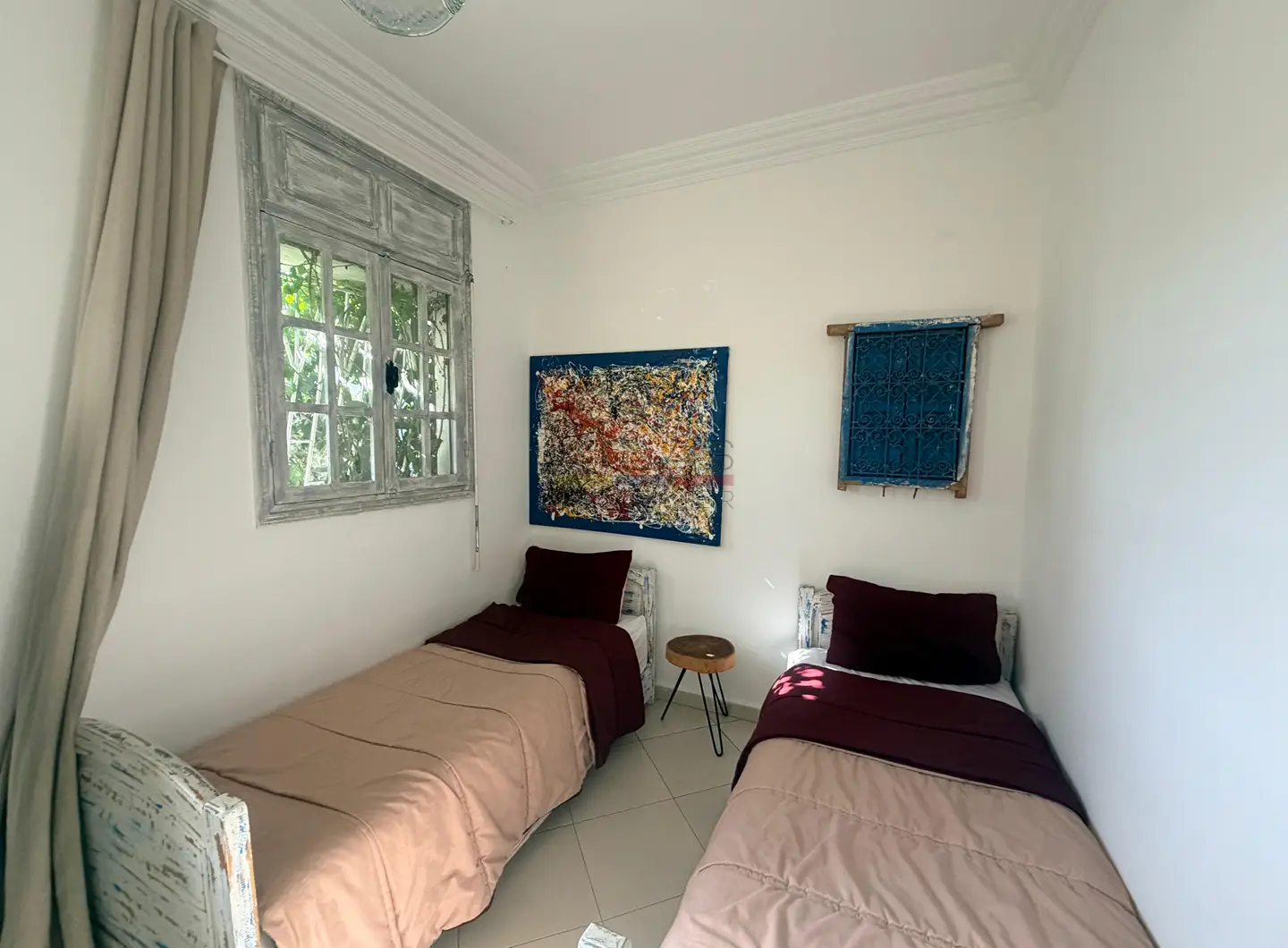 This property stands out thanks to its strategic location and modern comfort. The 60 sqm private garden acts as a true extension of the interior spaces, ideal for outdoor dining, relaxation or a secure play area. Offered fully furnished, the apartment allows for immediate occupancy, making it an attractive option for those seeking a long-term rental in Essaouira.
