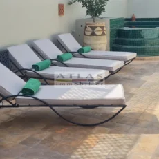 Upstairs, the suites had been designed to guarantee optimum comfort, with bedding carefully selected to provide a warm, soothing space. The unoverlooked terrace, equipped with a pergola, a pool and a solarium, completed this privileged setting in the heart of the medina.
