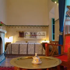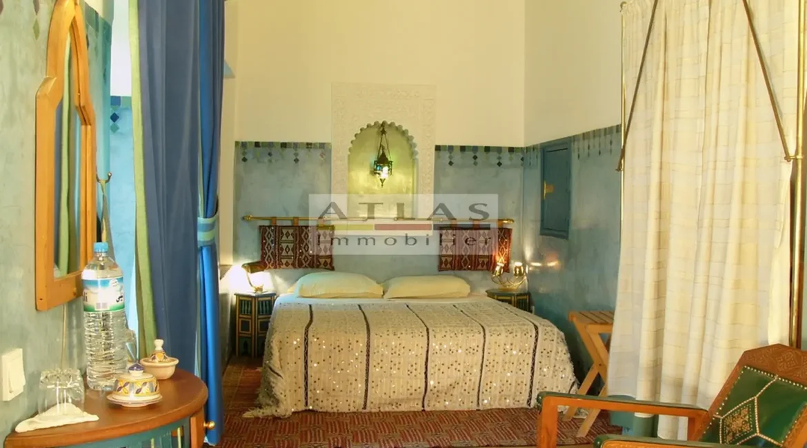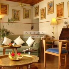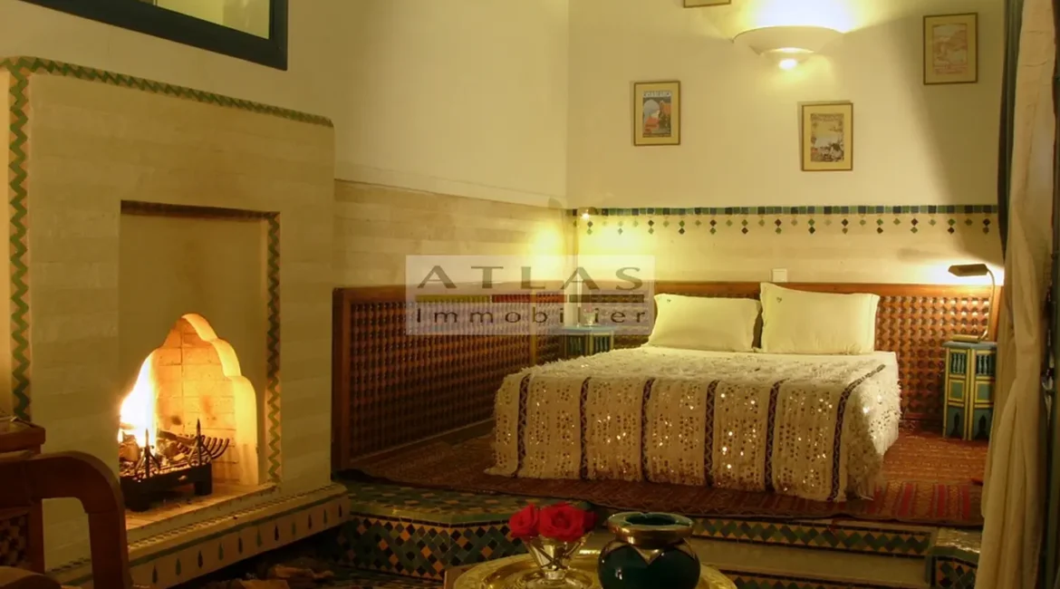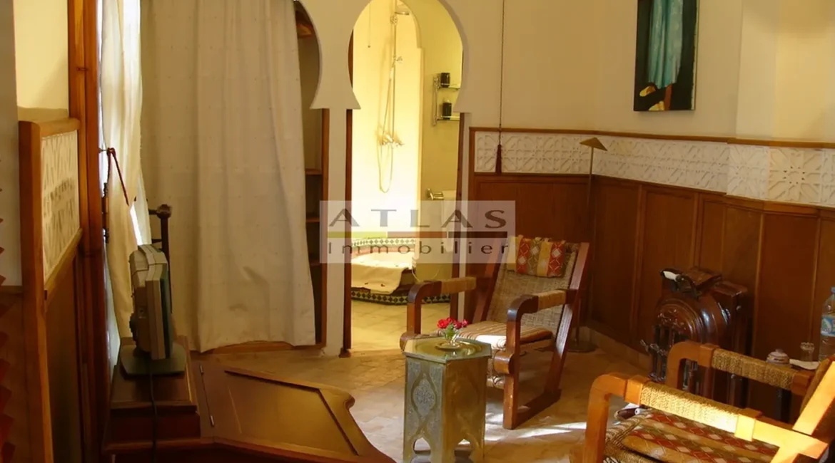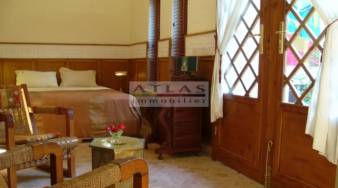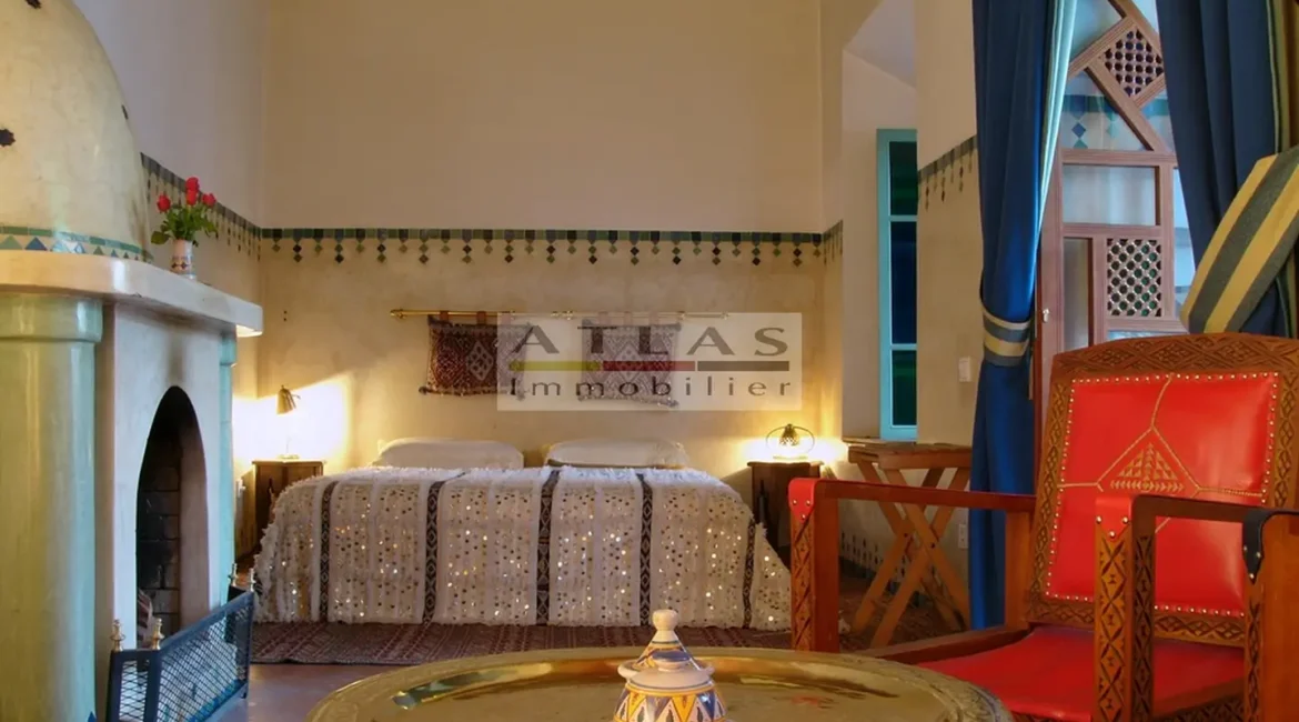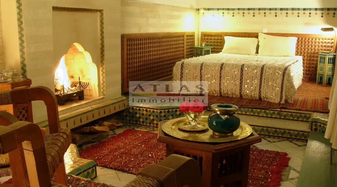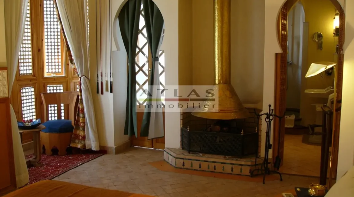 The terrace, a genuine additional living space, offered superb views over the medina and featured a variety of layouts: solarium, shaded lounges, dining areas and pergolas. Fully air-conditioned, the riad featured fireplaces in every room and high-quality traditional finishes: majestic khtaj doors, finely worked zelliges, delicate arabesques and moucharabieh shutters. Sold furnished, equipped and classified as a guest house, it represented a unique opportunity for investment or prestige residence.