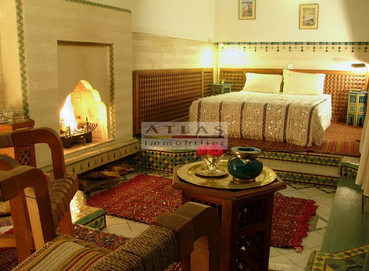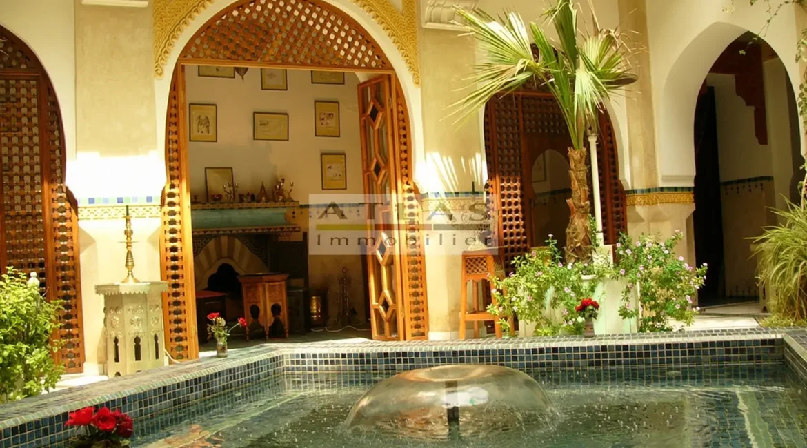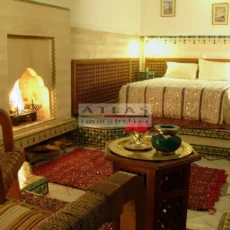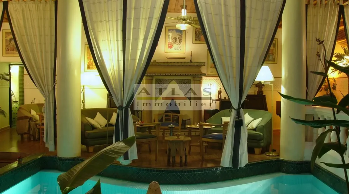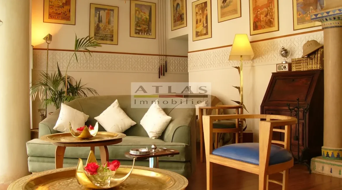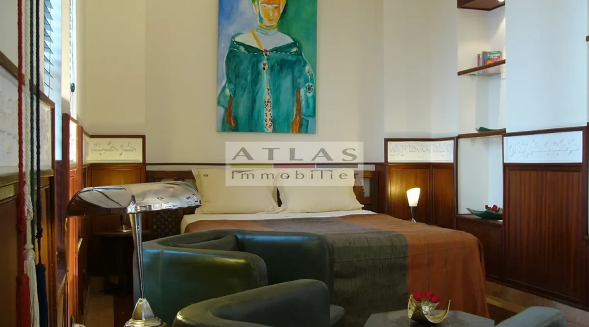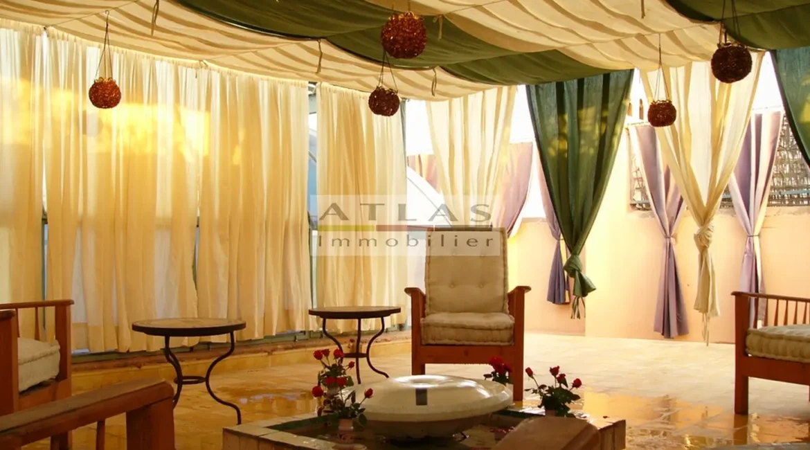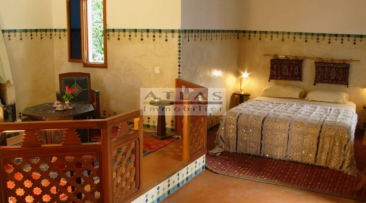 The terrace, a genuine additional living space, offered superb views over the medina and featured a variety of layouts: solarium, shaded lounges, dining areas and pergolas. Fully air-conditioned, the riad featured fireplaces in every room and high-quality traditional finishes: majestic khtaj doors, finely worked zelliges, delicate arabesques and moucharabieh shutters. Sold furnished, equipped and classified as a guest house, it represented a unique opportunity for investment or prestige residence.