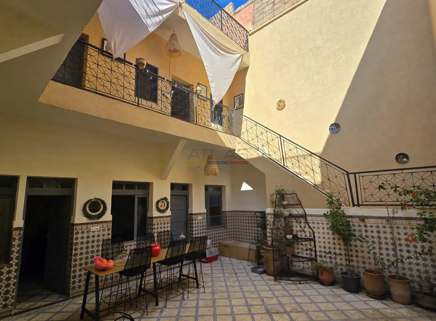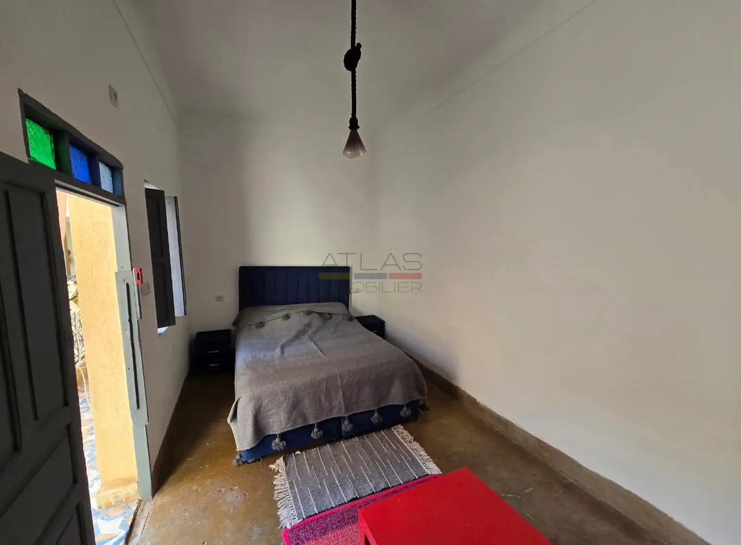Built on a 110 sqm footprint, this riad stands out for its traditional architecture organized around a large central patio, the true heart of the house, bringing natural light and ventilation to all living spaces. The layout is generous and well balanced, offering strong potential both as a family residence and as a rental or touristic investment project in Marrakech.