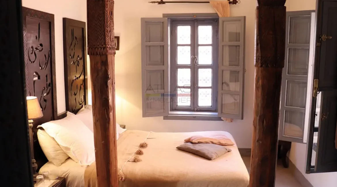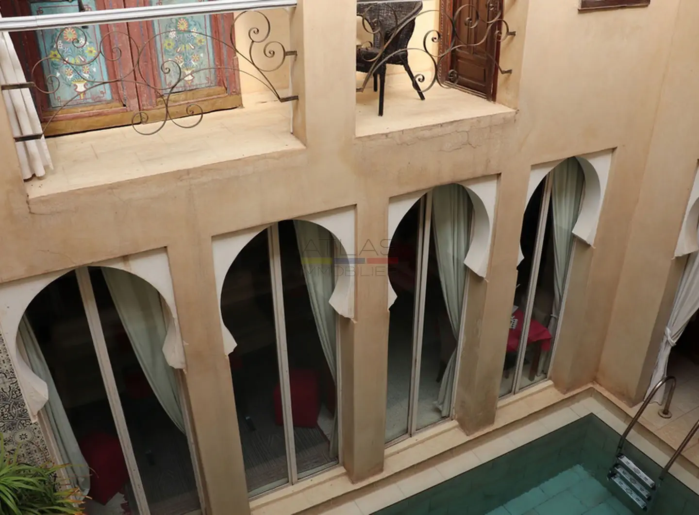 This five-bedroom Riad, with its large pool and classified as a guest house, had won over guests with its privileged location in the heart of one of the most sought-after districts of Marrakech’s medina. Impeccably managed and maintained, it generated excellent sales and represented a secure and profitable investment. Thanks to our agency’s expertise and qualified network, this property was quickly let and then sold, confirming the strong demand for this type of exceptional property.