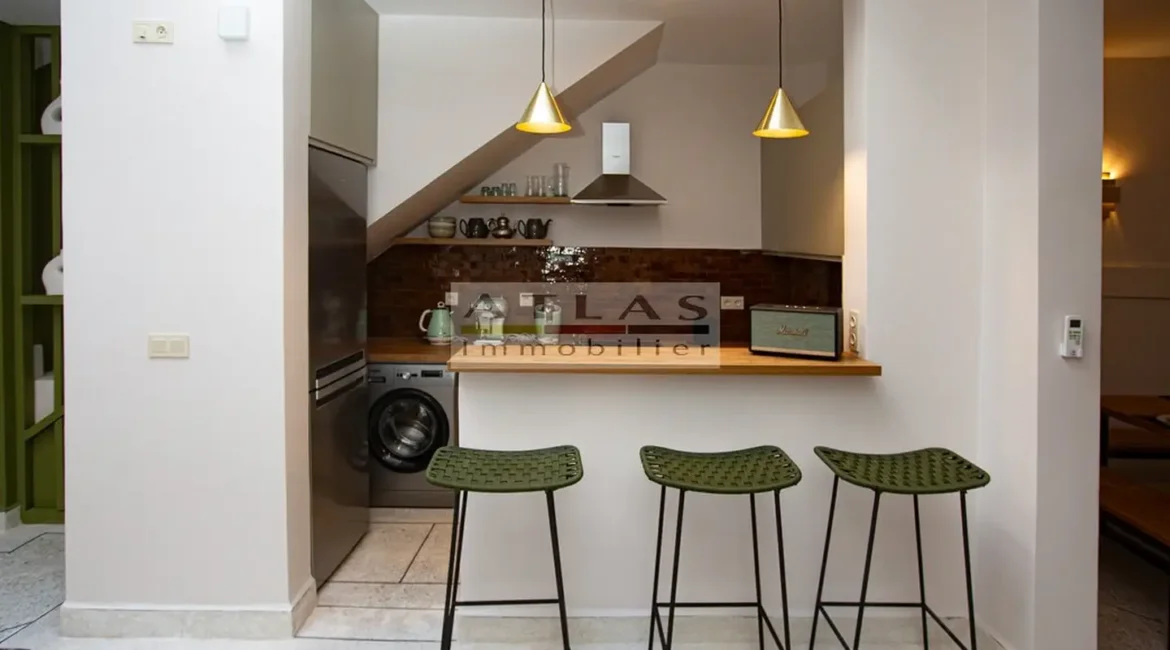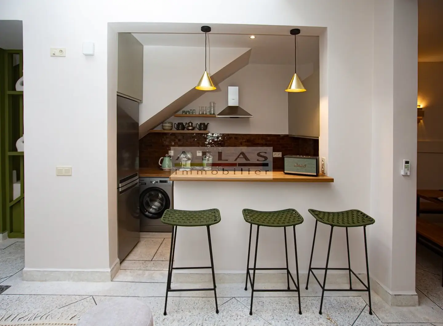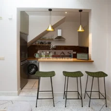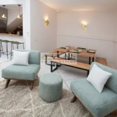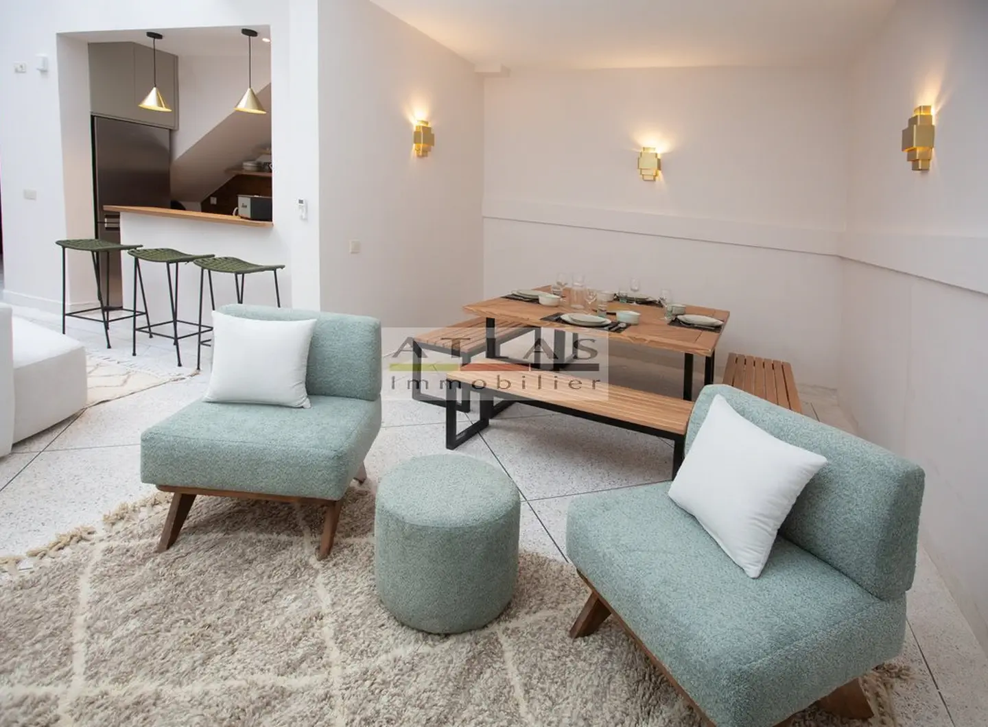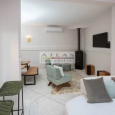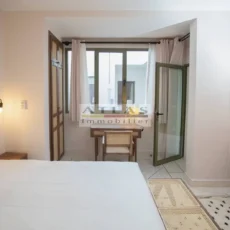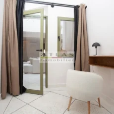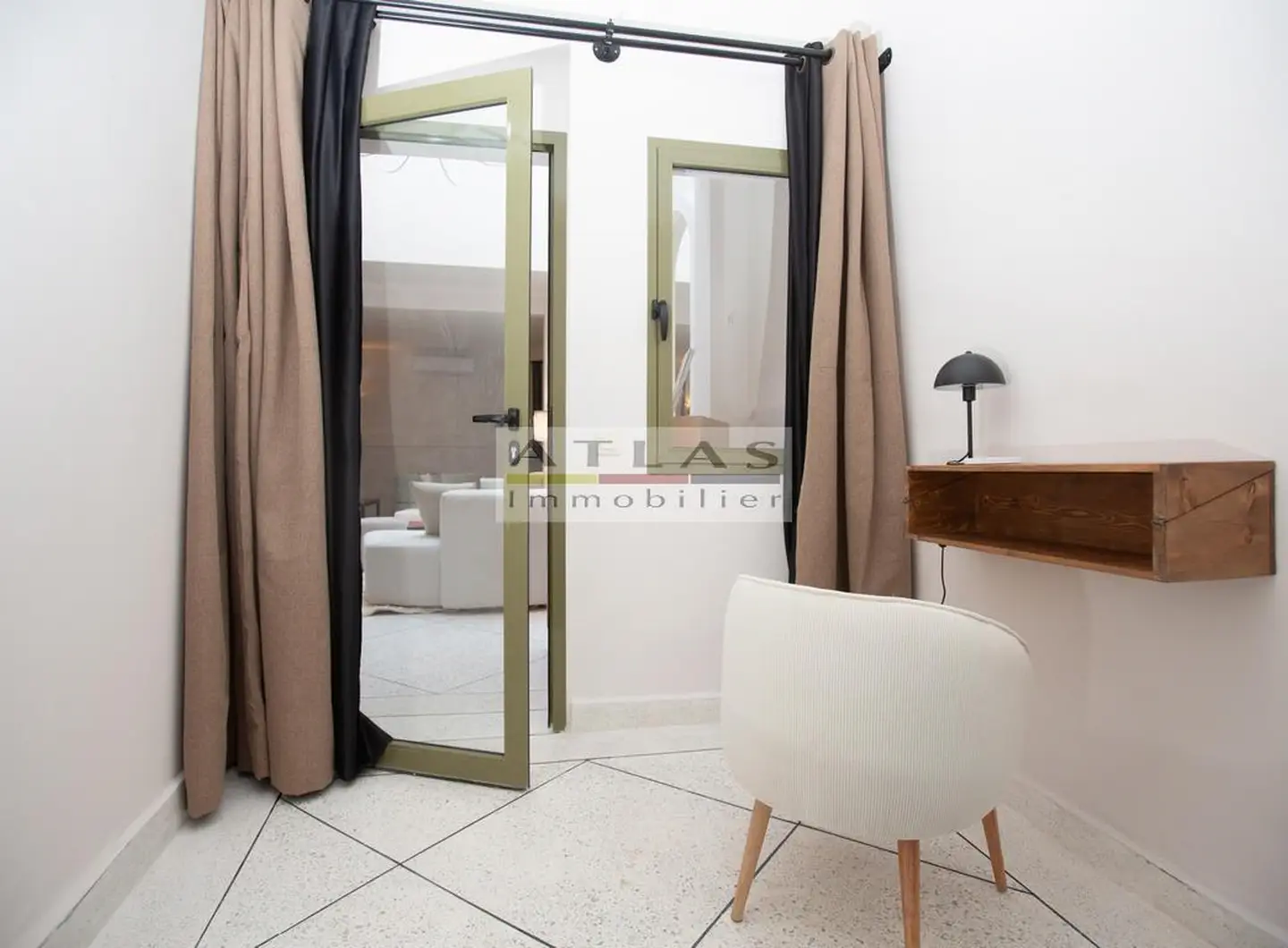 With its 150 m² of living space, this renovated riad stood out for its generous volumes and luminosity. From the entrance, visitors were greeted by a toilet and shower area, before opening onto a luminous patio enhanced by an elegant glass roof. The new, fully-equipped open-plan kitchen opened onto a warm living room, complete with a contemporary wood-burning stove, ideal for winter evenings.