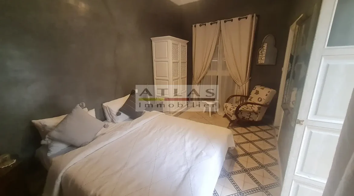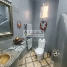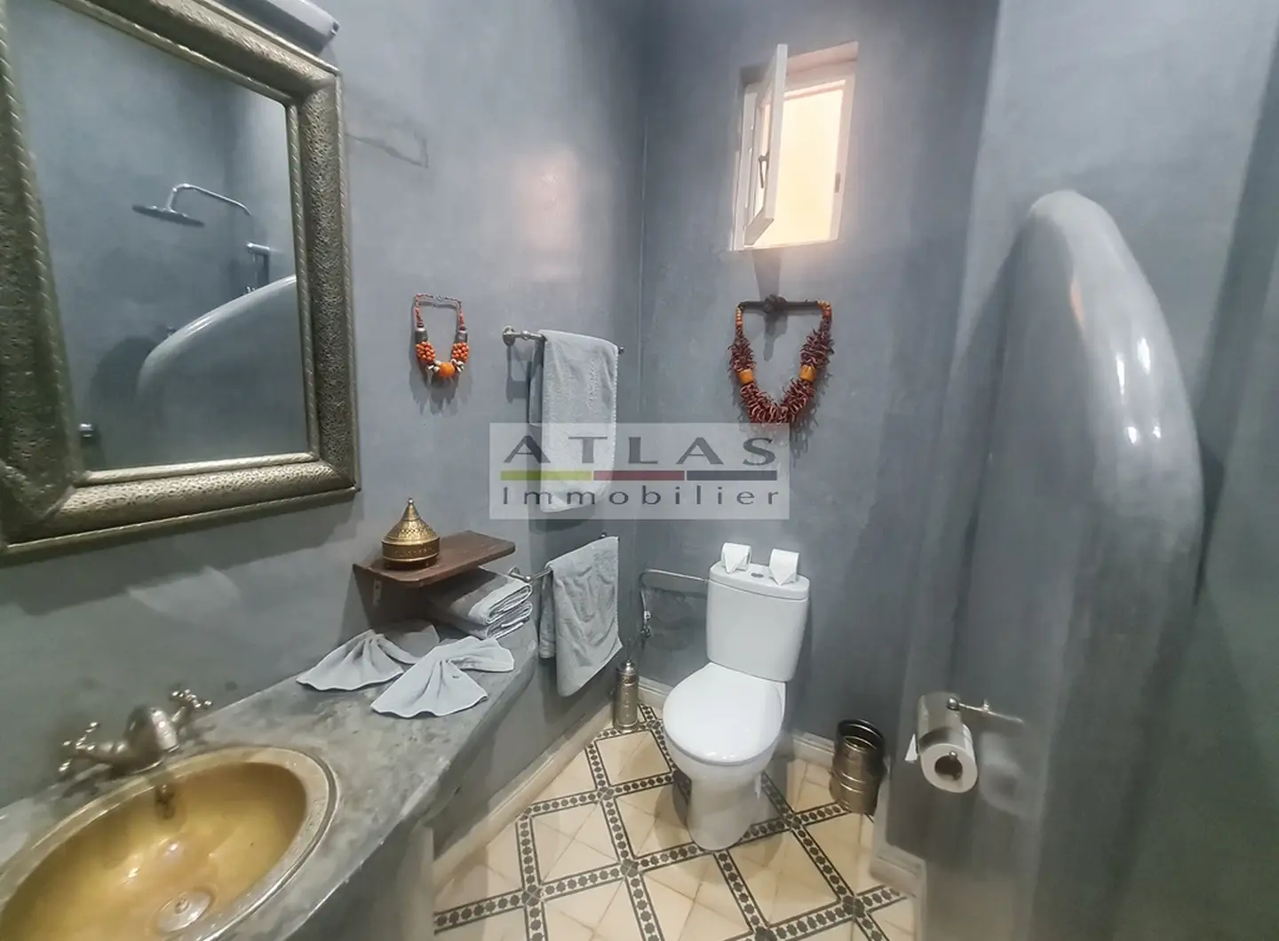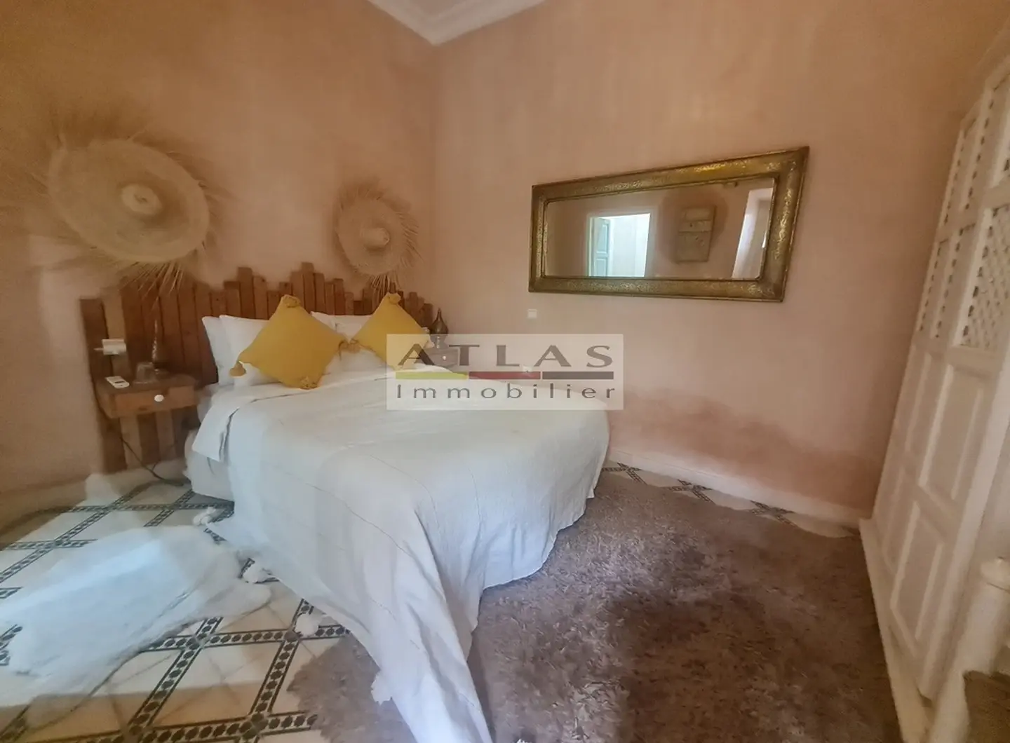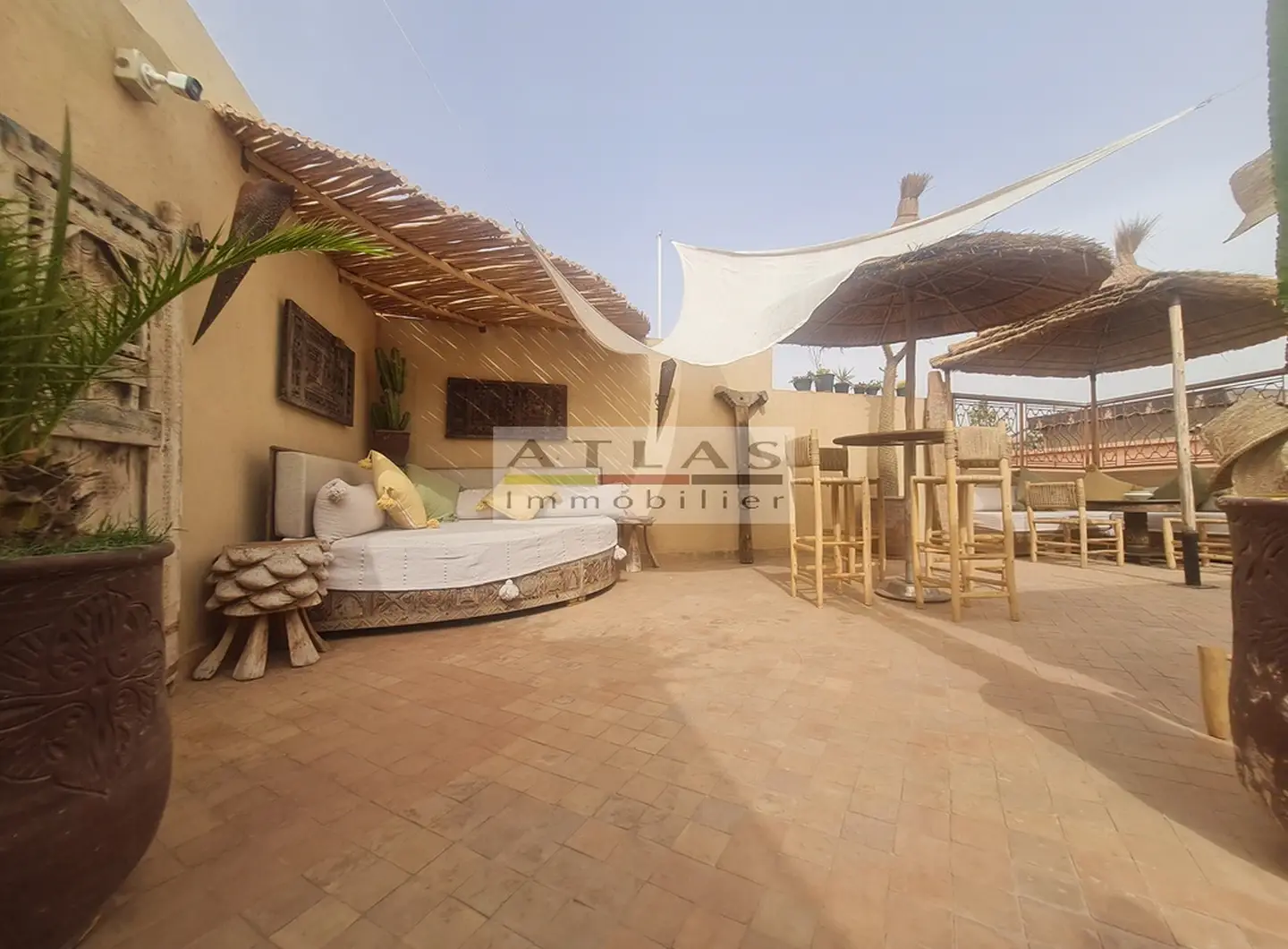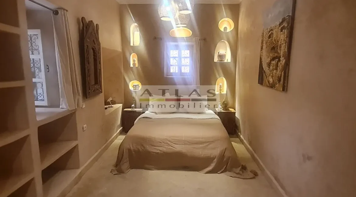 Upstairs, three light-filled bedrooms with en-suite bathrooms complete the ensemble, while the terrace offers a solarium, a lounge under a pergola, a summer kitchen-bar and an unobstructed view of the Atlas Mountains. This property, sold furnished and classified by the Ministry of Tourism, had all the assets for immediate exploitation as a guest house or charming private residence.