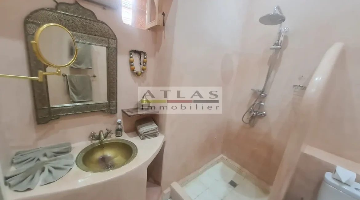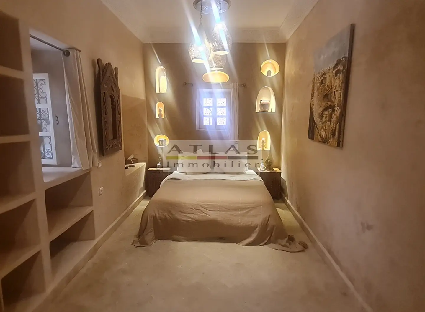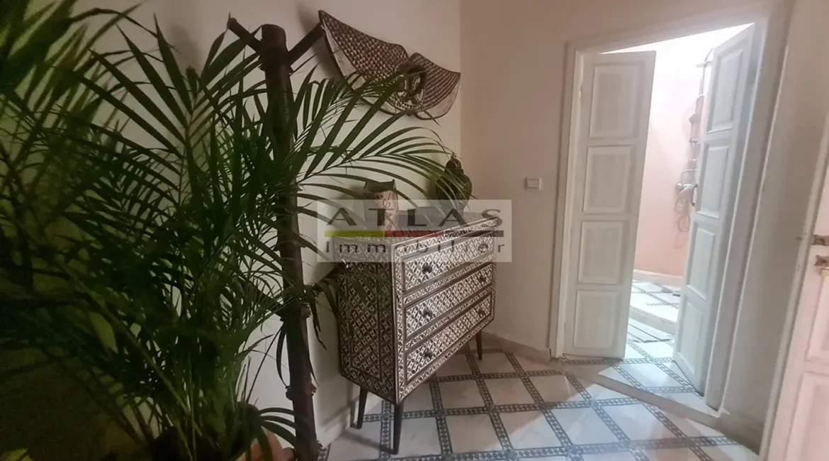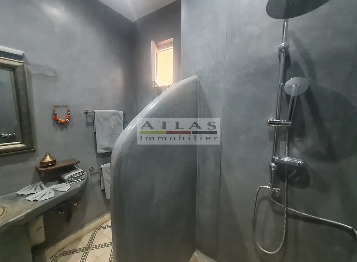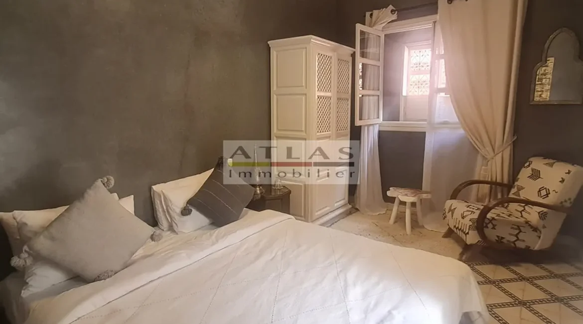 Upstairs, three light-filled bedrooms with en-suite bathrooms complete the ensemble, while the terrace offers a solarium, a lounge under a pergola, a summer kitchen-bar and an unobstructed view of the Atlas Mountains. This property, sold furnished and classified by the Ministry of Tourism, had all the assets for immediate exploitation as a guest house or charming private residence.