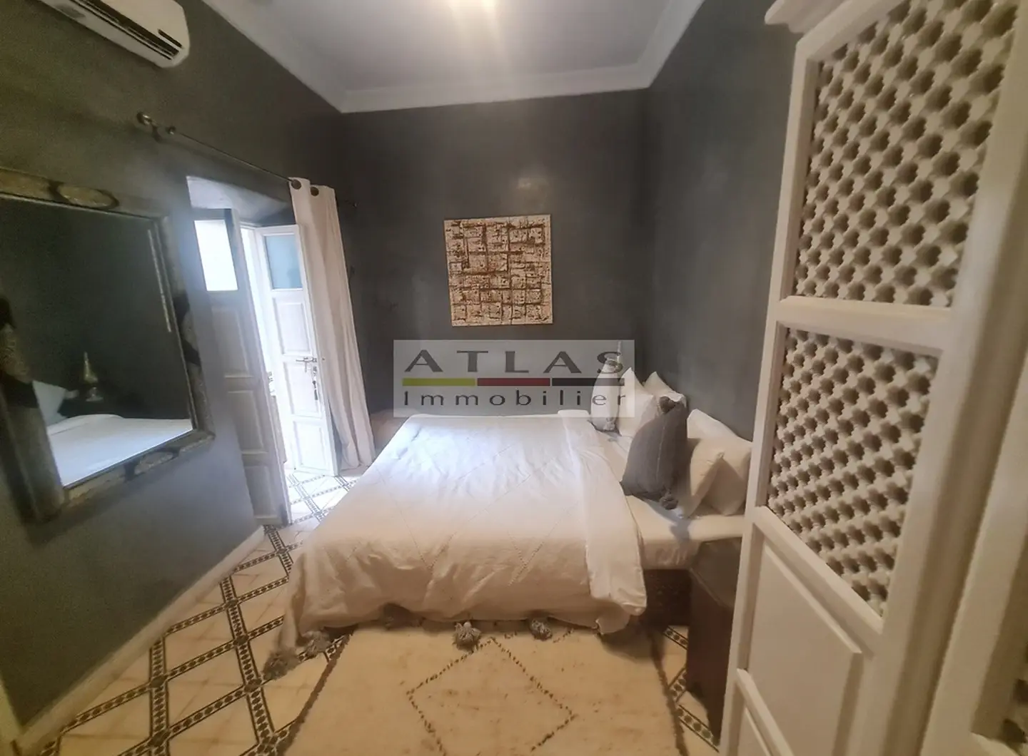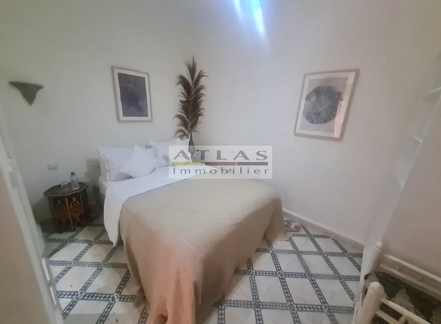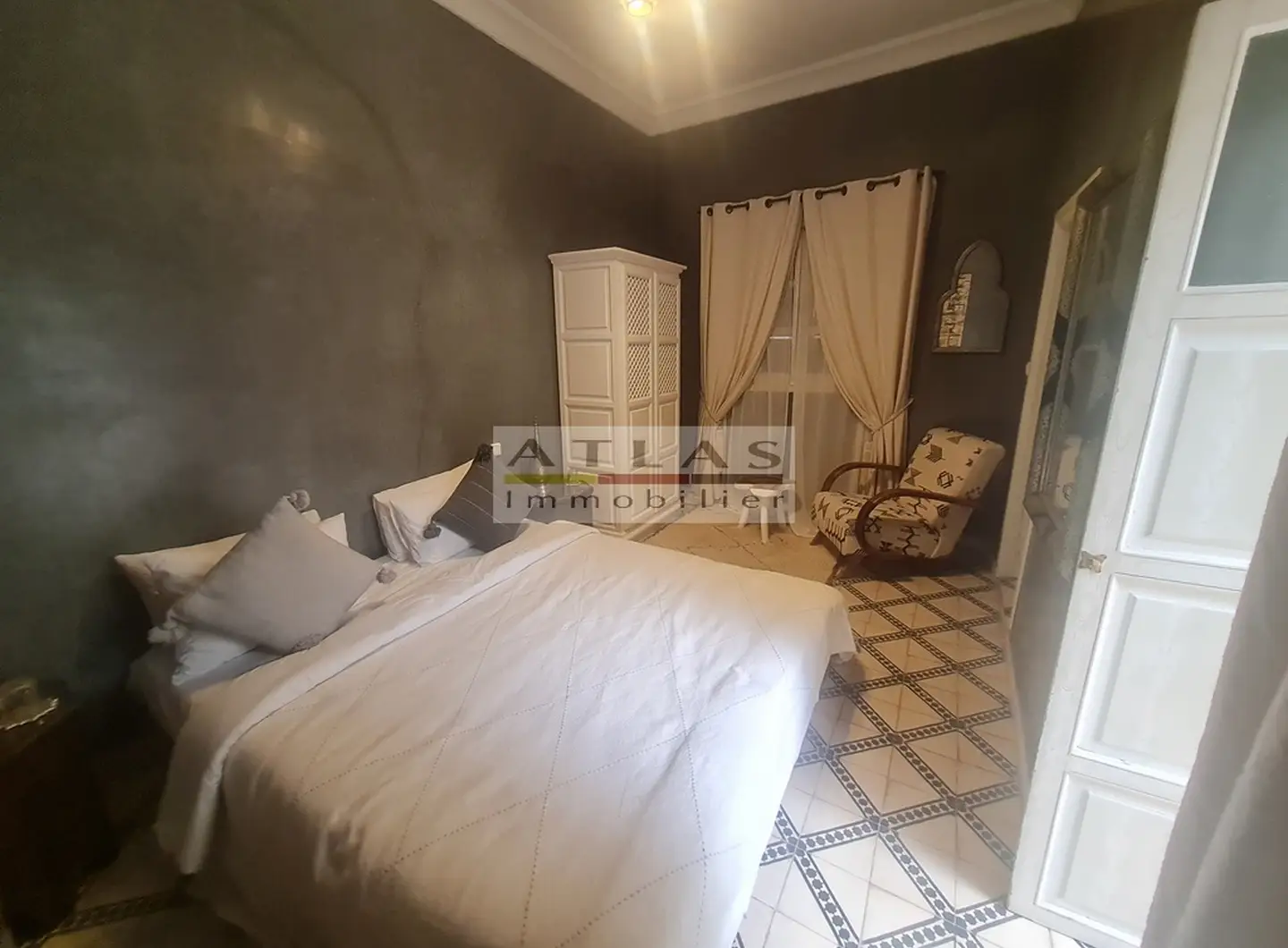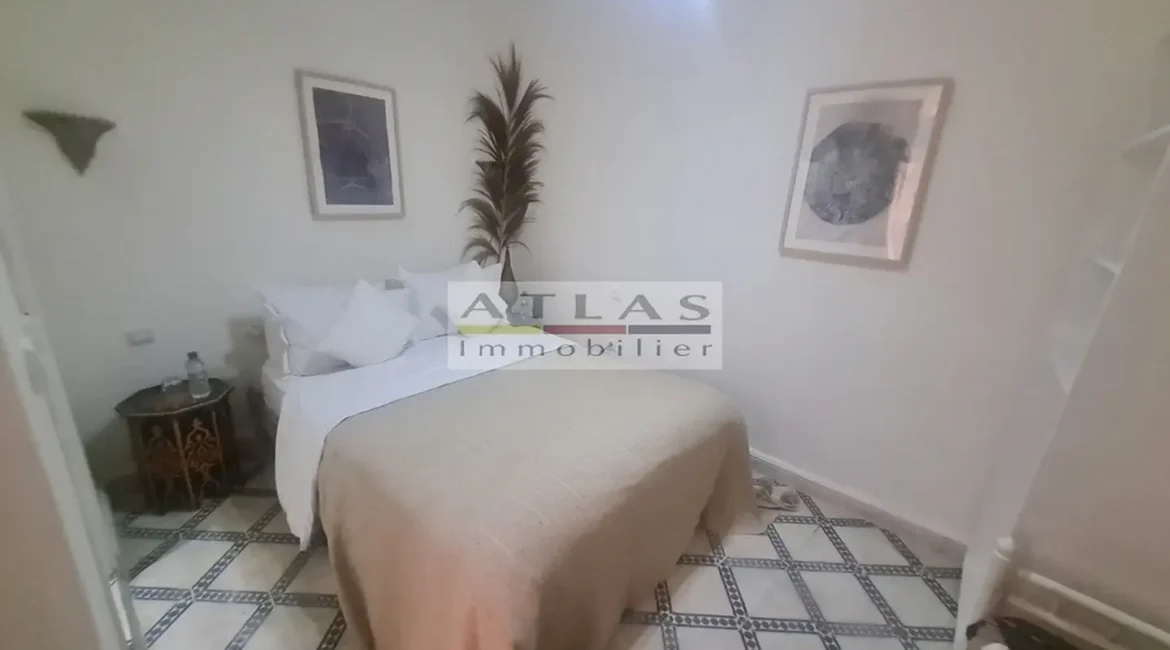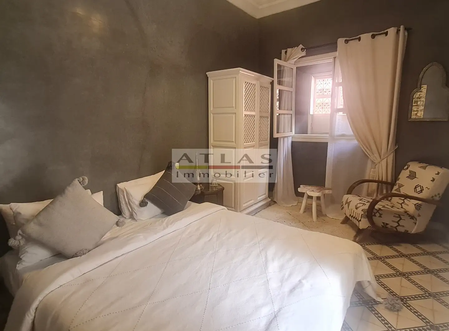 Upstairs, three light-filled bedrooms with en-suite bathrooms complete the ensemble, while the terrace offers a solarium, a lounge under a pergola, a summer kitchen-bar and an unobstructed view of the Atlas Mountains. This property, sold furnished and classified by the Ministry of Tourism, had all the assets for immediate exploitation as a guest house or charming private residence.