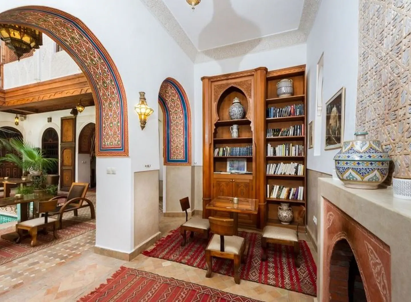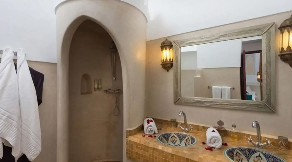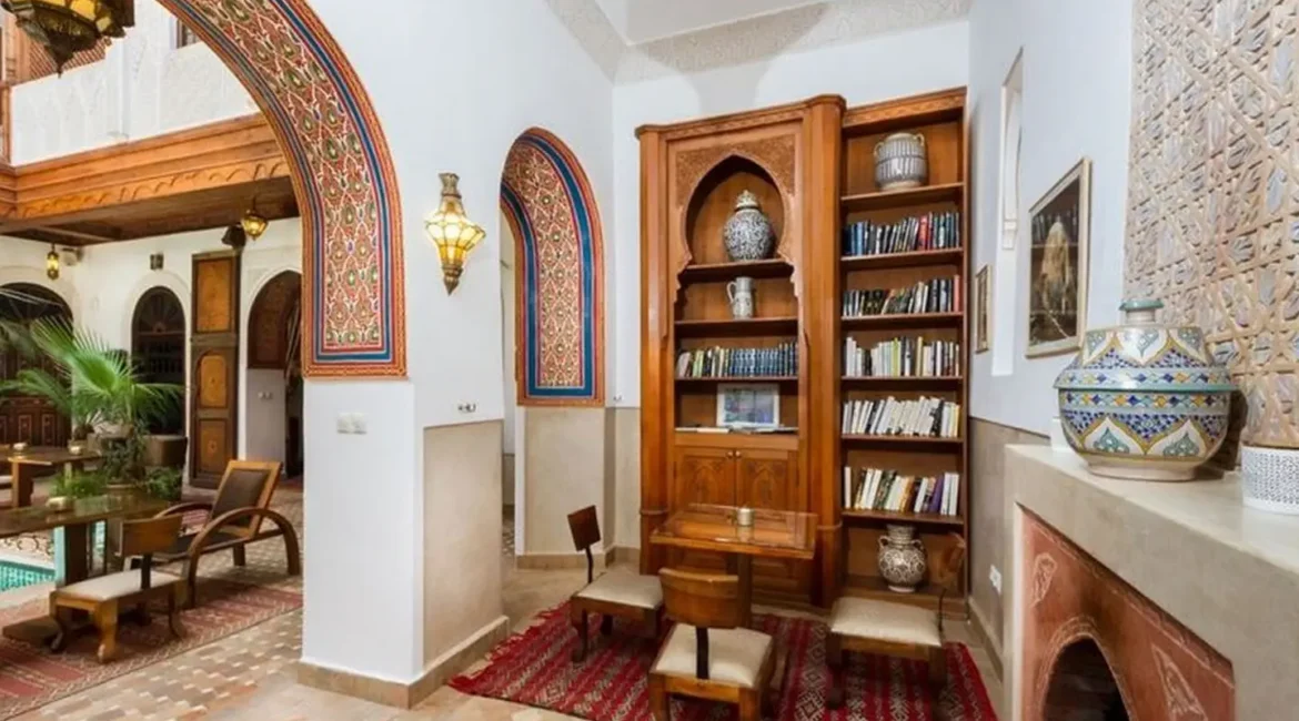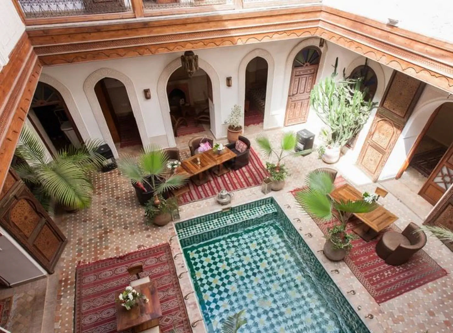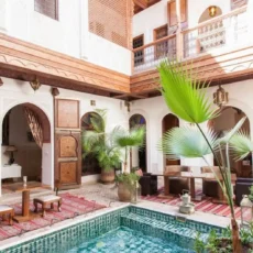 With its vast volumes and top-of-the-range finishes, this riad had seduced a discerning clientele. The first floor featured a majestic hall, an elegant reception area, a generous patio with a large pool, several refined lounges and a large double suite with private bathroom. The whole embodied a perfect balance between modern comfort and Moroccan tradition.