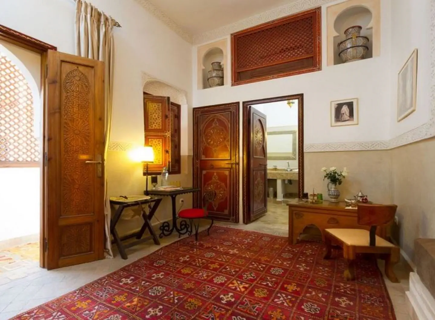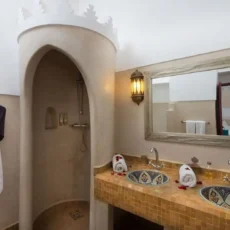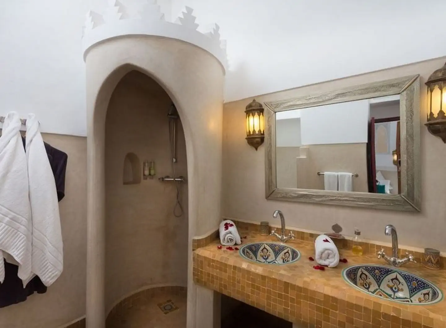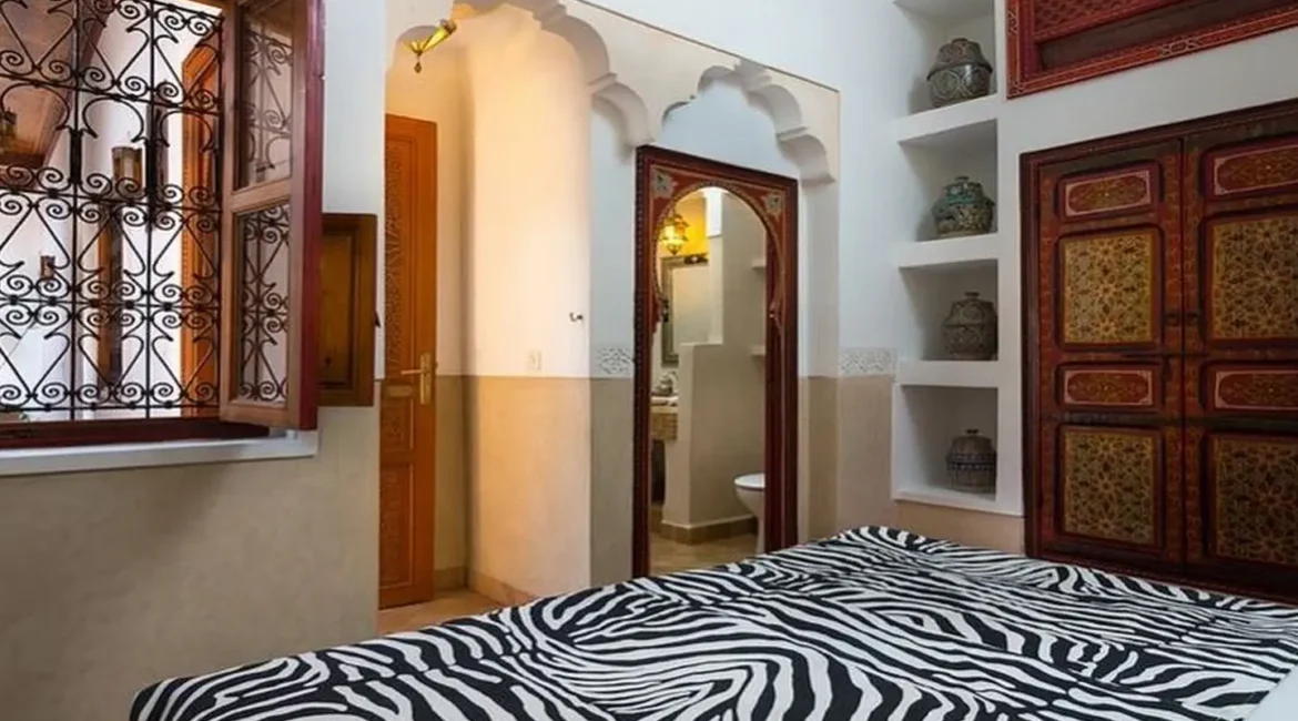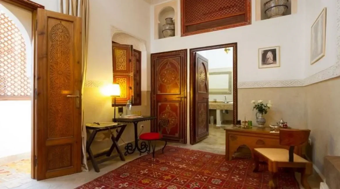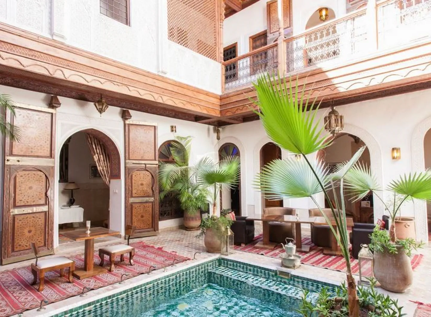 With its vast volumes and top-of-the-range finishes, this riad had seduced a discerning clientele. The first floor featured a majestic hall, an elegant reception area, a generous patio with a large pool, several refined lounges and a large double suite with private bathroom. The whole embodied a perfect balance between modern comfort and Moroccan tradition.