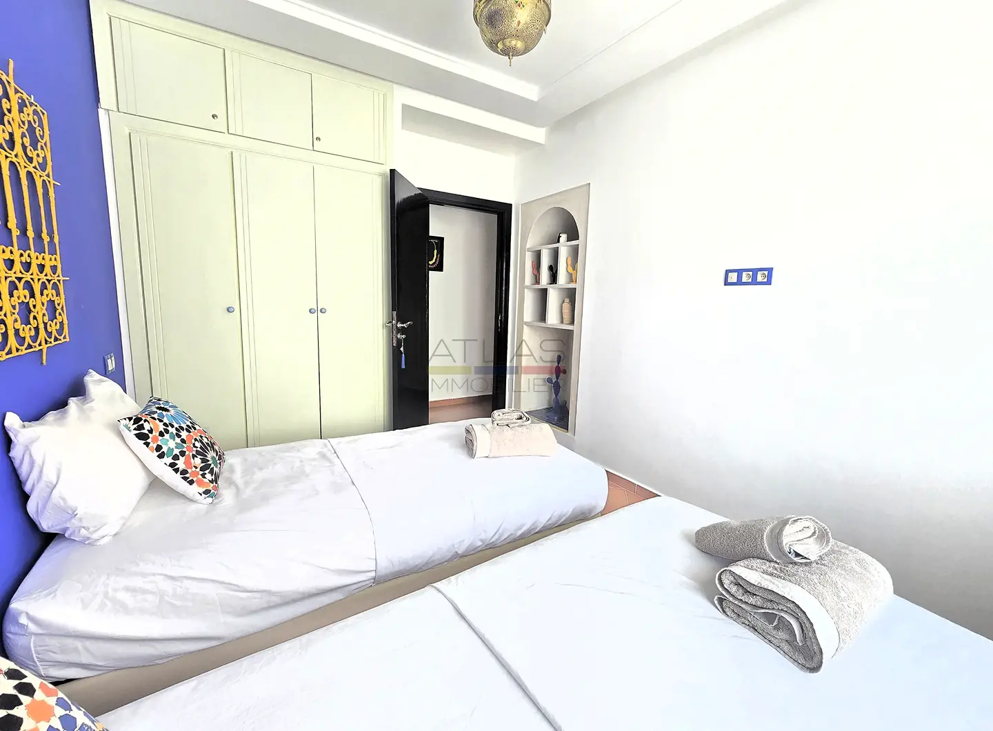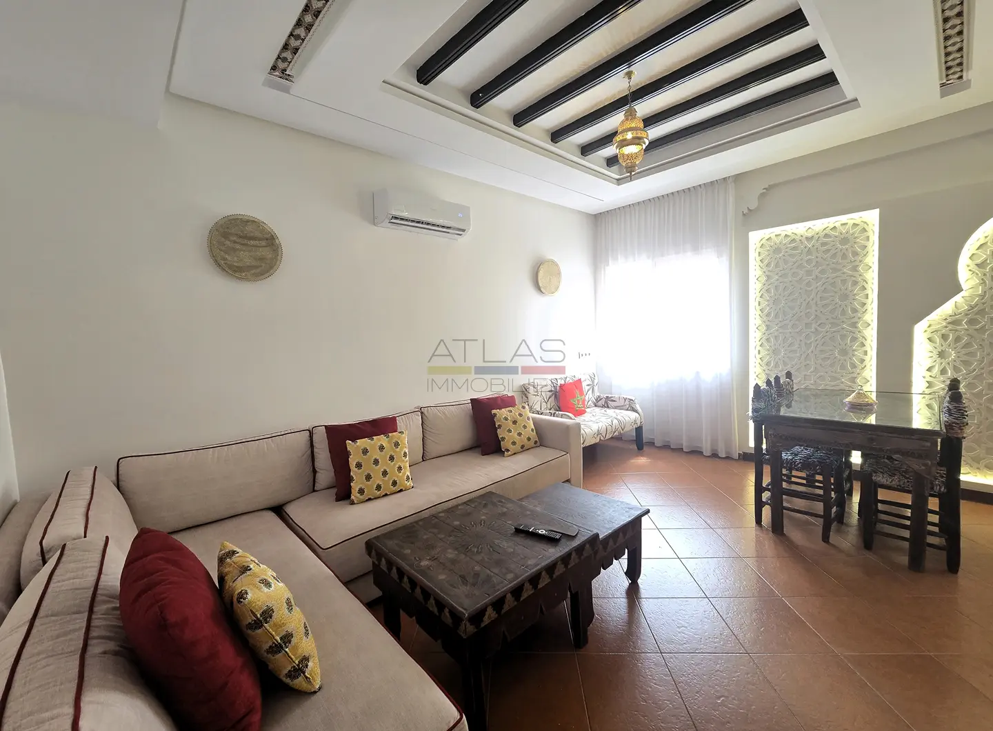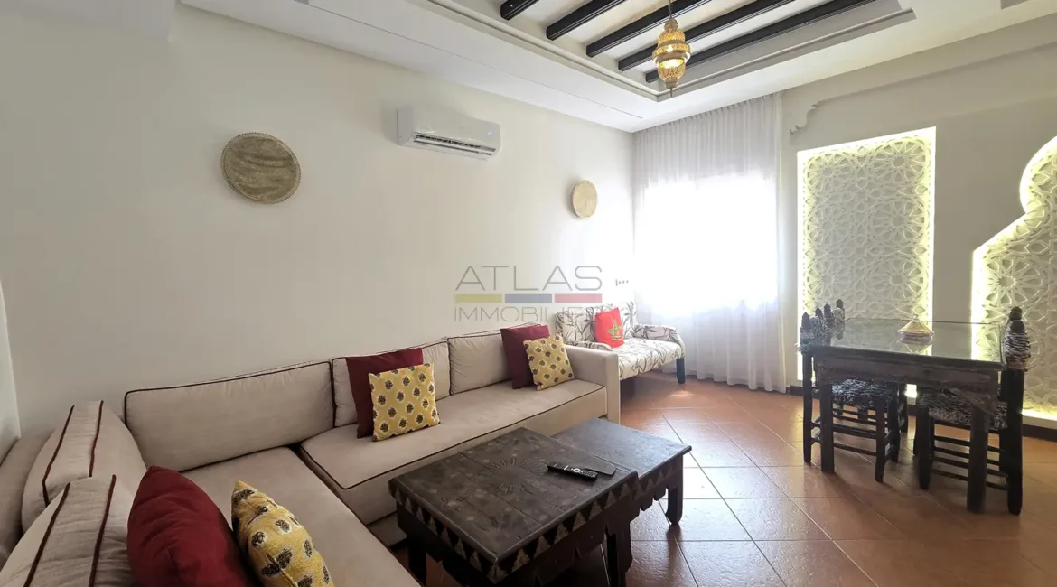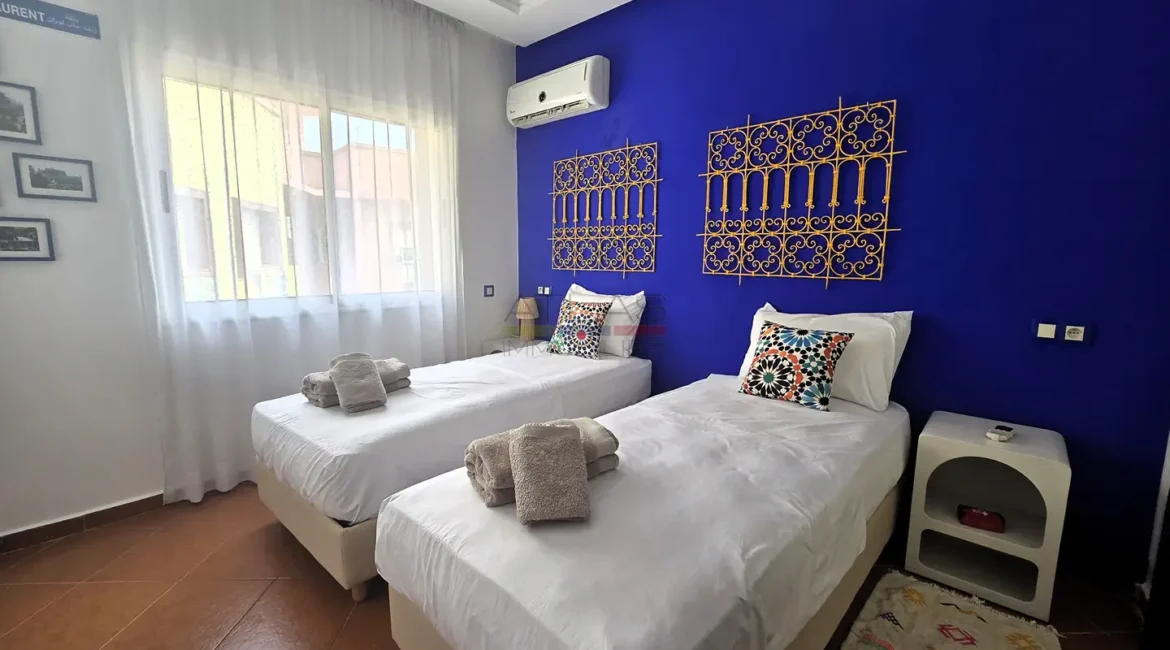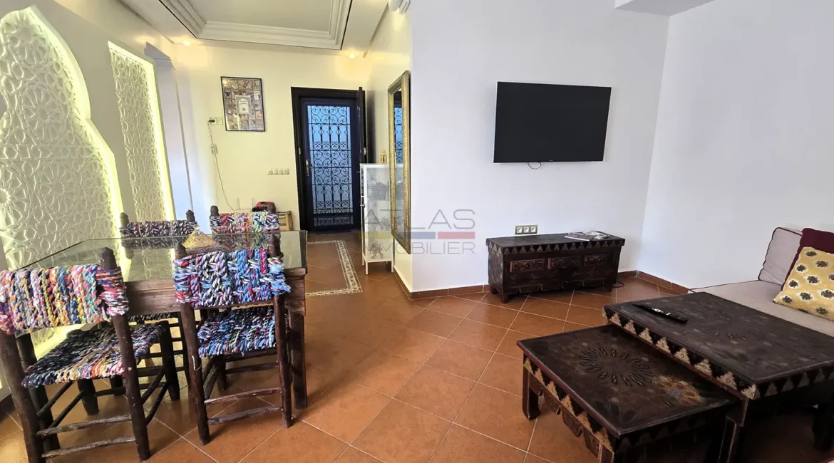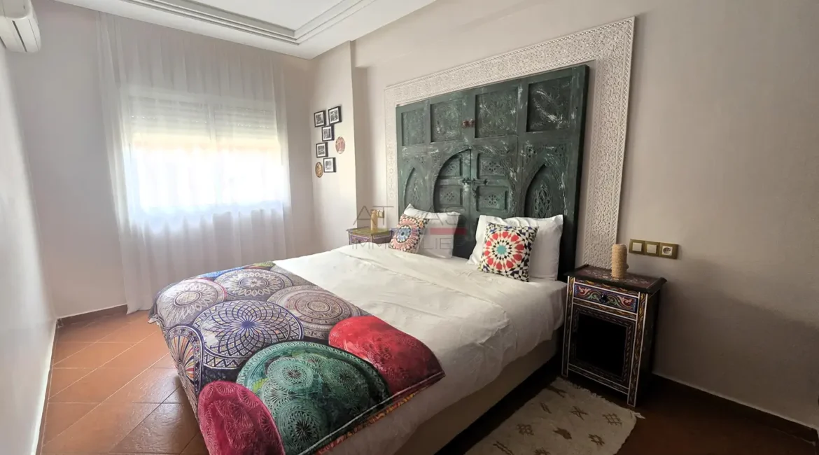Entre mobilier haut de gamme, résidence sécurisée avec piscine et proximité directe du centre-ville, cet appartement meublé combine confort moderne et emplacement stratégique pour une location longue durée réussie à Marrakech.