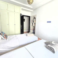 Cet appartement meublé de standing offre un cadre de vie idéal au sein d’une résidence calme et parfaitement entretenue avec piscine. Avec une surface d’environ 80 m², il propose un vaste séjour lumineux, une cuisine moderne entièrement équipée avec électroménagers récents, un balcon agréable ainsi que deux chambres confortables. Une salle de bain élégante et des sanitaires invités avec toilettes séparées complètent l’ensemble.