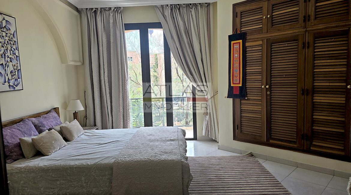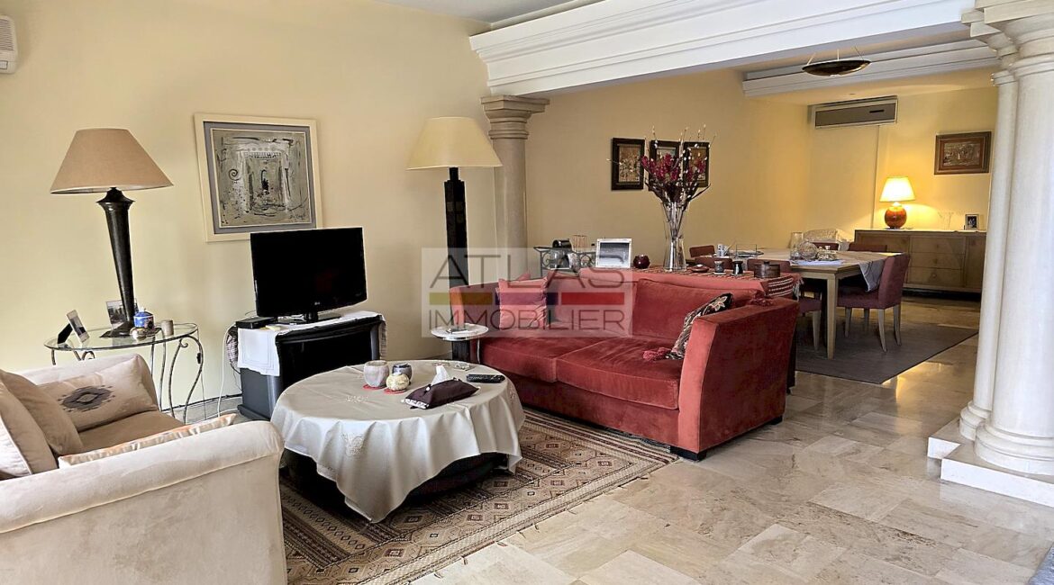 L’appartement se distingue par ses espaces de vie d’exception et ses volumes rares. Avec une superficie titrée de 203 m², il offre de vastes pièces de réception et un séjour baigné de lumière naturelle, idéal pour recevoir dans une atmosphère élégante et raffinée. Une terrasse de 22 m² prolonge harmonieusement les espaces intérieurs et permet de profiter d’un extérieur discret et agréable, typique du style de vie hivernal de Marrakech.