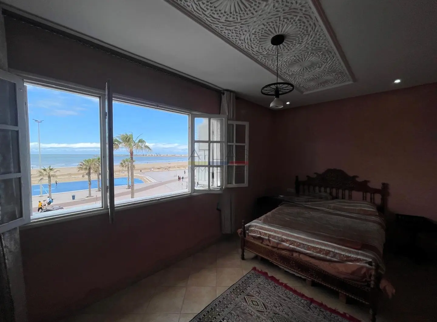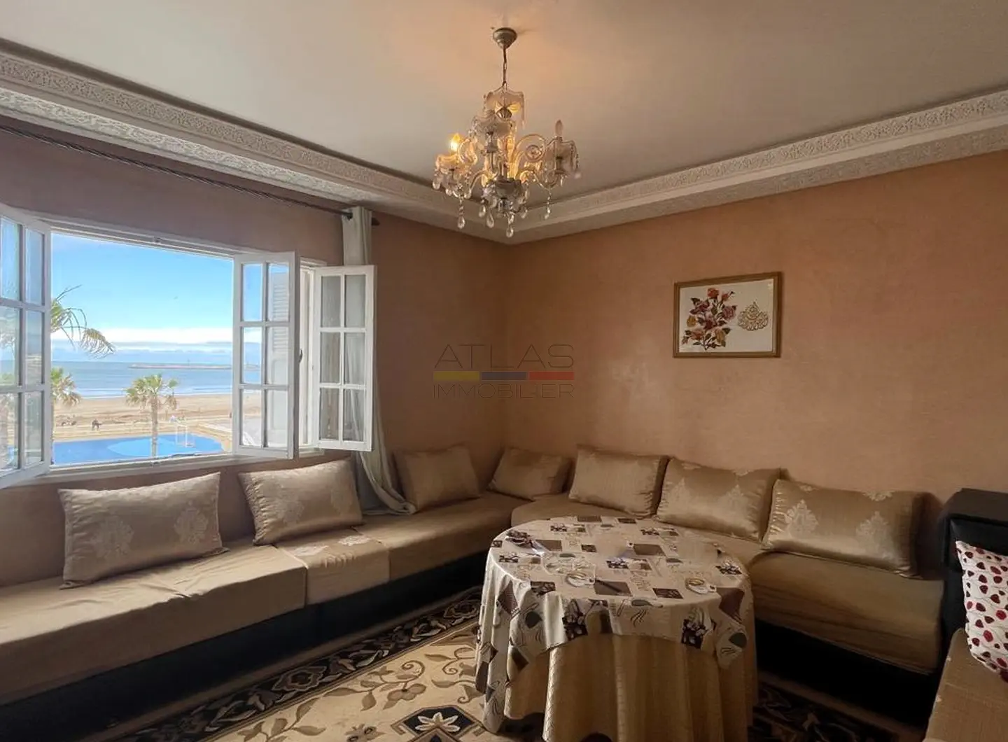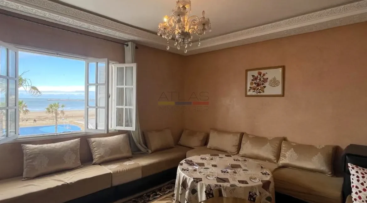 Idéalement situé en front de mer, cet appartement d’une chambre à louer en longue durée offre un cadre de vie exceptionnel entre ville et plage. Parfait pour les amateurs de lumière naturelle et d’air marin, il se compose d’un salon confortable, d’une cuisine fonctionnelle, d’une salle de douche et d’une chambre agréable. L’atout rare de ce bien réside dans sa petite terrasse privée, accessible sur le toit, idéale pour savourer un café face aux vagues ou admirer le coucher du soleil. La plage se trouve littéralement en face, ce qui fait de ce logement un choix privilégié pour celles et ceux qui souhaitent vivre au rythme de l’océan, tout en restant à proximité des commodités urbaines. Proposé à 10 000 Dhs par mois, charges comprises, cet appartement est une véritable opportunité à saisir pour un style de vie apaisé et inspirant.