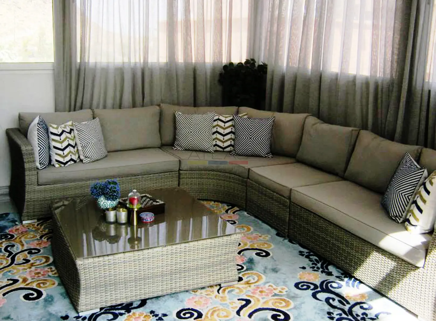 - Une véranda aménagée en salon supplémentaire, idéale pour les moments de détente,