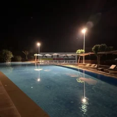 La résidence, reconnue pour la qualité de ses infrastructures, proposait tennis, terrain de sport et piscines, dans un environnement sécurisé et parfaitement entretenu. Sa proximité avec de nombreux commerces facilitait le quotidien tout en préservant la tranquillité du cadre verdoyant de la Palmeraie.