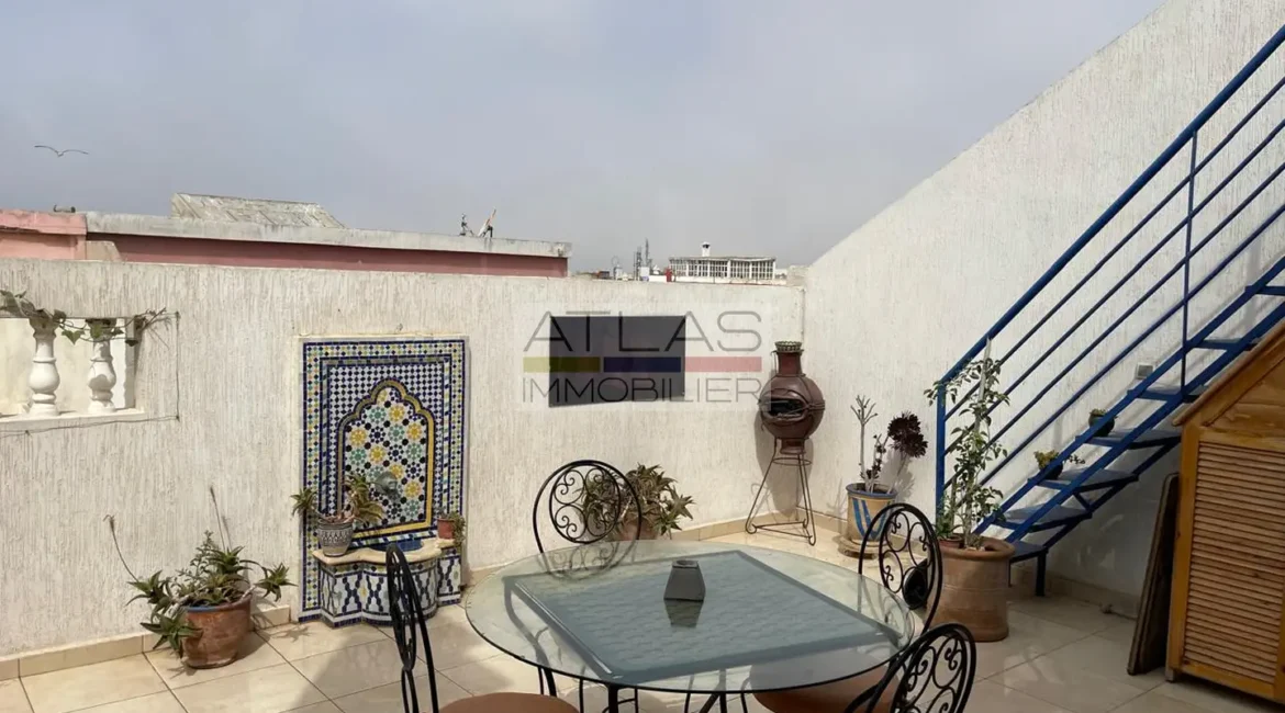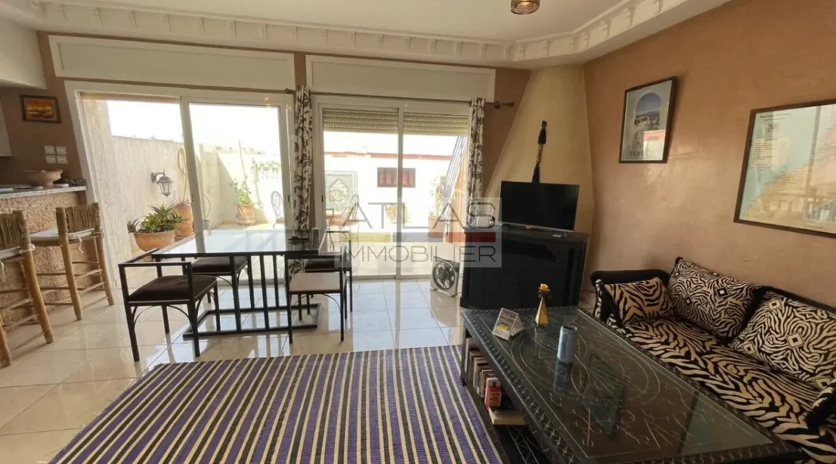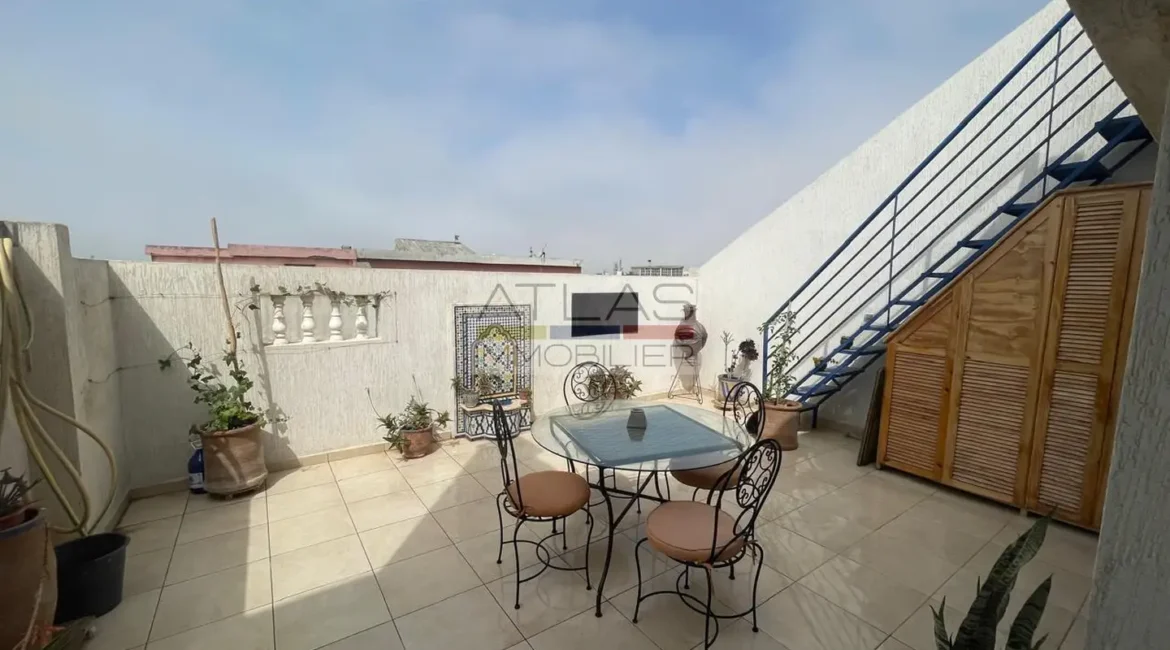 appartement location saisonnière Essaouira, appartement avec terrasse Essaouira, location vacances Nouvelle Ville Essaouira, appartement avec solarium Essaouira, hébergement courte durée Essaouira, location meublée Essaouira, appartement proche plage Essaouira, location avec Wi-Fi Essaouira, séjour confort Essaouira, appartement lumineux Essaouira, vacances à E