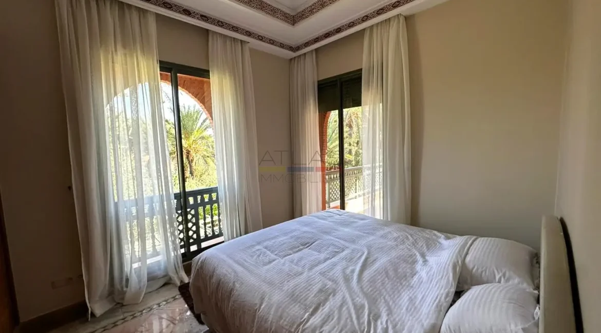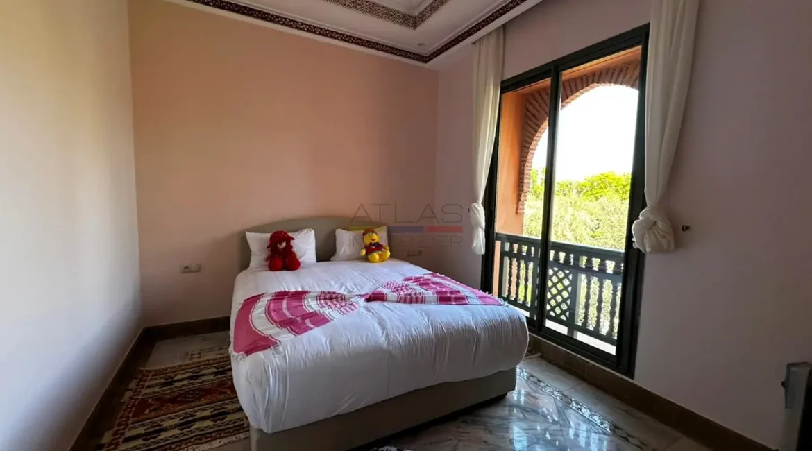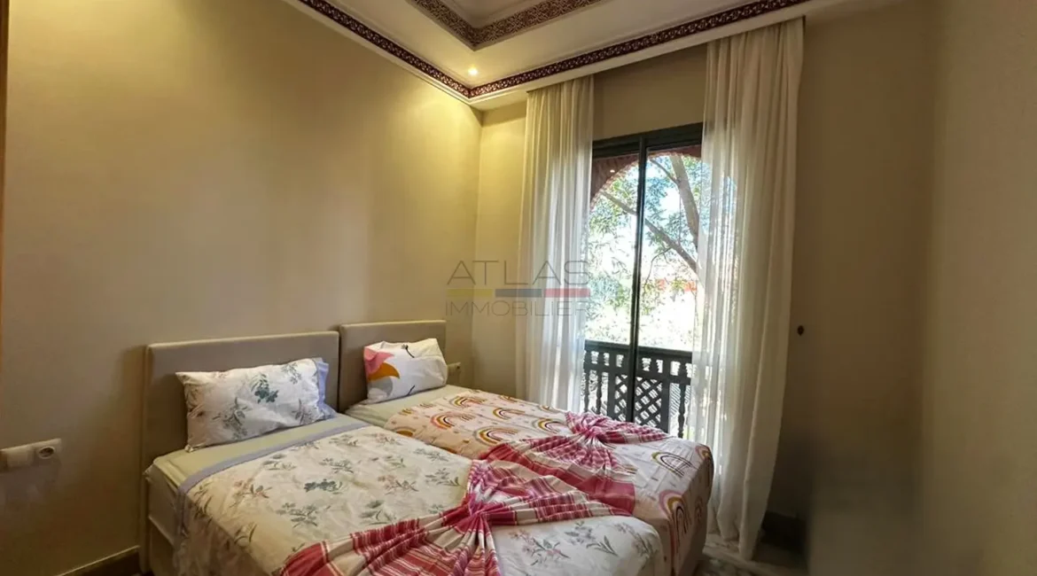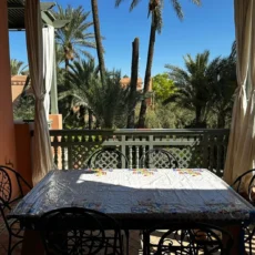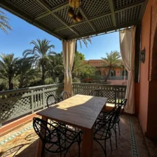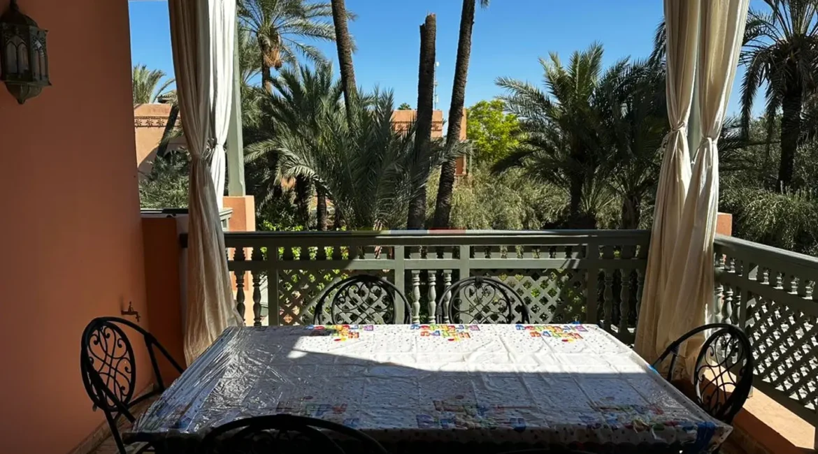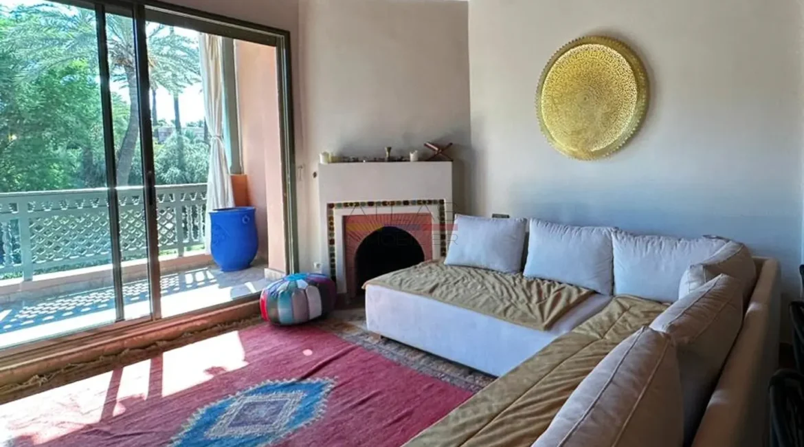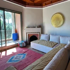 Situé dans l’une des résidences les plus prisées et sécurisées de la Palmeraie de Marrakech, cet élégant appartement séduit par sa luminosité, ses volumes généreux et son environnement verdoyant d’exception. Implanté au premier étage, il offre un cadre de vie paisible et raffiné, à seulement 10 minutes du centre-ville et à proximité immédiate des commerces et services essentiels.