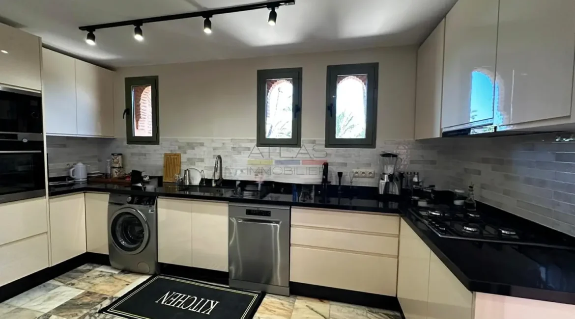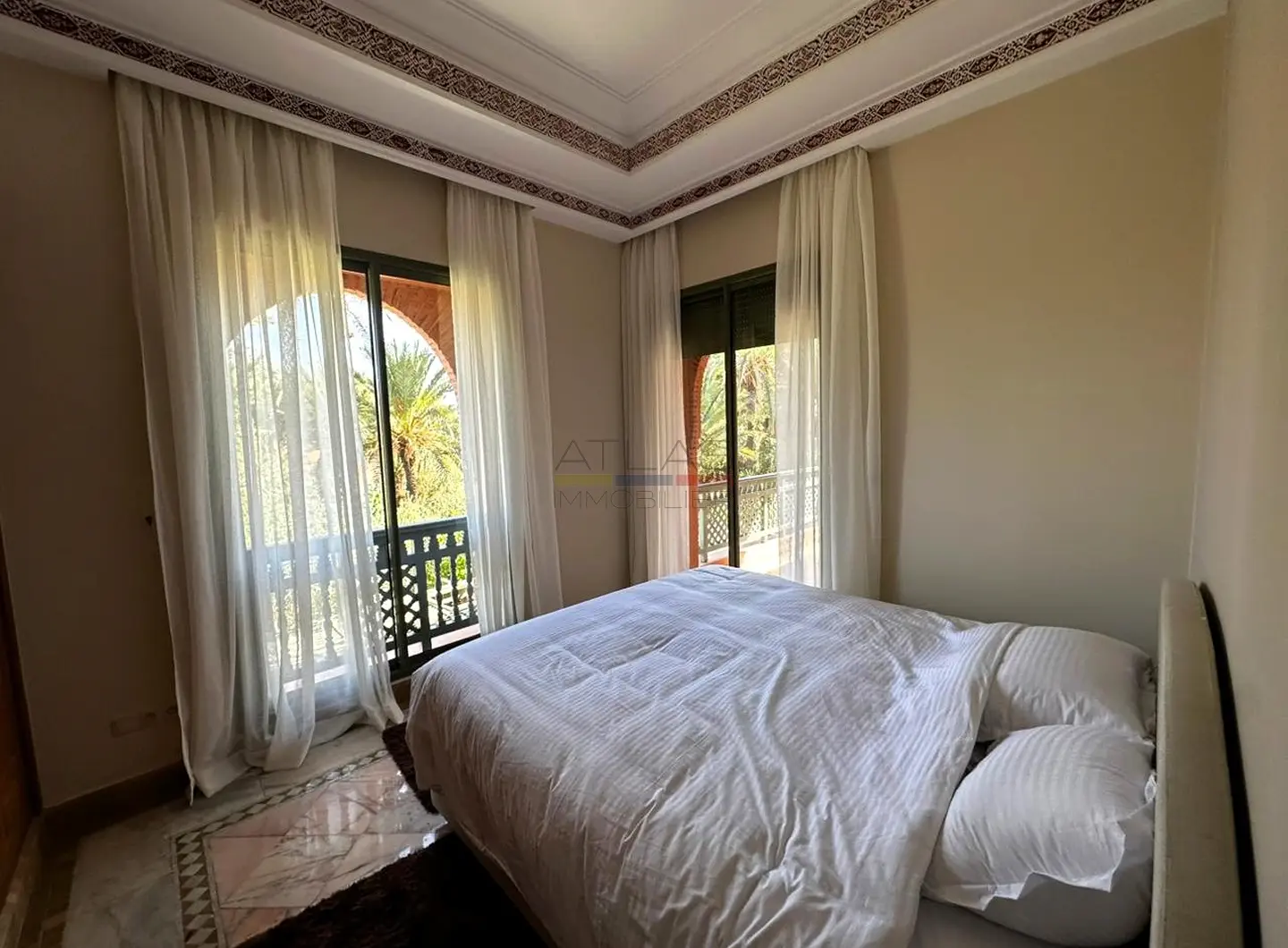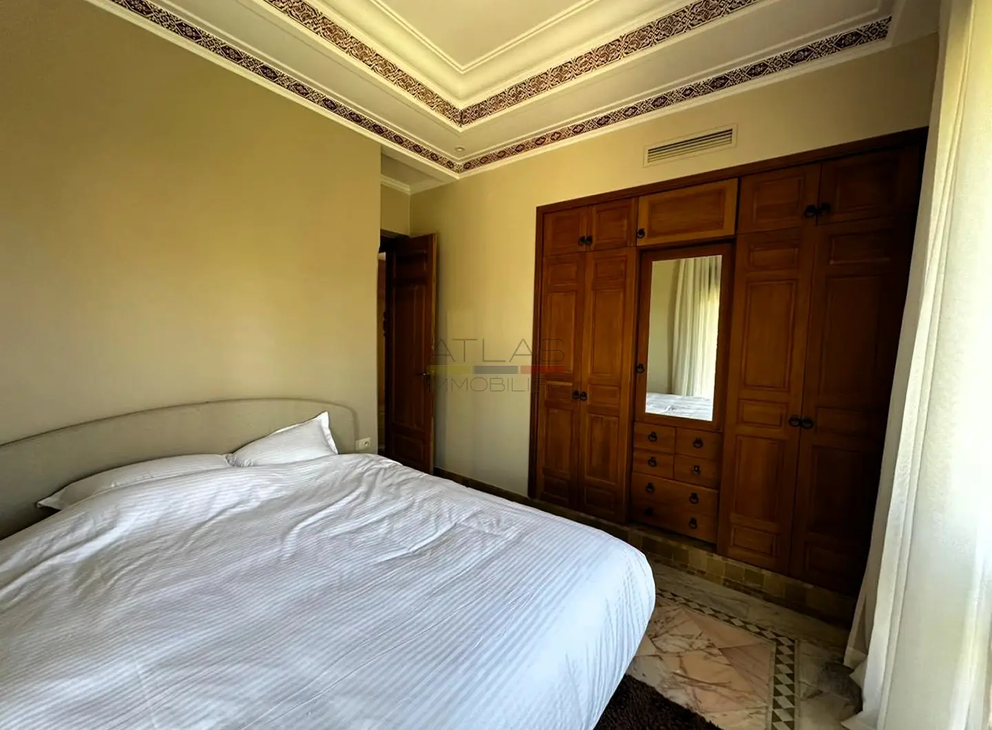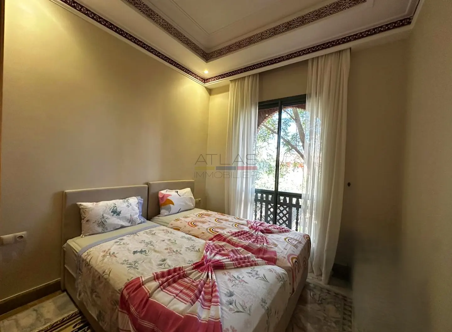Situé dans l’une des résidences les plus prisées et sécurisées de la Palmeraie de Marrakech, cet élégant appartement séduit par sa luminosité, ses volumes généreux et son environnement verdoyant d’exception. Implanté au premier étage, il offre un cadre de vie paisible et raffiné, à seulement 10 minutes du centre-ville et à proximité immédiate des commerces et services essentiels.