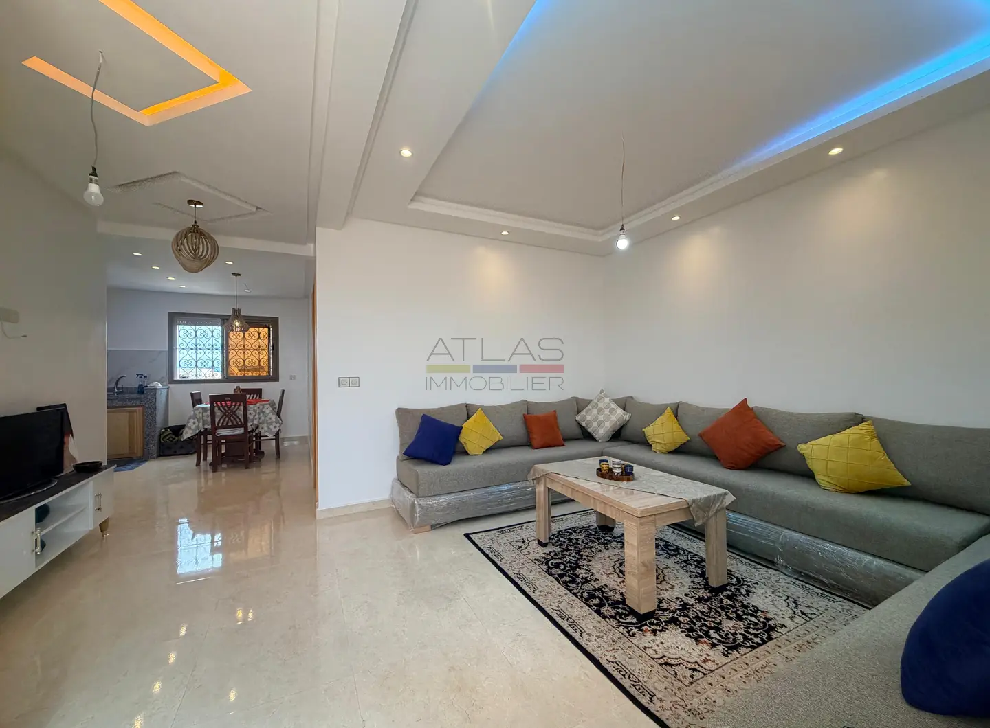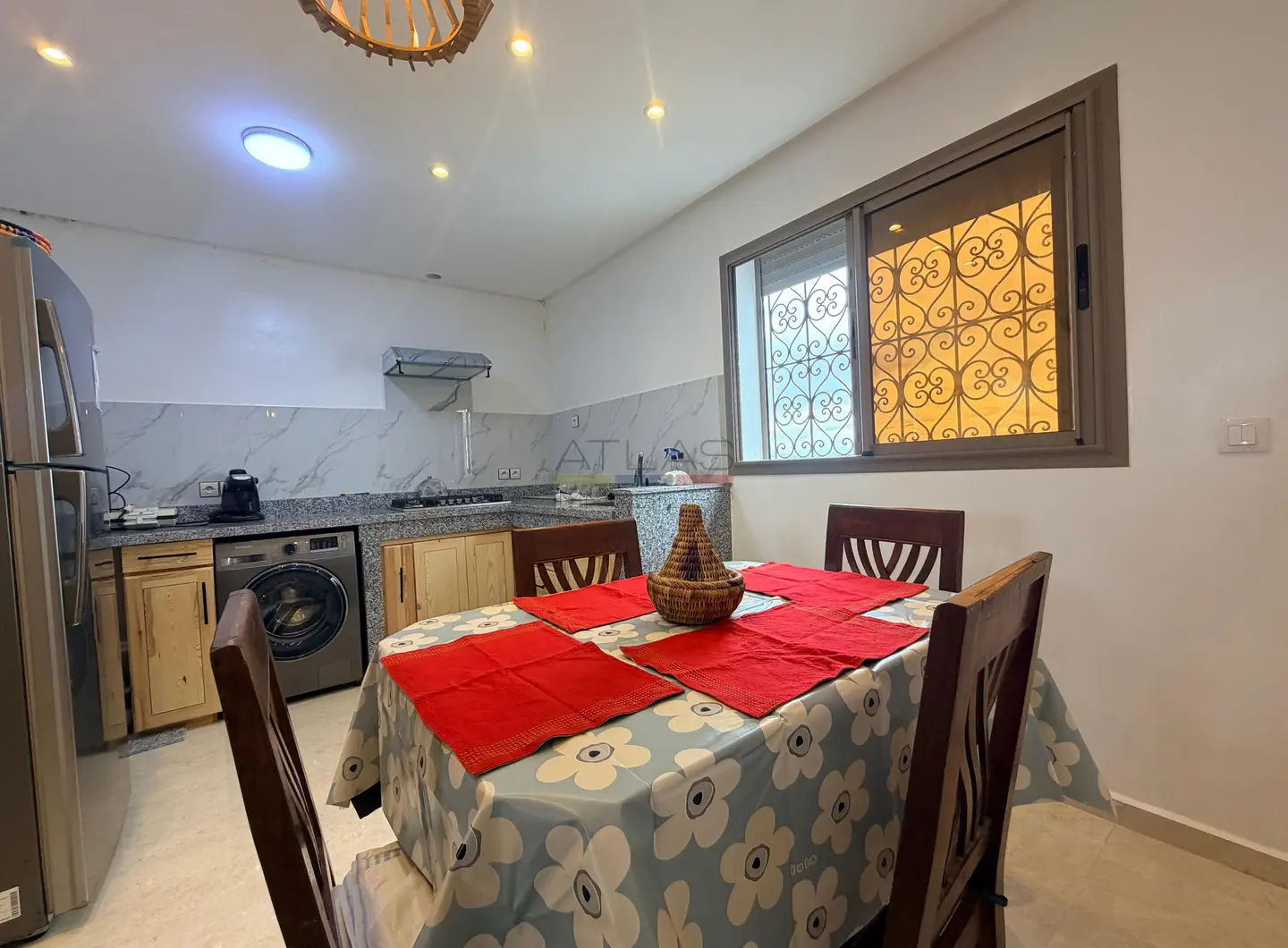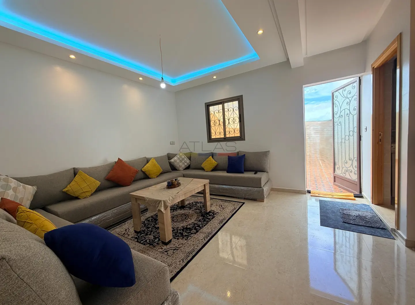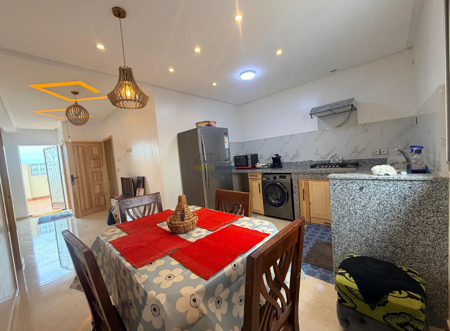 Situé dans le secteur recherché de Ghazoua à Essaouira, au sein de la résidence Menzeh 2, cet appartement meublé de 80 m² séduit par son emplacement privilégié et son cadre paisible. Niché au dernier étage, il offre une vue dégagée sur la vallée ainsi qu’une belle luminosité tout au long de la journée, idéale pour une vie confortable en location longue durée.