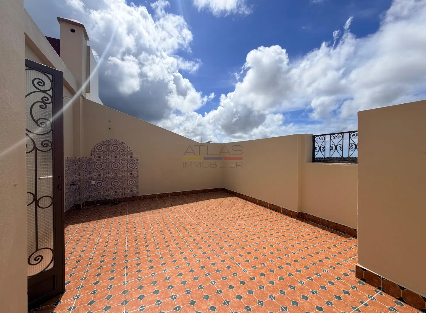 Atout majeur de ce bien, une spacieuse terrasse de 20 m² prolonge l’espace de vie et offre un cadre idéal pour profiter du climat d’Essaouira, organiser des repas en extérieur ou simplement se détendre face à un environnement naturel apaisant.