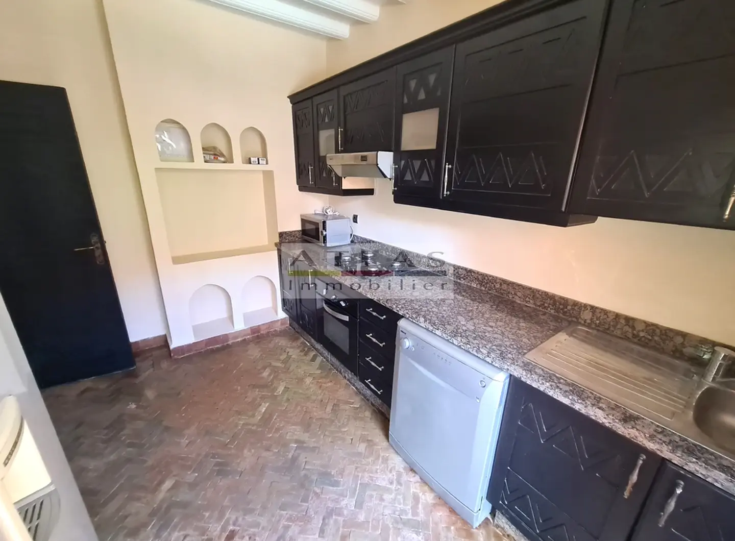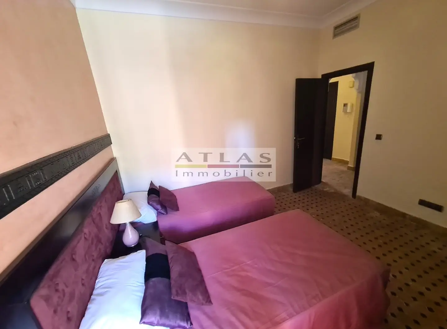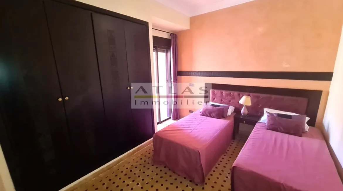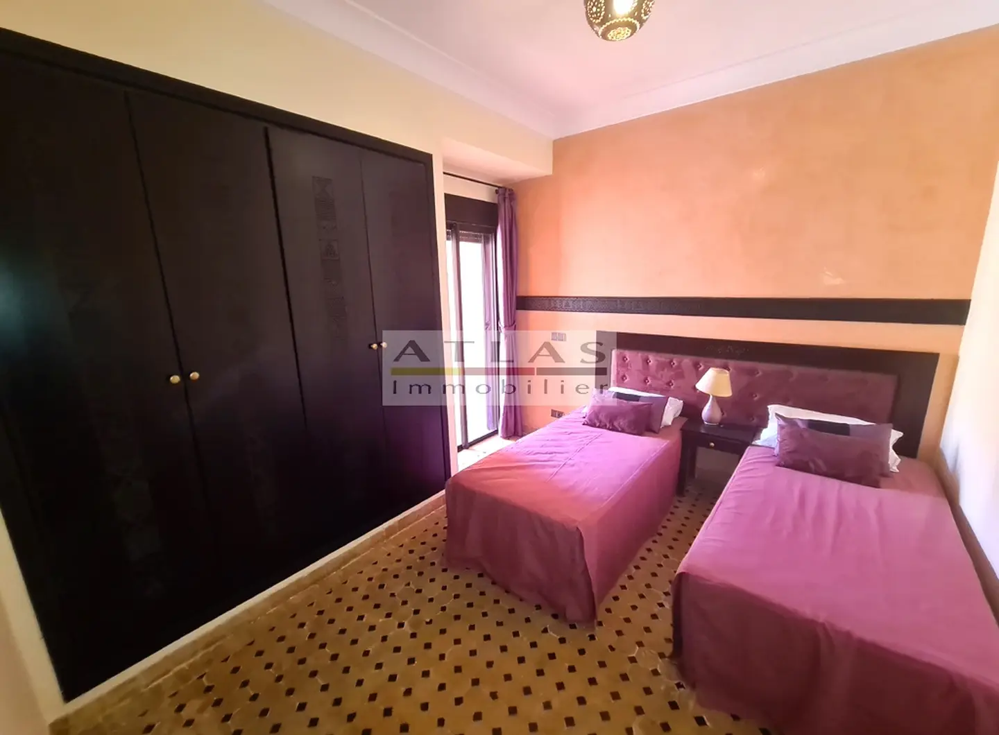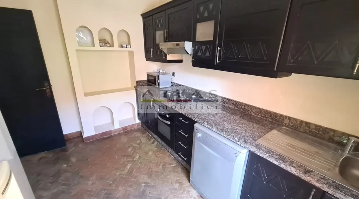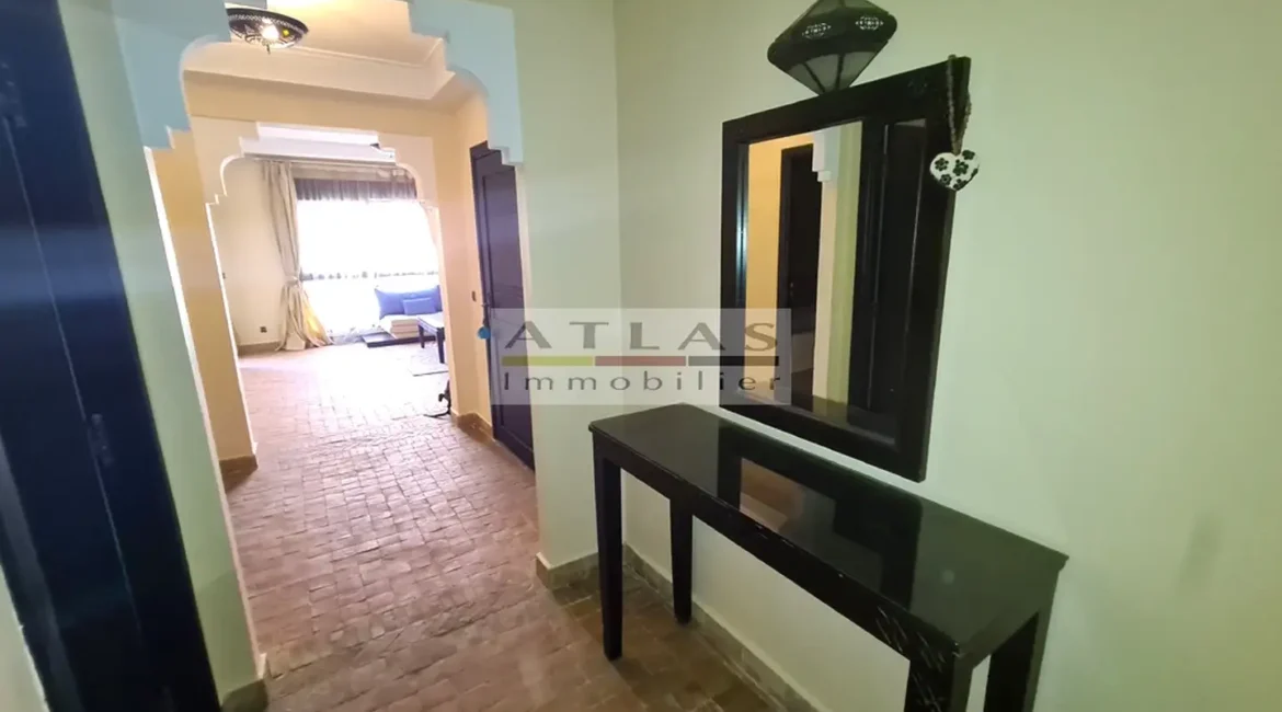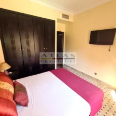 Cet appartement meublé, situé en périphérie de Marrakech à seulement dix minutes de l’hypercentre, a trouvé son locataire grâce à son cadre paisible et son emplacement idéal. D’une superficie de 94 m², il se trouvait au 1er étage d’une résidence sécurisée avec gardien disponible 24h/24 et ascenseur, offrant ainsi un cadre de vie pratique et agréable.