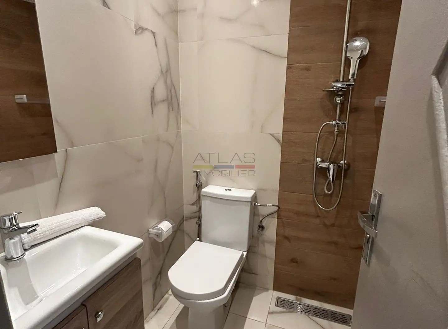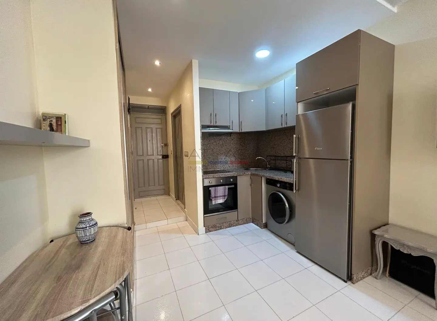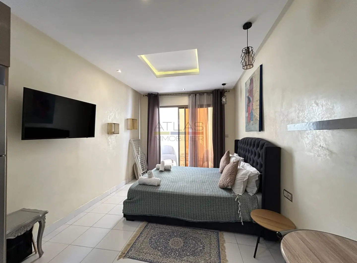 Idéalement situé à seulement quelques pas de la plage et des commodités, ce superbe studio meublé séduit par son atmosphère moderne et son confort absolu. Niché au premier étage d’une résidence calme et sécurisée récemment rénovée, il constitue un pied-à-terre idéal pour une location longue durée à Essaouira. Son agencement optimisé et sa décoration soignée offrent un cadre de vie à la fois élégant, fonctionnel et lumineux.