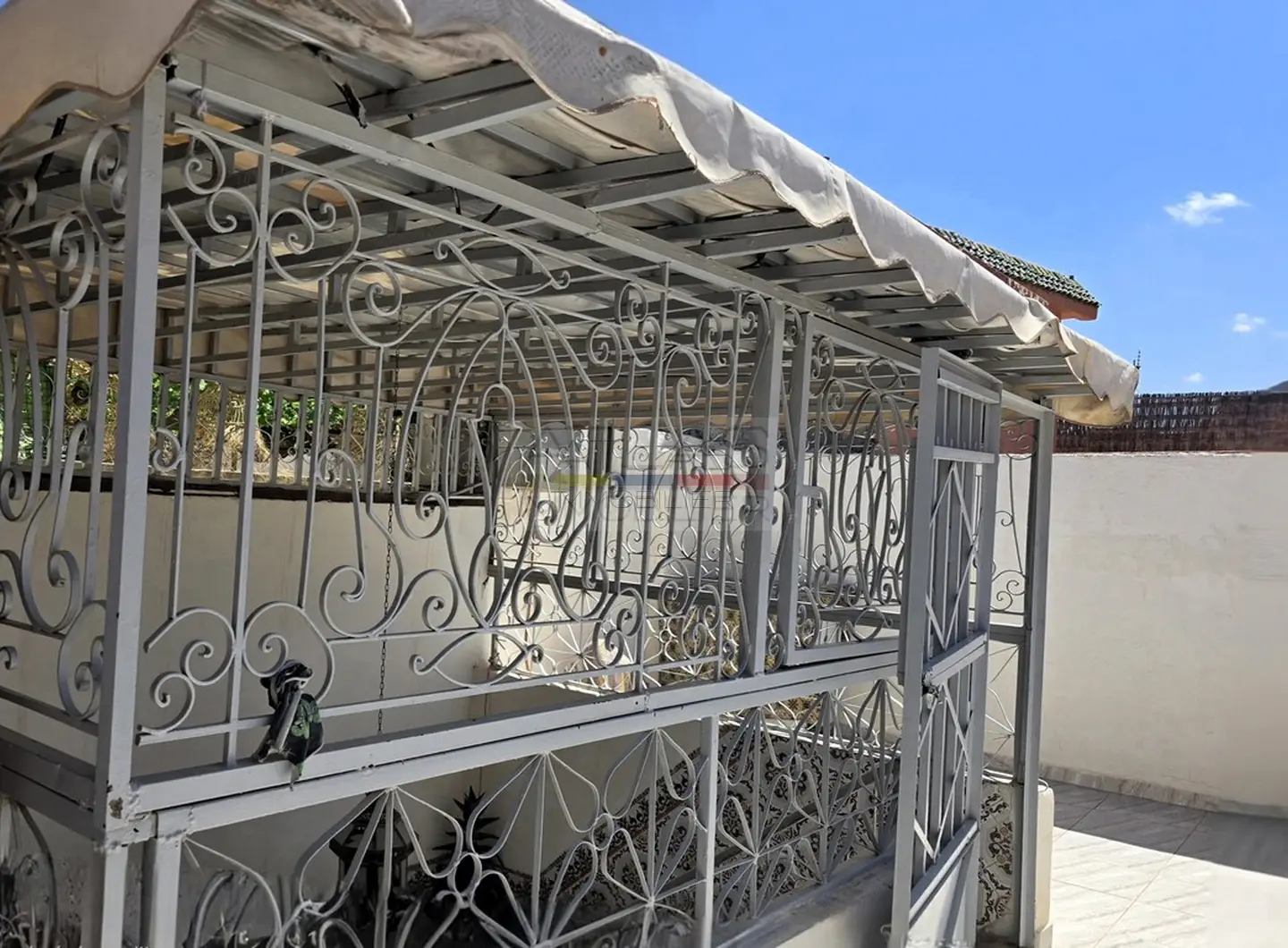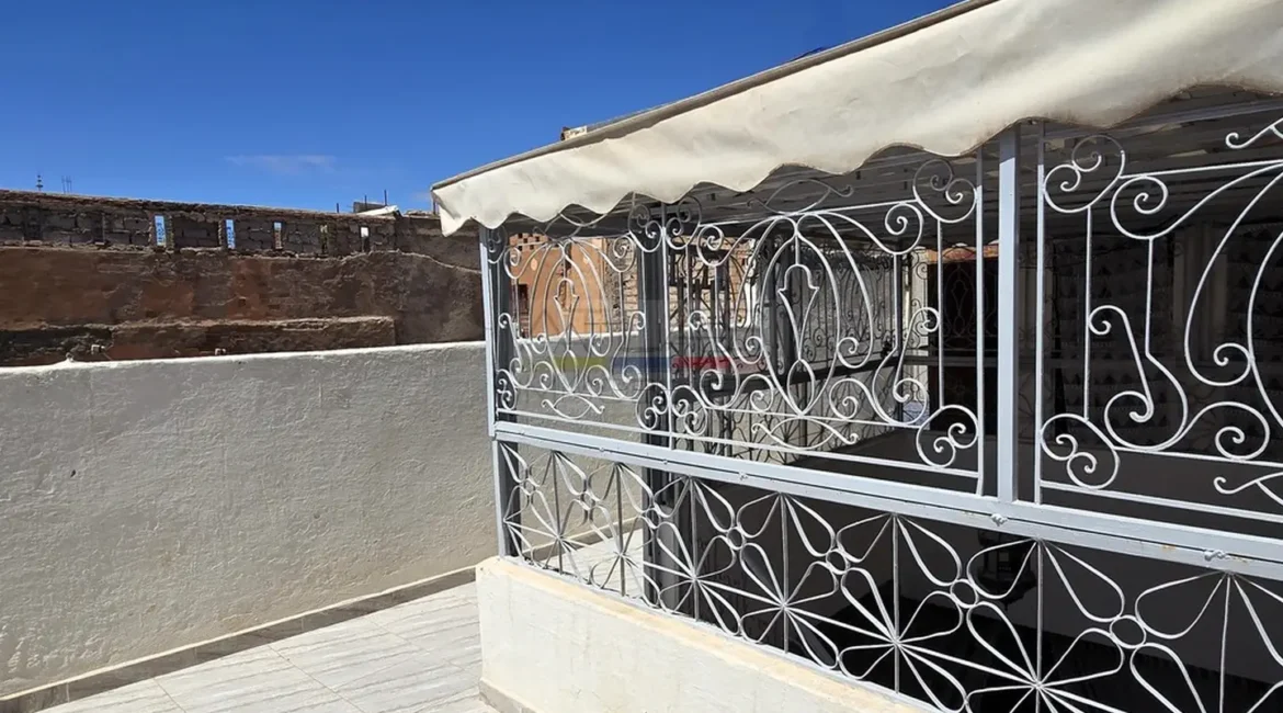 Organisée sur deux niveaux, avec un espace supplémentaire sur la sabah et une terrasse ensoleillée, la douiria offre une belle fluidité entre les espaces. Le rez-de-chaussée comprend un hall d’entrée, des toilettes invités et un salon. À l’étage, on découvre un vaste salon lumineux et une chambre indépendante surplombant la sabah, créant une atmosphère à la fois intime et conviviale. La terrasse, équipée d’une cuisine d’été et d’un coin extérieur, constitue un véritable atout pour profiter du climat agréable de Marrakech.