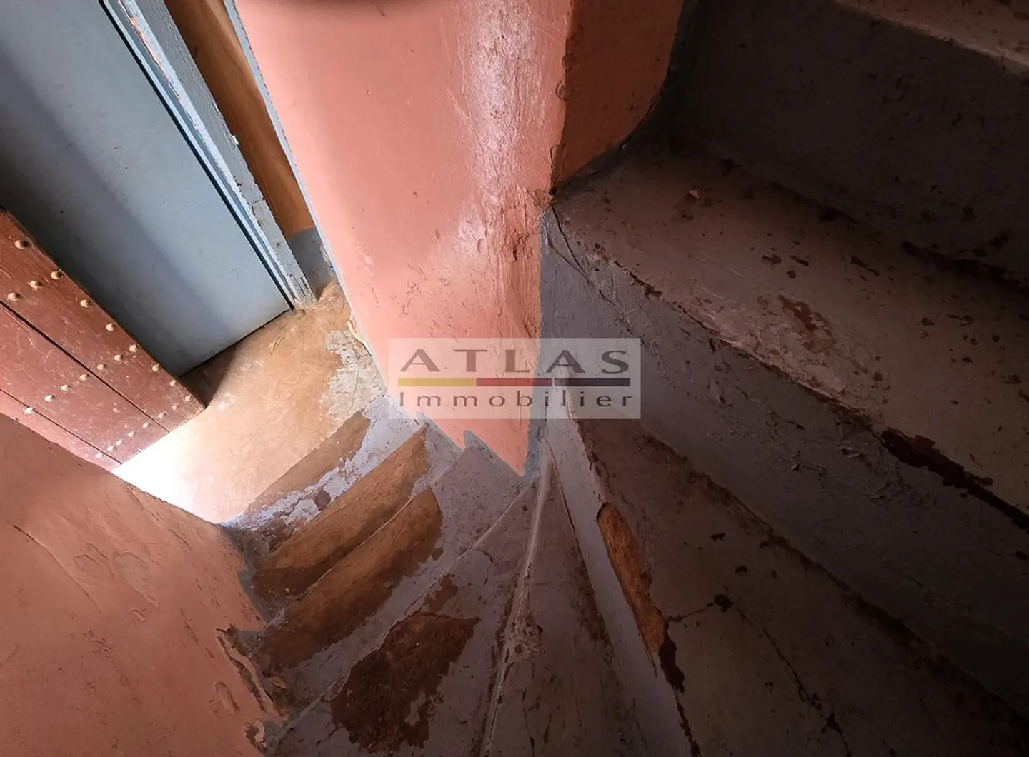 L’entrée s’ouvre sur un hall pratique desservant des sanitaires et une buanderie. Un escalier conduit à l’étage principal, où une grande pièce lumineuse d’environ 30 m² réunit un salon et un espace kitchenette permettant de préparer aisément les repas.