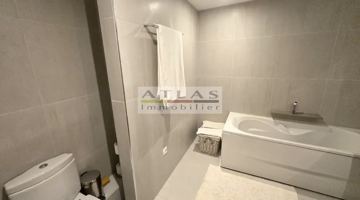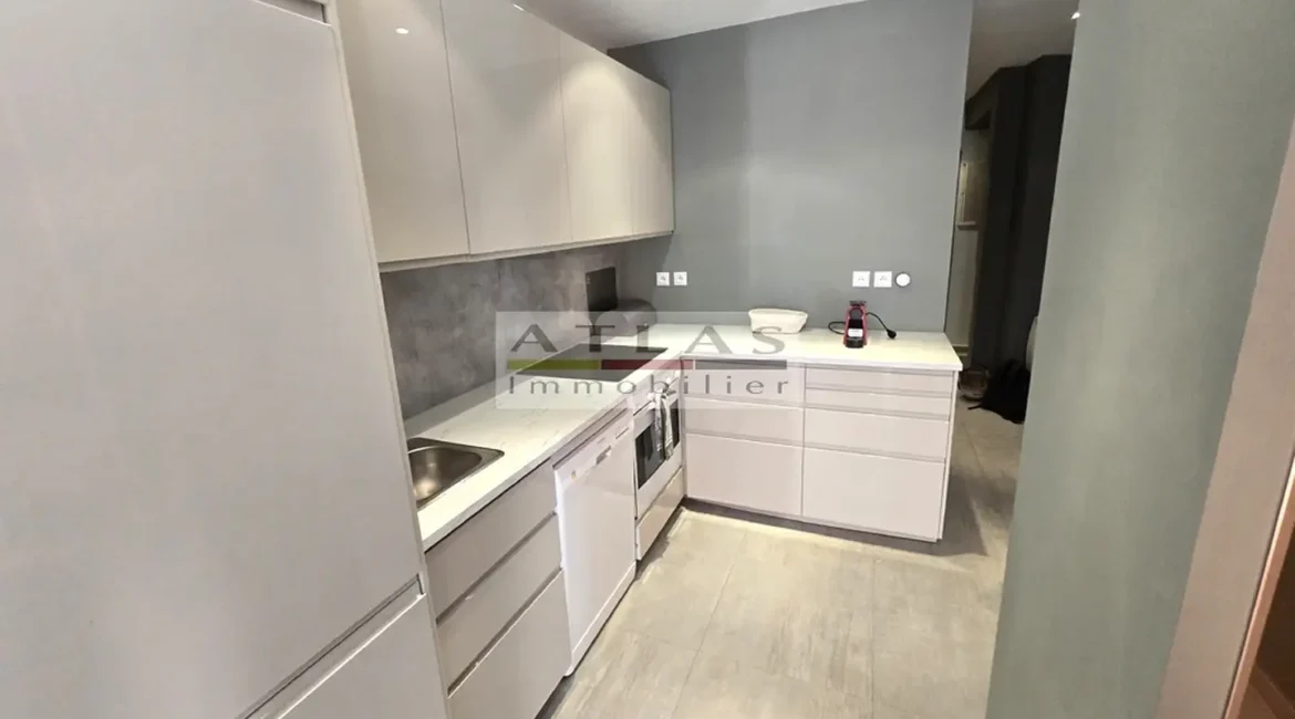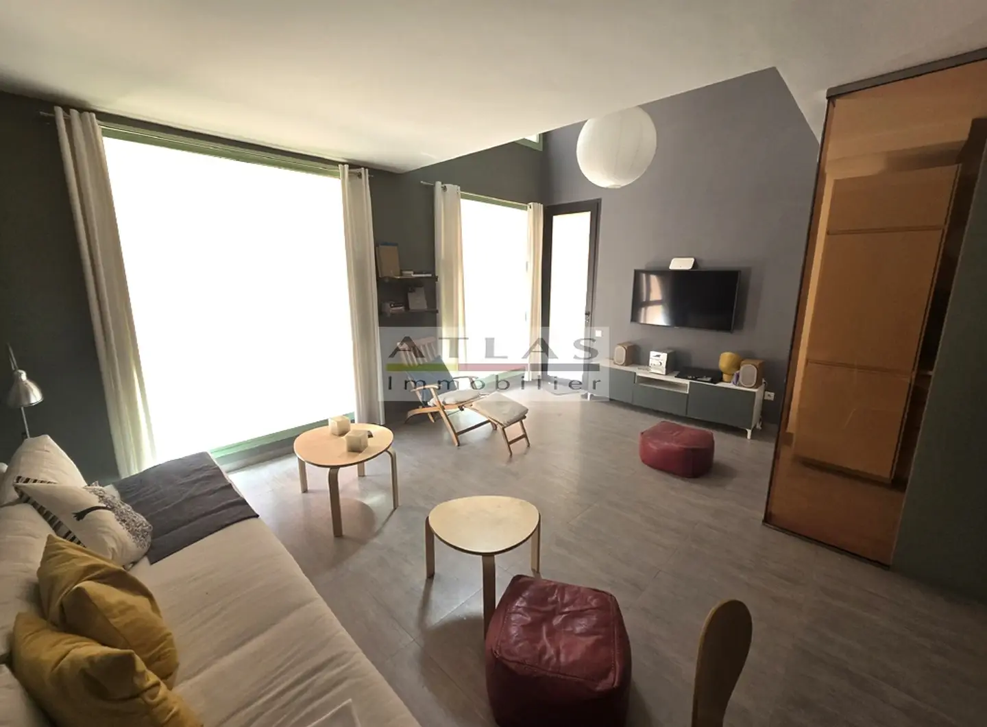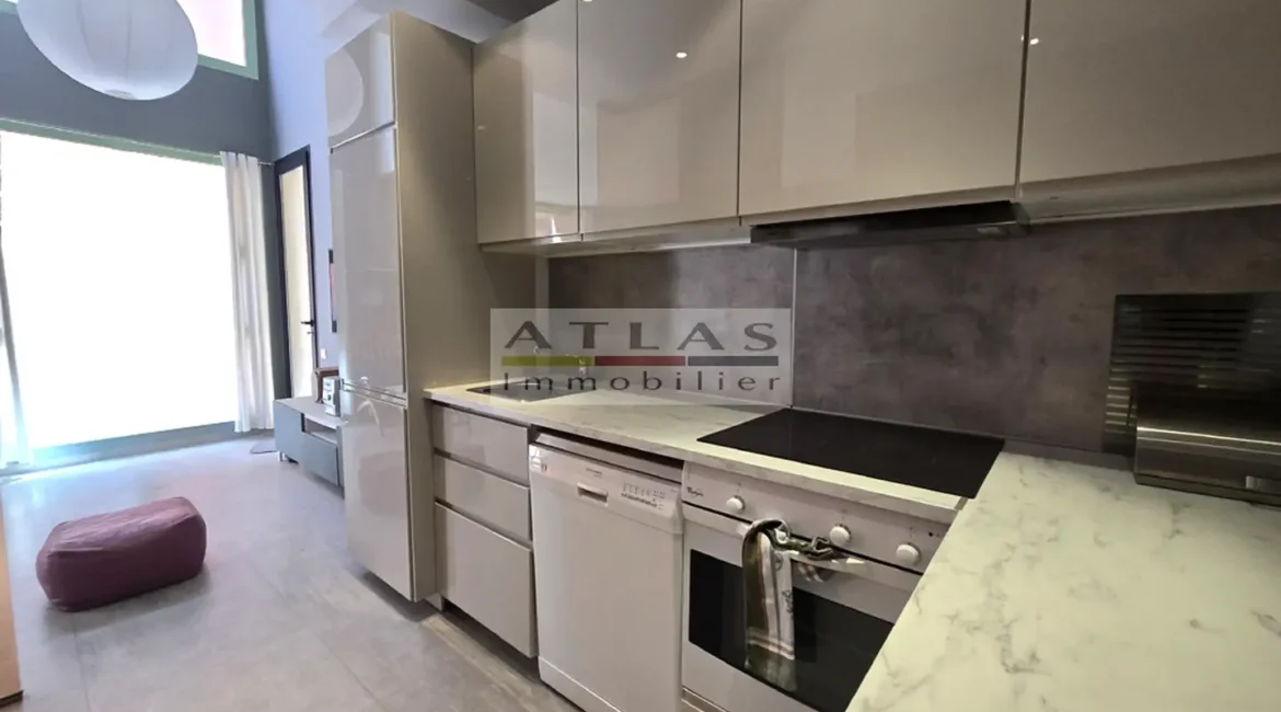À l’étage, la suite parentale avec dressing et salle de bains privative constituait un véritable cocon, tandis qu’une deuxième chambre et une salle de douches bien agencée répondaient aux besoins de confort et de praticité. Climatisé et connecté à la fibre optique, ce duplex alliait parfaitement modernité et fonctionnalité.