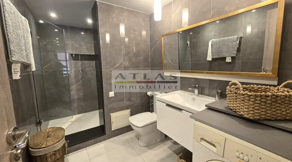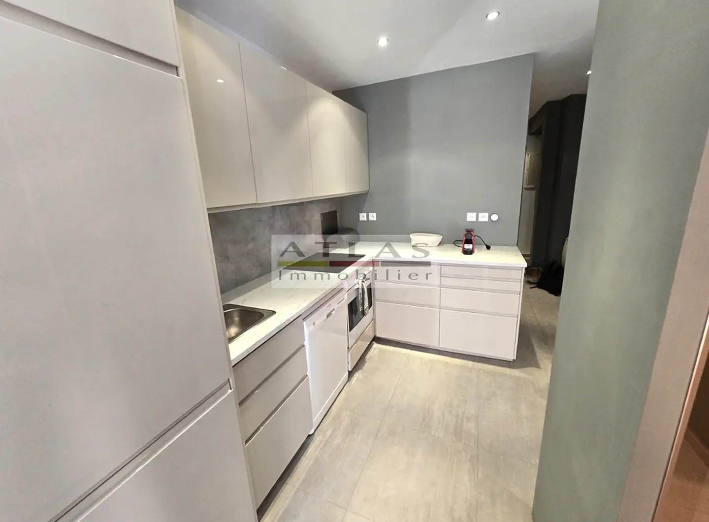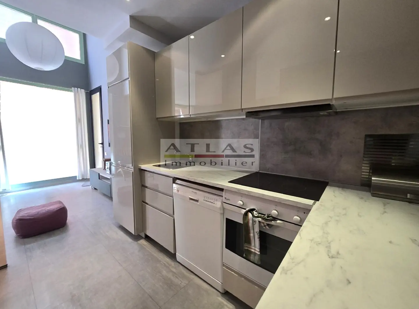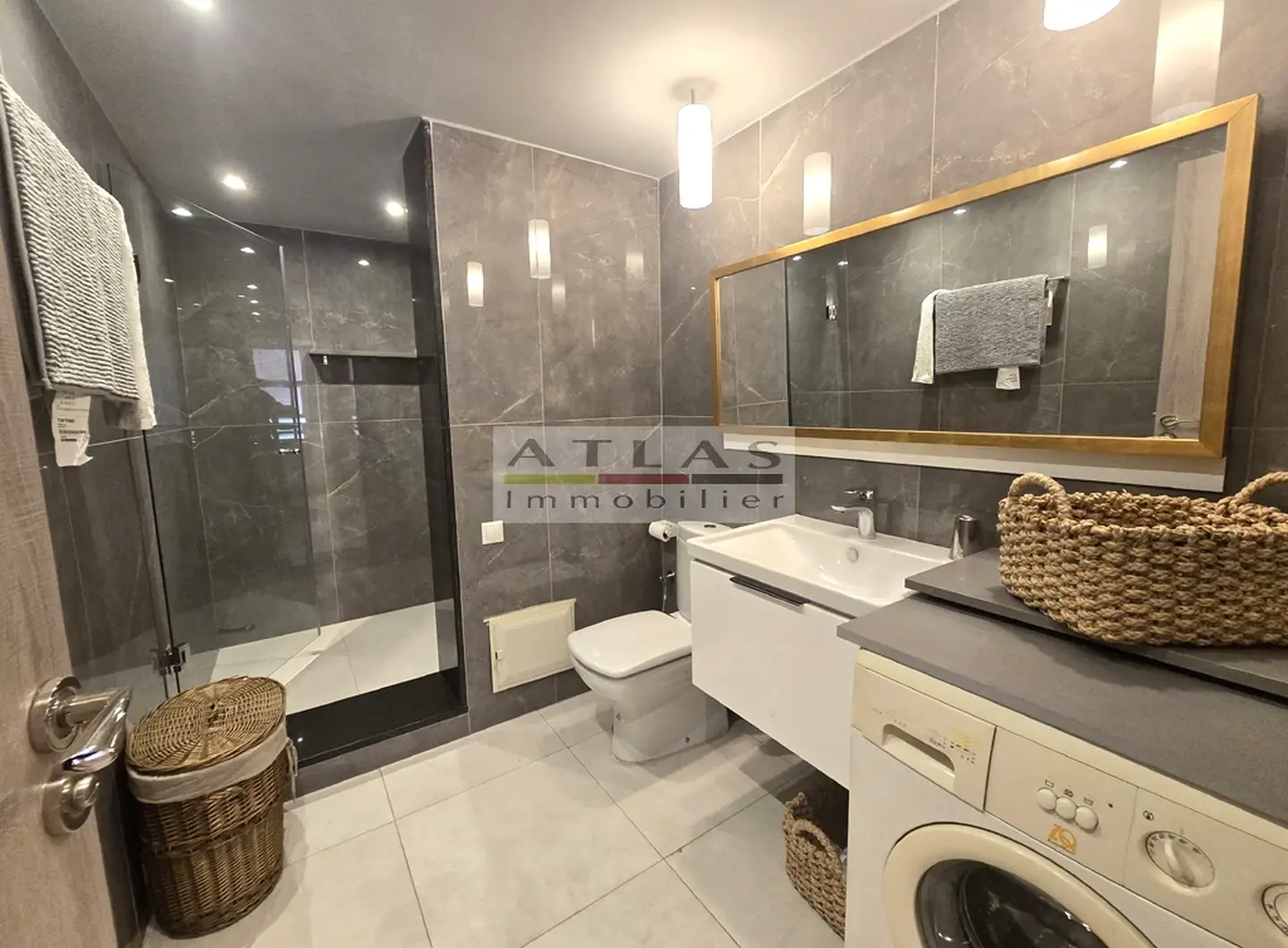 À l’étage, la suite parentale avec dressing et salle de bains privative constituait un véritable cocon, tandis qu’une deuxième chambre et une salle de douches bien agencée répondaient aux besoins de confort et de praticité. Climatisé et connecté à la fibre optique, ce duplex alliait parfaitement modernité et fonctionnalité.