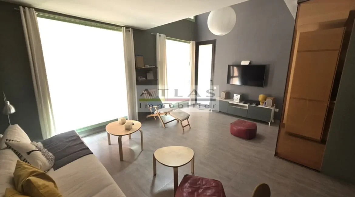 Entièrement repensé avec des finitions haut de gamme et un agencement moderne, il séduisait par son confort et sa luminosité. Au premier niveau, un salon-salle à manger baigné de lumière s’ouvrait sur une terrasse ensoleillée de 6 m², offrant un espace extérieur privilégié. La cuisine américaine, équipée d’un four et de plaques électriques, complétait harmonieusement cet espace de vie contemporain, tandis que des toilettes invités apportaient un confort supplémentaire.