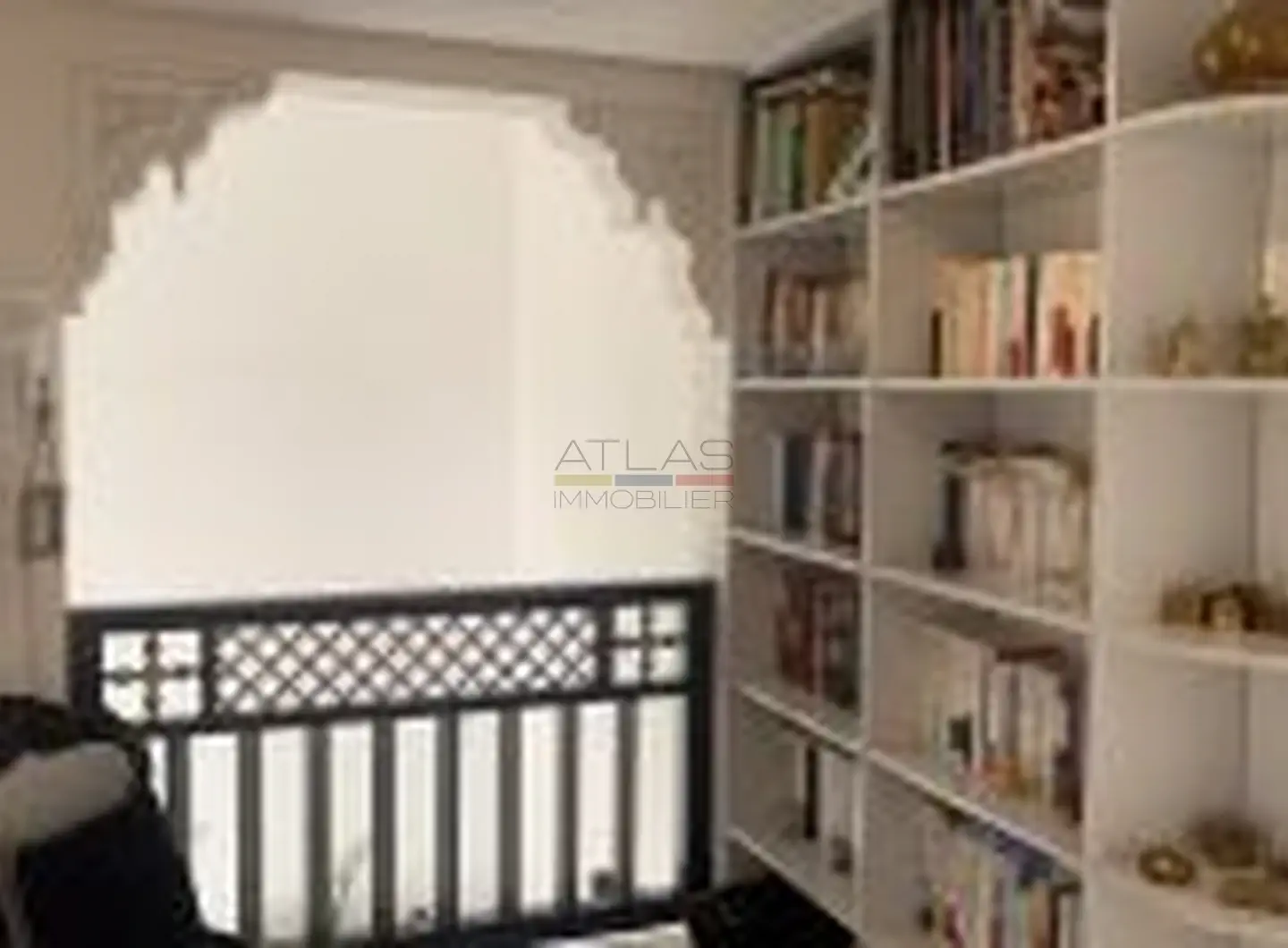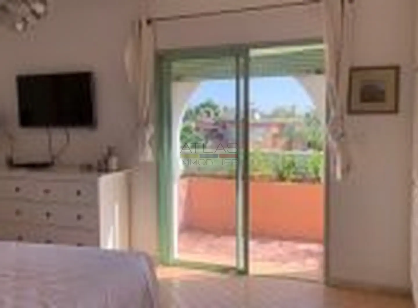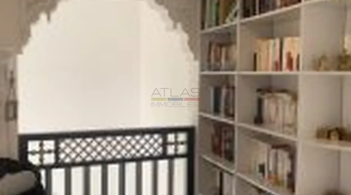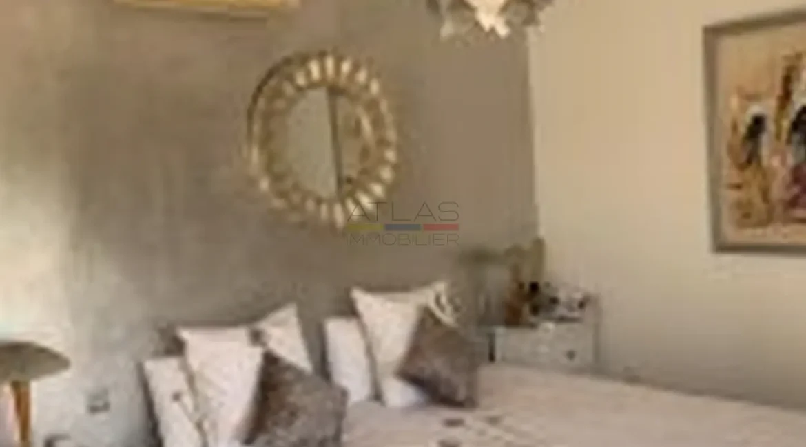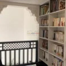 L’étage accueille deux chambres lumineuses, une salle de bain ainsi qu’une suite parentale dotée d’un dressing et d’une salle de bain privée, le tout relié par un hall spacieux favorisant la fluidité de circulation. La climatisation intégrale assure un confort optimal en toute saison, tandis que l’appartement, en parfait état, bénéficie de piscines résidentielles au sein de la copropriété, idéales pour des moments de détente. Ce bien rare conjugue élégance, confort et emplacement privilégié, offrant un style de vie recherché au cœur de Marrakech.