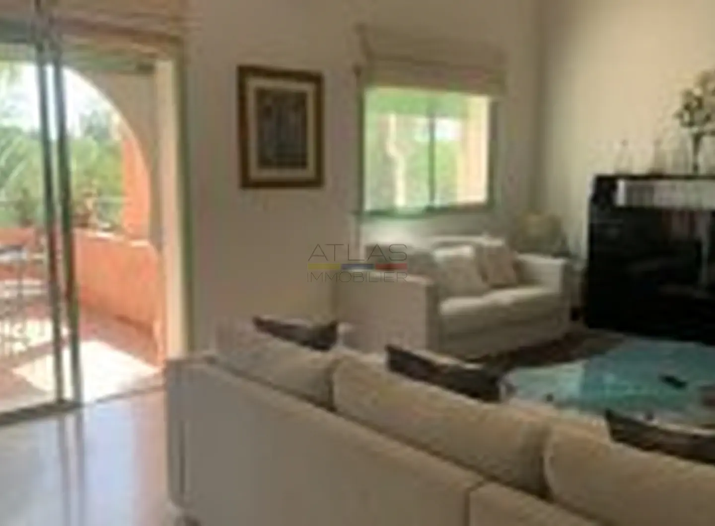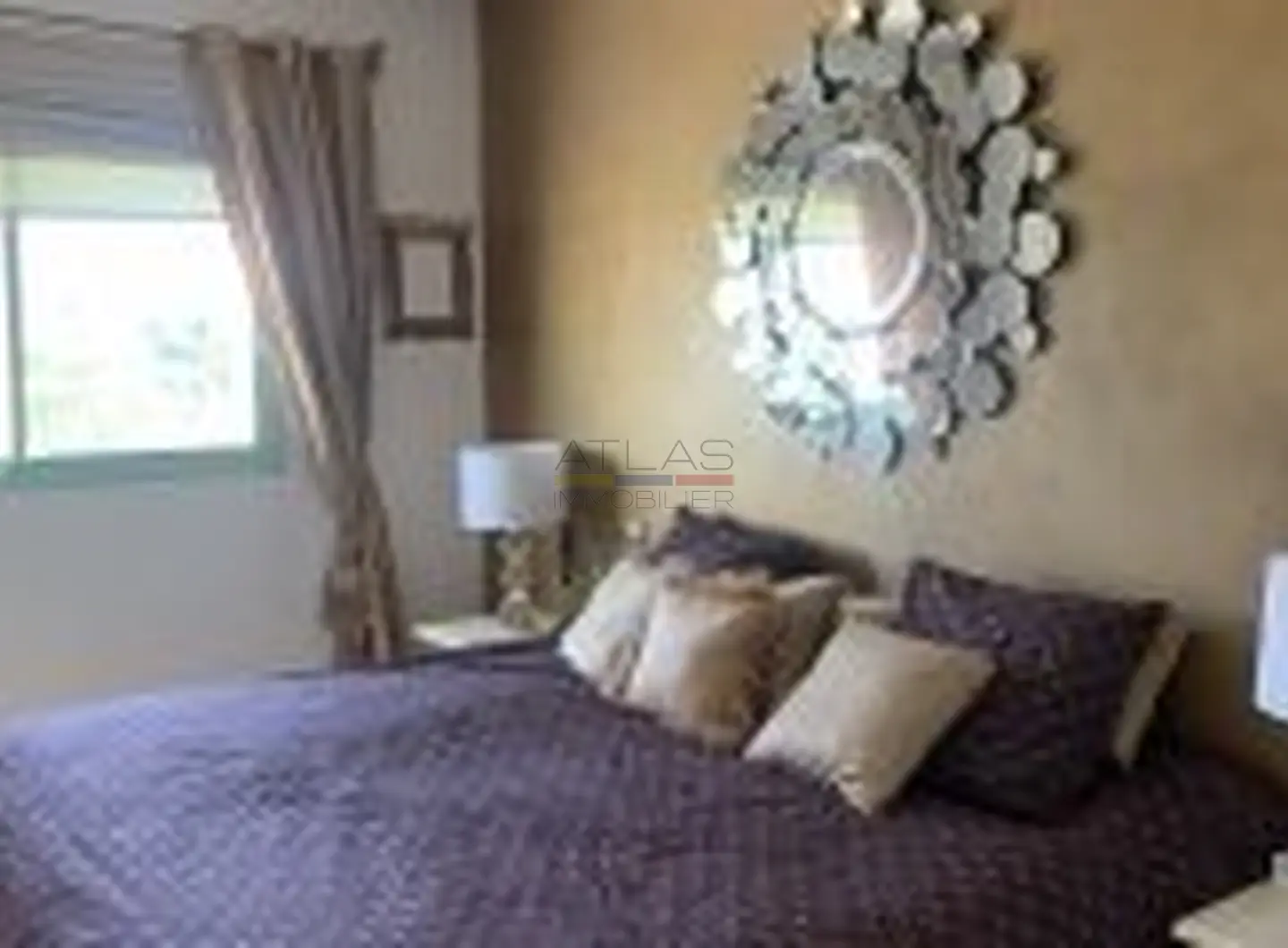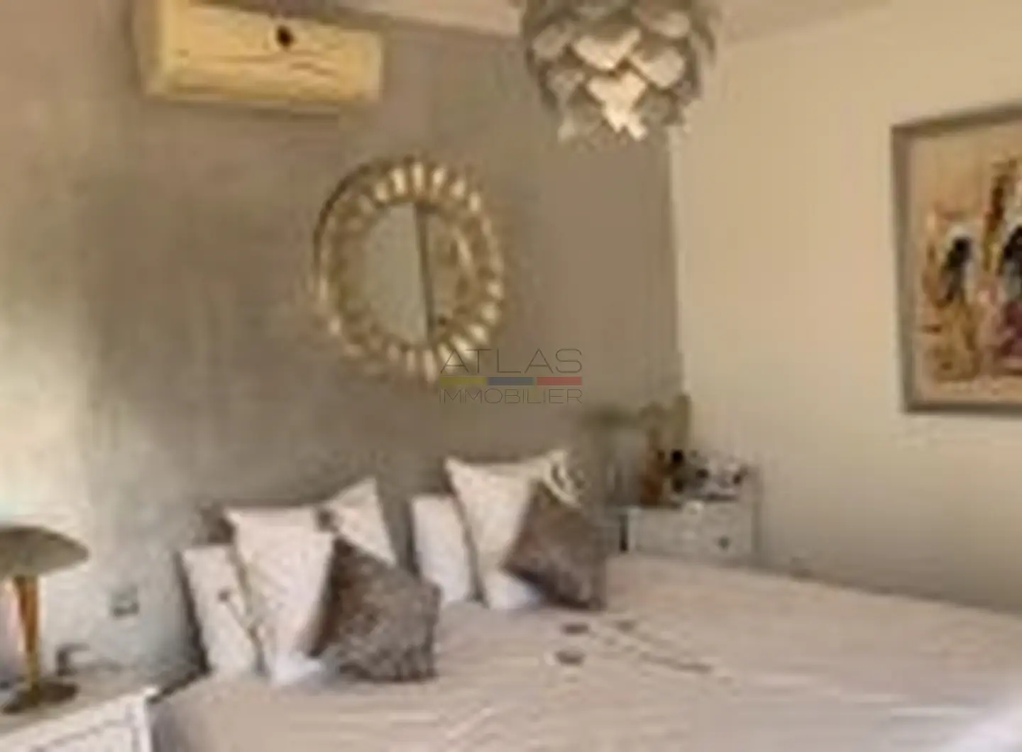 L’étage accueille deux chambres lumineuses, une salle de bain ainsi qu’une suite parentale dotée d’un dressing et d’une salle de bain privée, le tout relié par un hall spacieux favorisant la fluidité de circulation. La climatisation intégrale assure un confort optimal en toute saison, tandis que l’appartement, en parfait état, bénéficie de piscines résidentielles au sein de la copropriété, idéales pour des moments de détente. Ce bien rare conjugue élégance, confort et emplacement privilégié, offrant un style de vie recherché au cœur de Marrakech.
