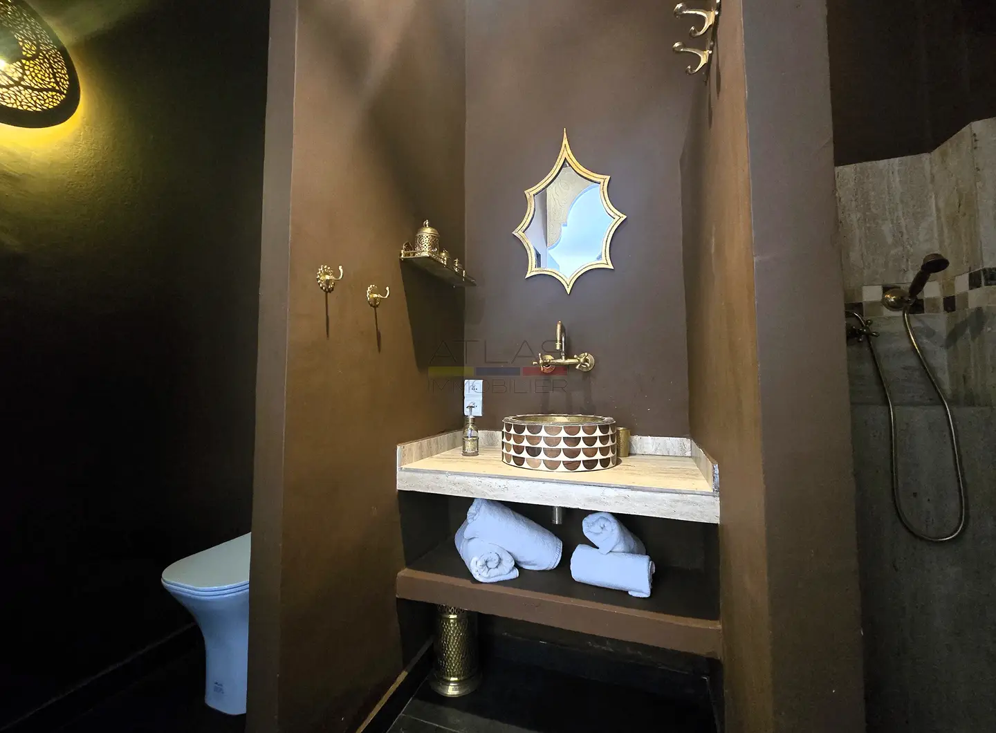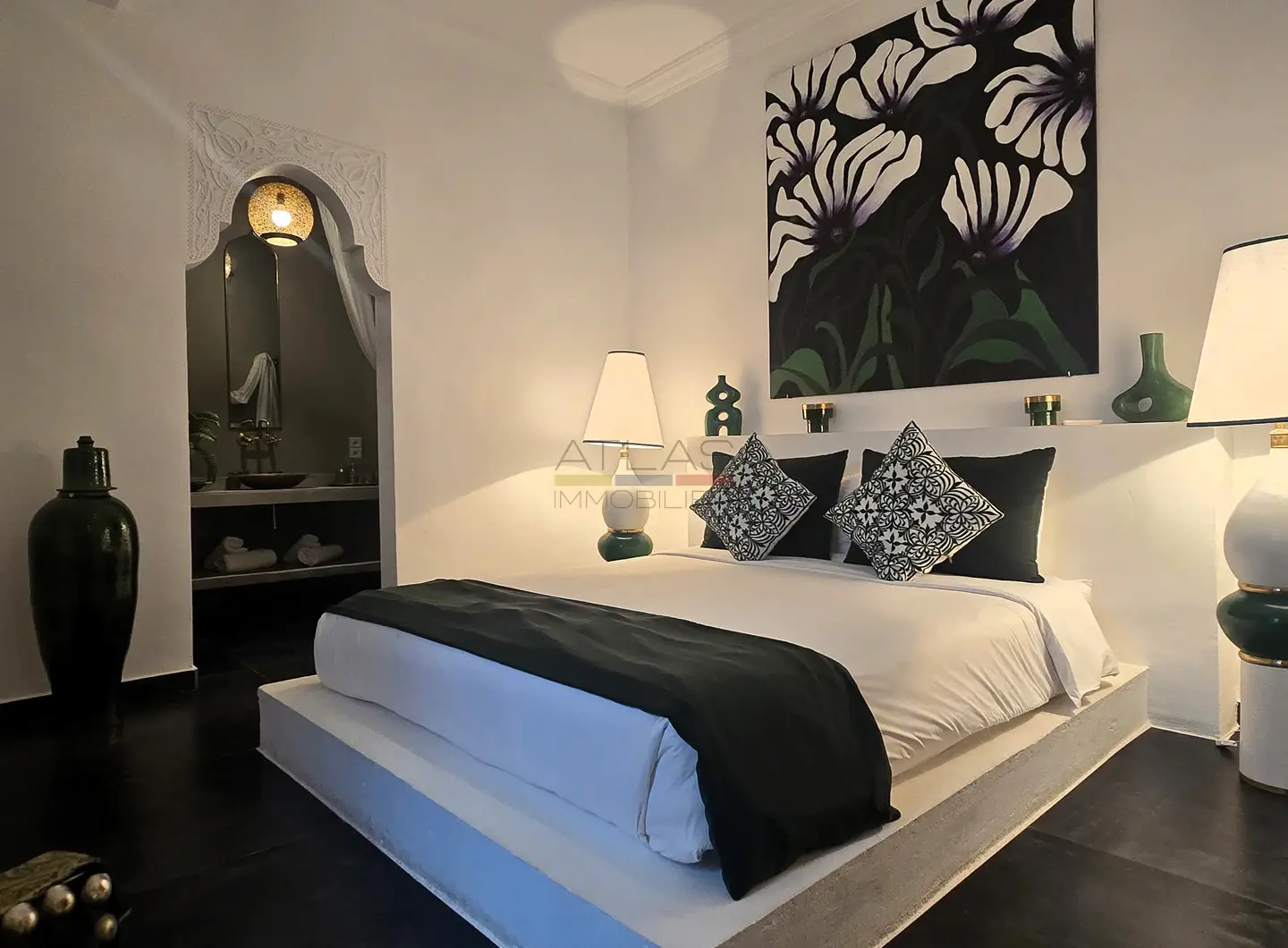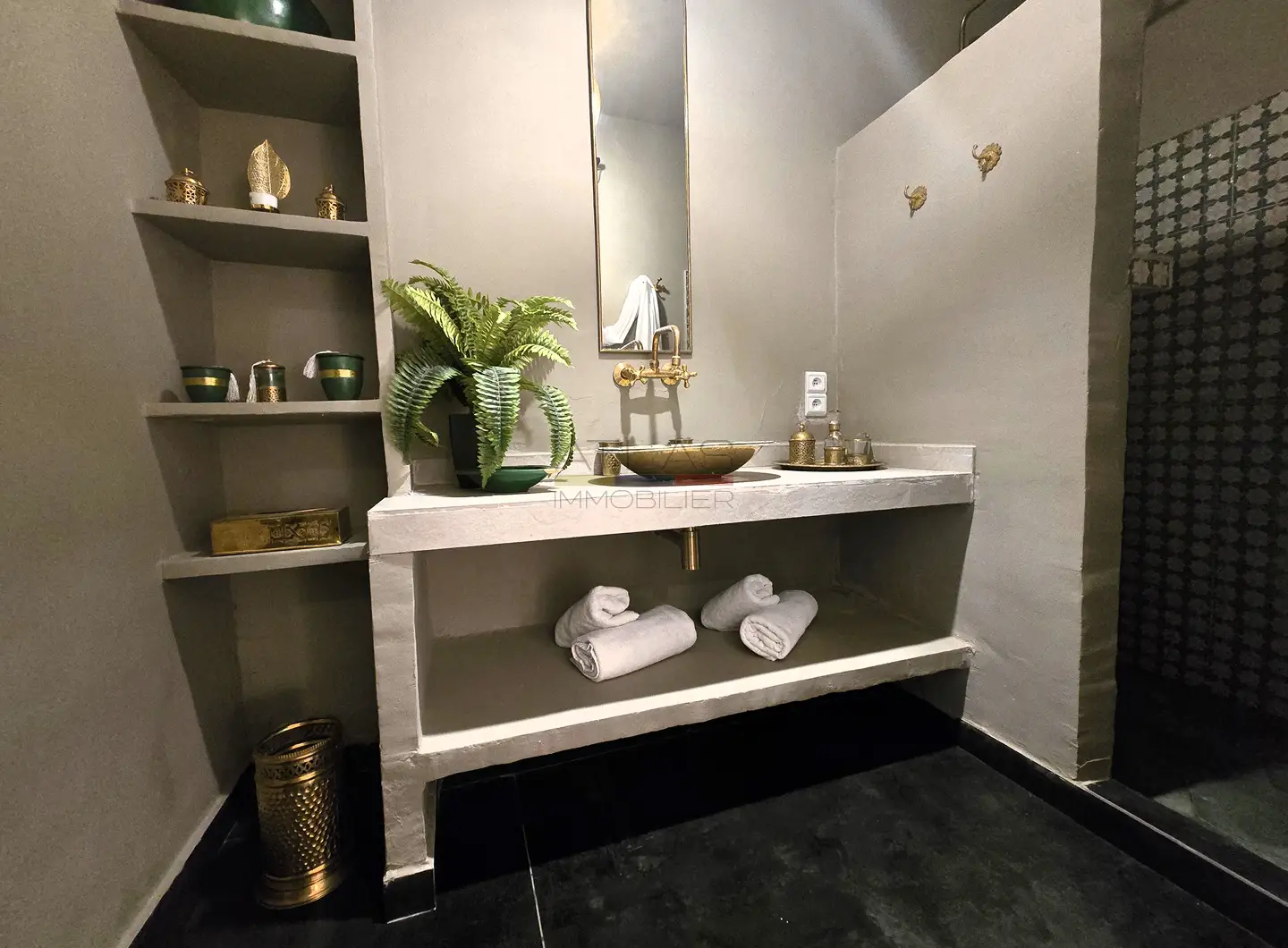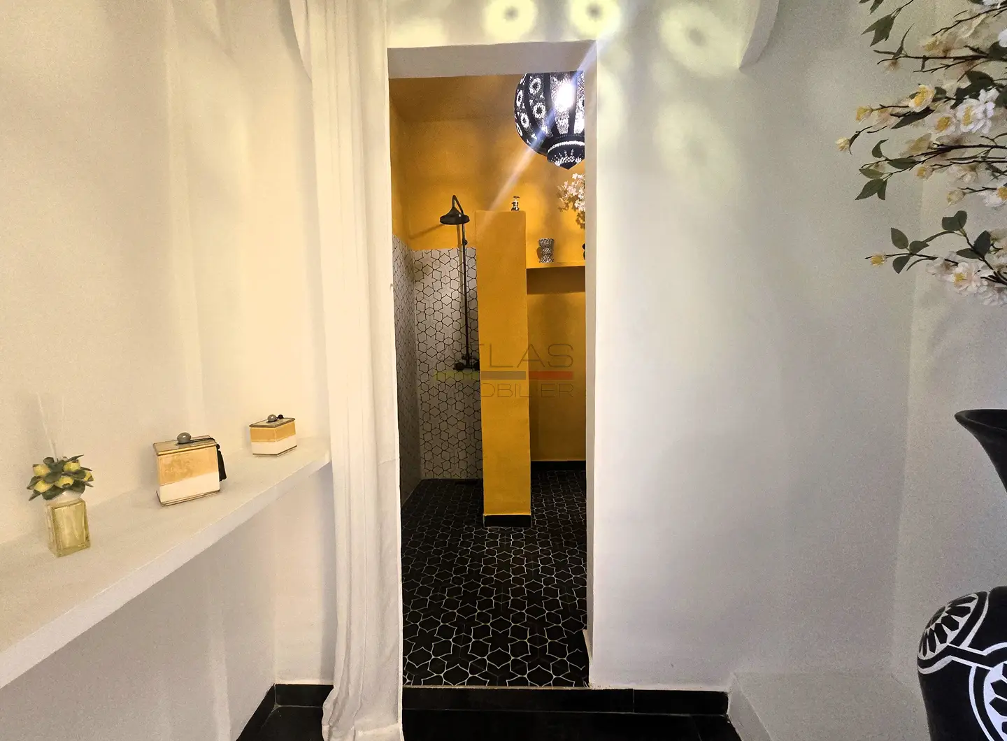 Entièrement climatisé et vendu meublé avec ses œuvres d’art et sa décoration, ce riad se distingue comme une valeur sûre sur le marché locatif saisonnier de Marrakech. Sa situation idéale dans la Kasbah, quartier recherché pour son authenticité et sa proximité des monuments emblématiques, en fait une opportunité rare. Les suites spacieuses et le cachet artistique du lieu séduiront autant les voyageurs que les investisseurs avisés.