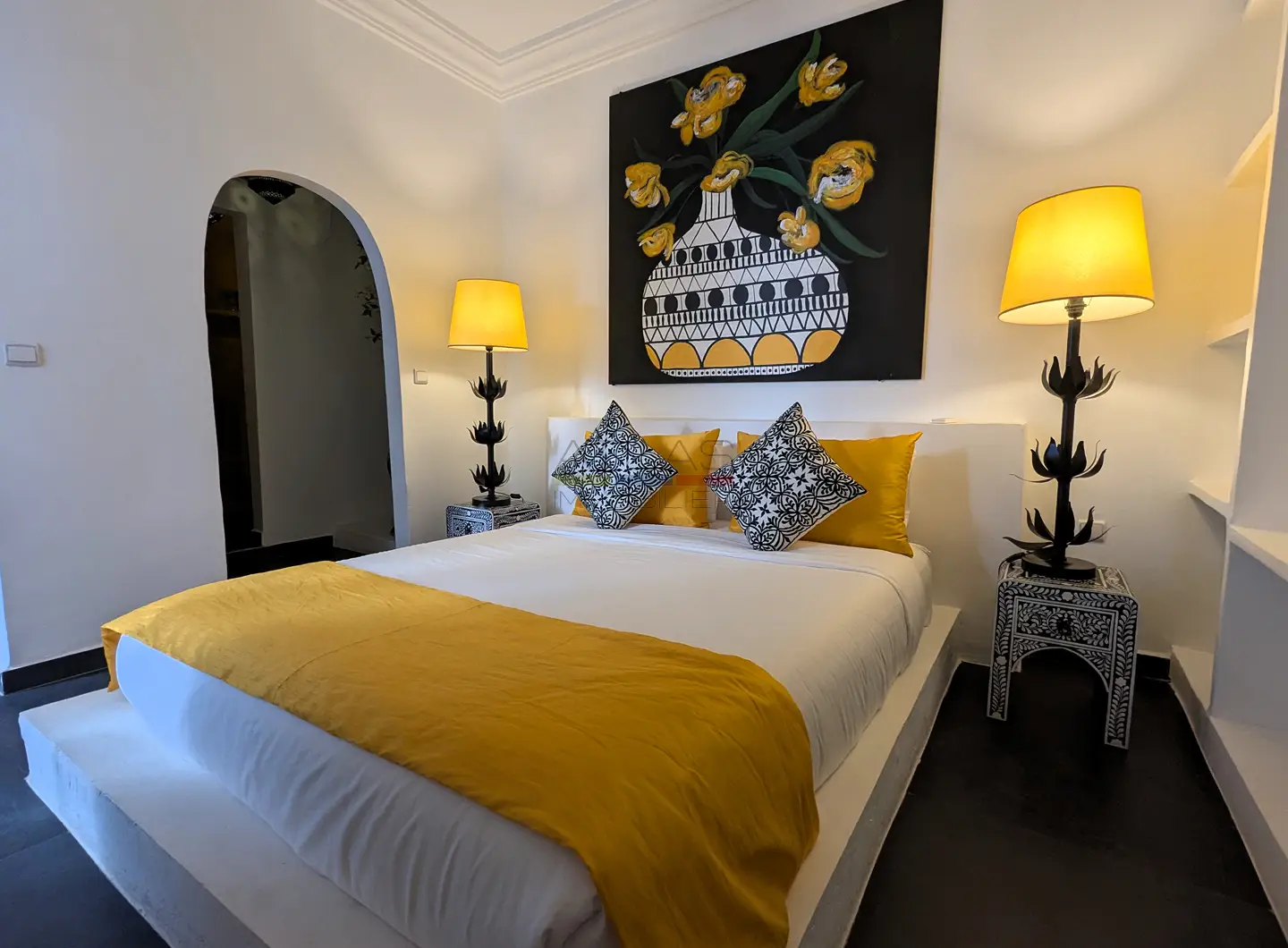 Au centre historique de Marrakech, dans un derb paisible de la Kasbah, ce riad à l’âme résolument arty marie avec élégance l’art contemporain et le savoir-faire traditionnel marocain. Entièrement restauré et décoré avec goût, il offre une atmosphère raffinée où chaque détail a été pensé avec soin : peintures modernes, matériaux nobles et touches inspirées créent une harmonie unique entre authenticité et modernité.