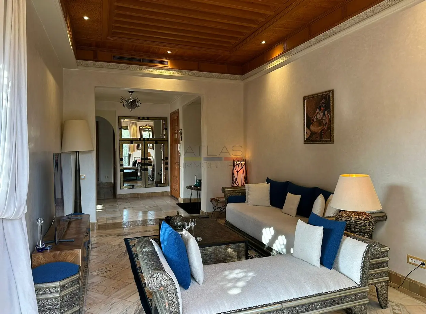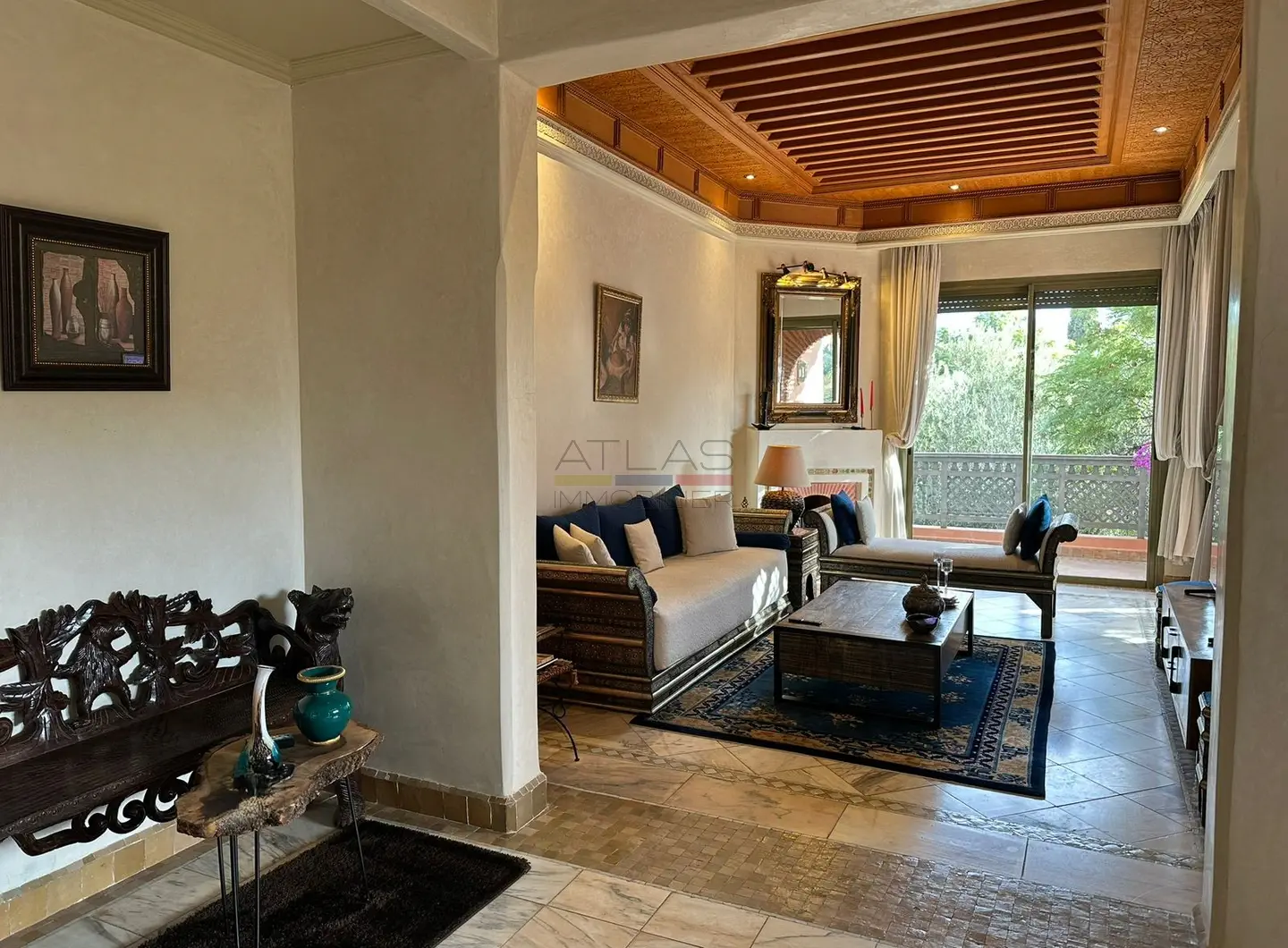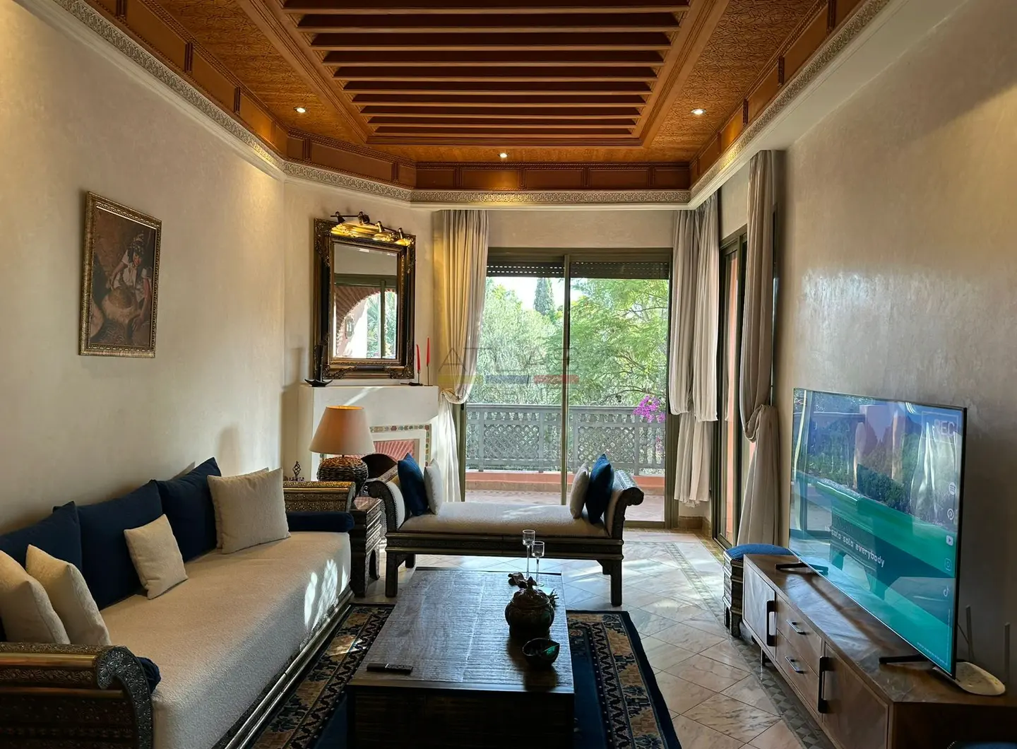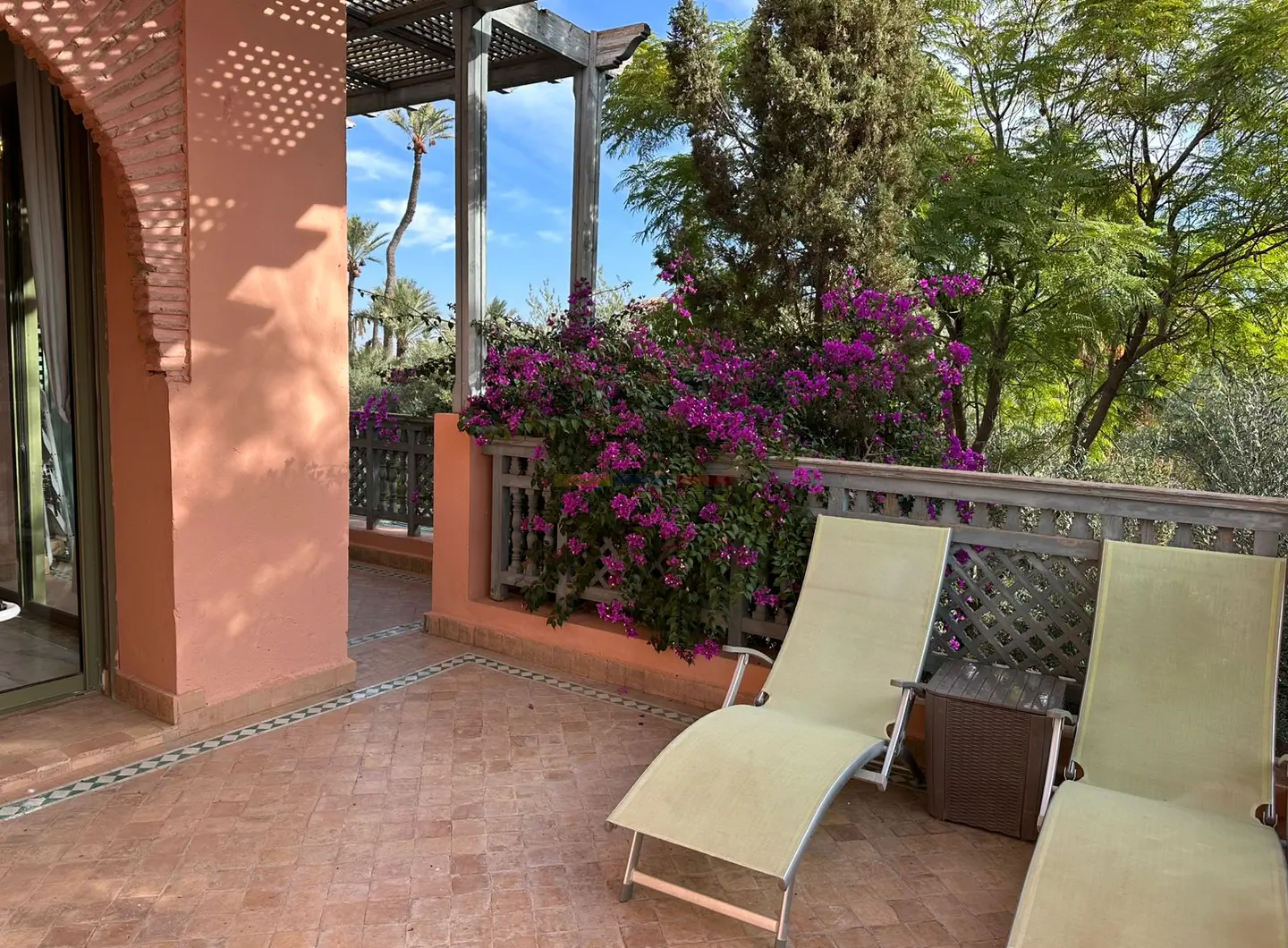 Situé dans l’une des résidences les plus prisées et sécurisées de la Palmeraie de Marrakech, cet élégant appartement séduit par sa luminosité, ses volumes généreux et son environnement verdoyant d’exception. Implanté au premier étage, il offre un cadre de vie paisible et raffiné, à seulement dix minutes du centre-ville et à proximité immédiate des commerces et services essentiels.