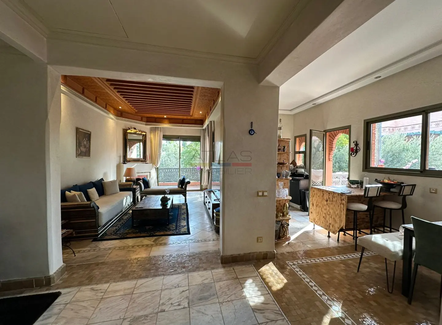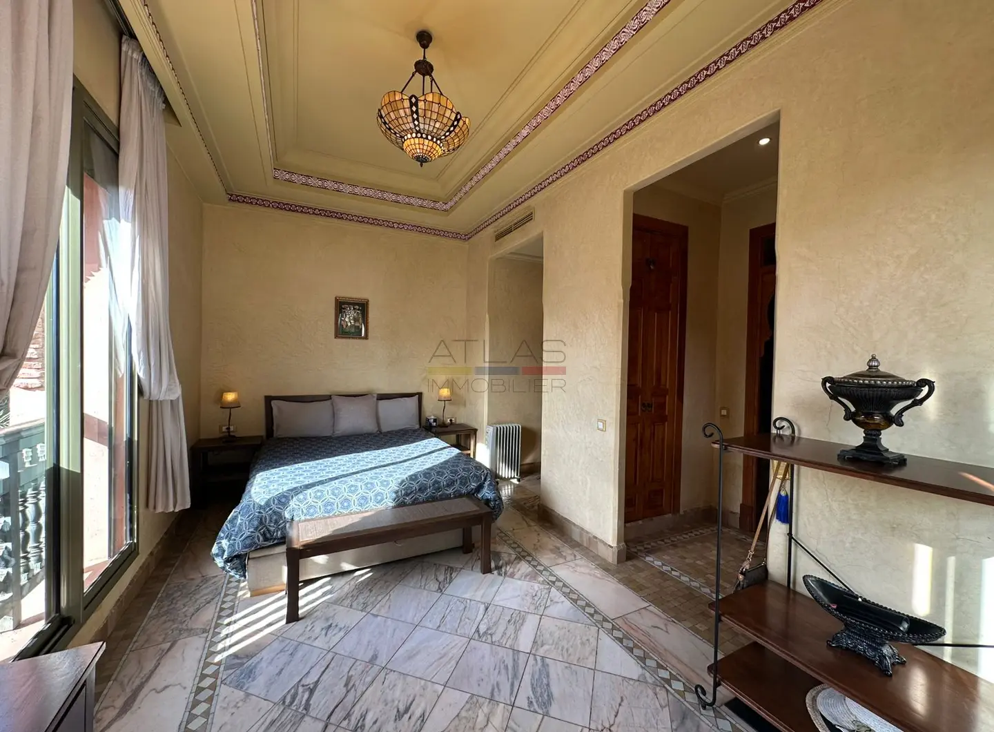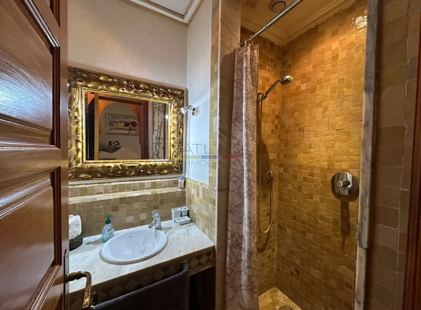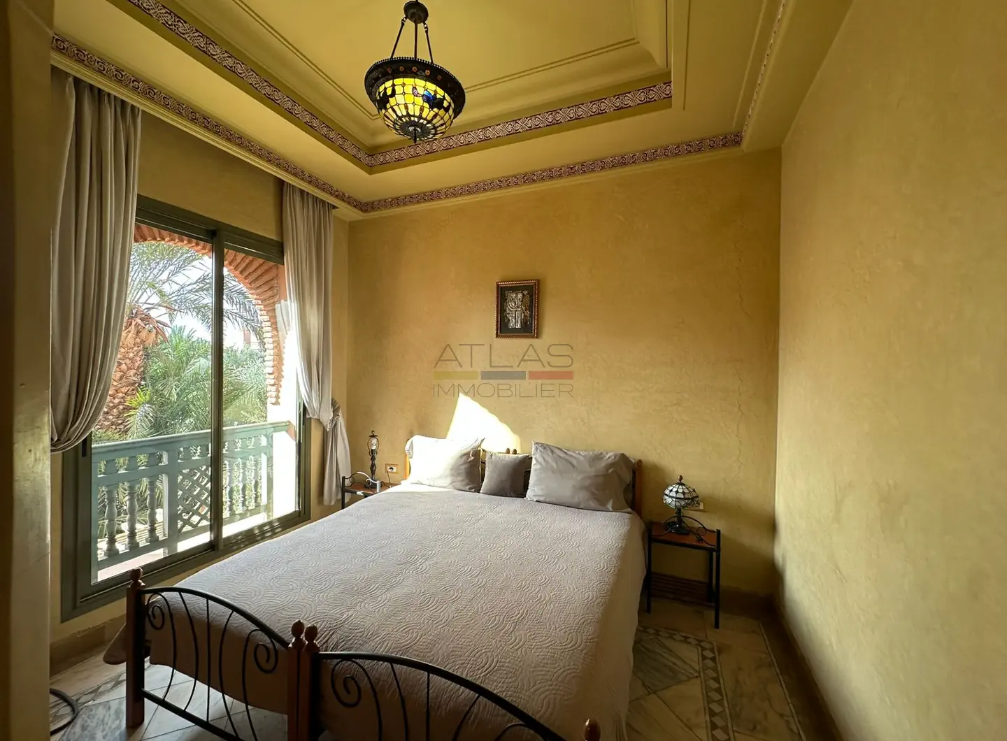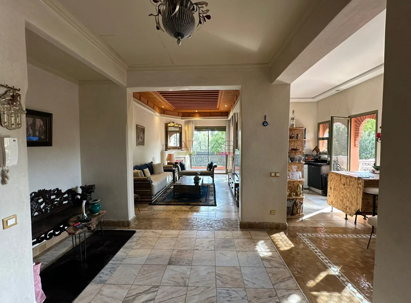 Situé dans l’une des résidences les plus prisées et sécurisées de la Palmeraie de Marrakech, cet élégant appartement séduit par sa luminosité, ses volumes généreux et son environnement verdoyant d’exception. Implanté au premier étage, il offre un cadre de vie paisible et raffiné, à seulement dix minutes du centre-ville et à proximité immédiate des commerces et services essentiels.