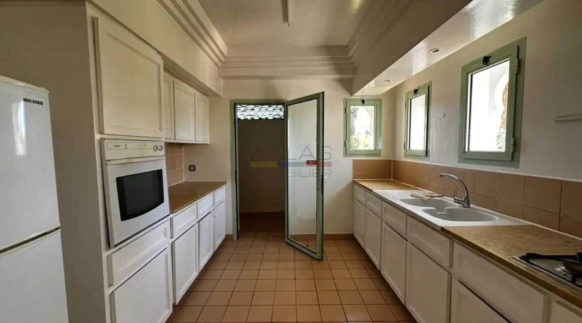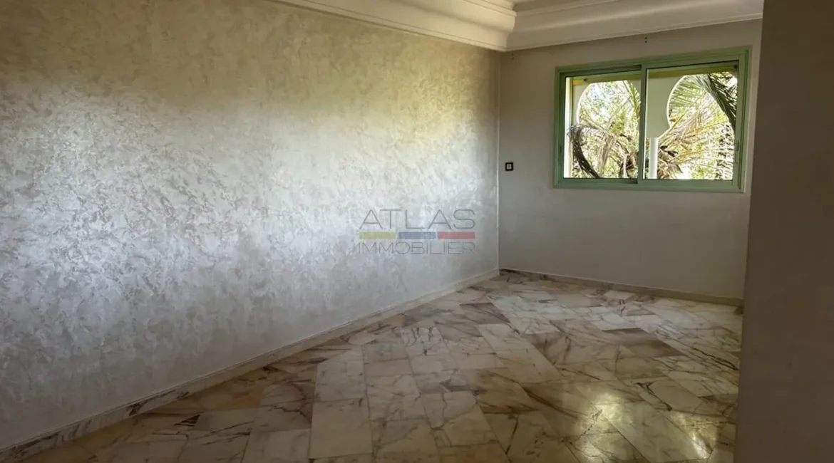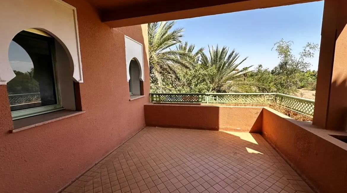 Situé dans l’une des résidences les plus prisées et sécurisées de la Palmeraie de Marrakech, ce superbe duplex conjugue confort moderne, luminosité et emplacement d’exception. À moins de dix minutes de la médina et à deux minutes de tous les commerces, il offre un cadre de vie paisible et privilégié, idéal pour ceux qui recherchent une adresse exclusive alliant sérénité et proximité.