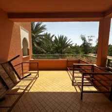 Les extérieurs sont tout aussi séduisants : de grandes terrasses sans vis-à-vis, parfaitement orientées, prolongent les espaces de vie et permettent de profiter pleinement du climat ensoleillé de Marrakech. Avec ses 20 m² de terrasses privatives, ce bien constitue un lieu privilégié pour des repas en plein air, des instants de détente ou des soirées entre amis.
