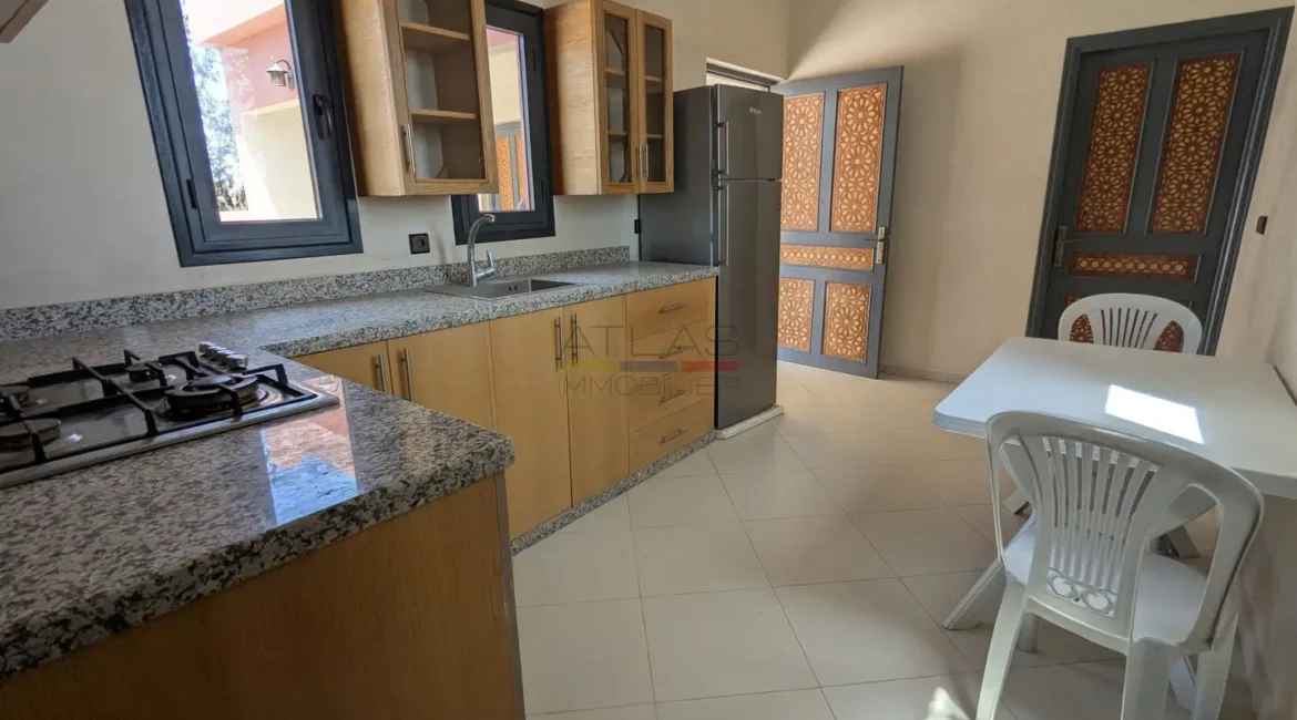 La villa dispose de trois chambres confortables, parfaitement adaptées pour une famille ou des séjours prolongés. Deux salons lumineux offrent de beaux espaces de détente et de réception, tandis que deux cuisines équipées assurent praticité et convivialité au quotidien. Trois salles de bains modernes et bien agencées viennent compléter cet agencement harmonieux.
