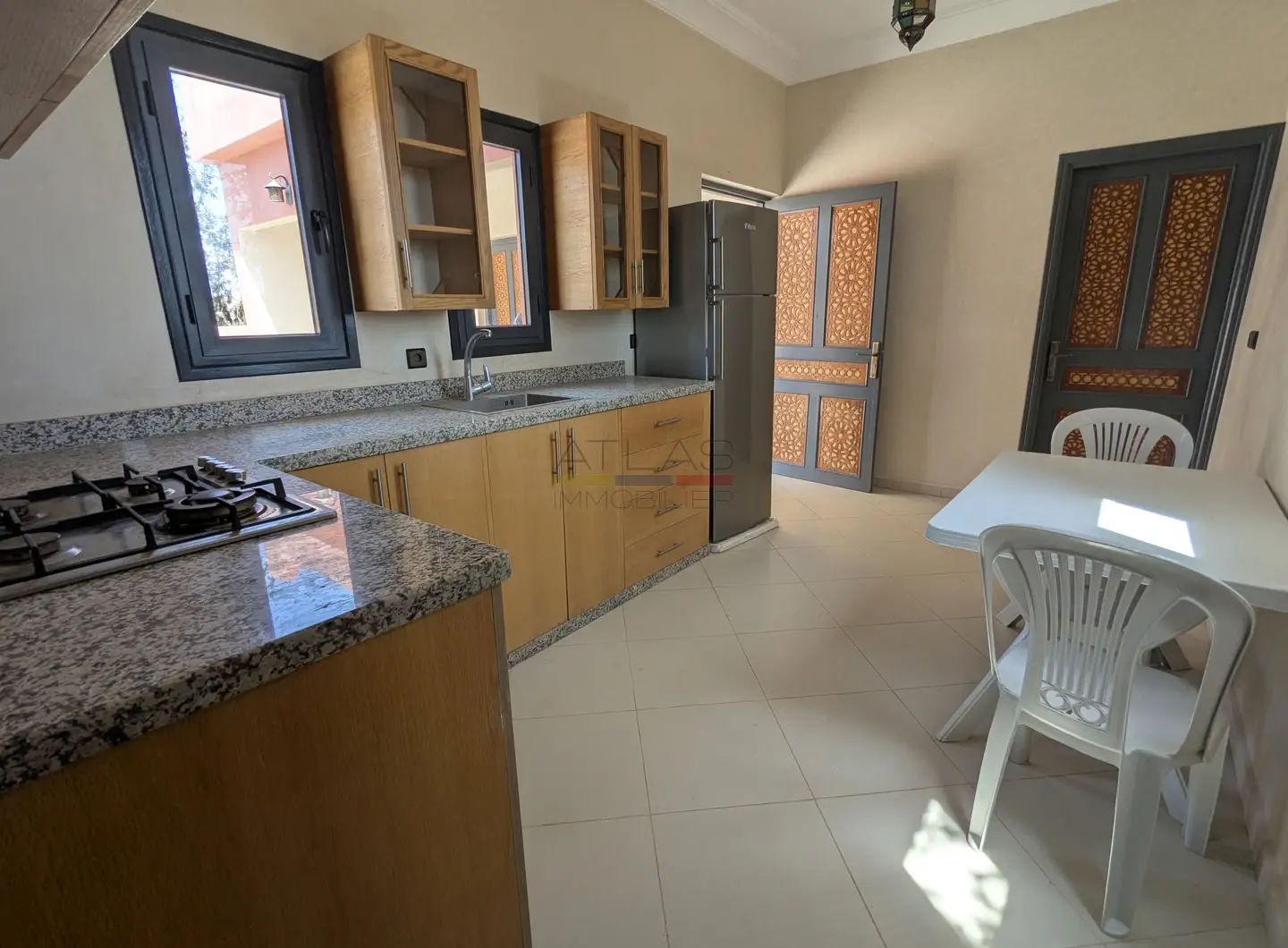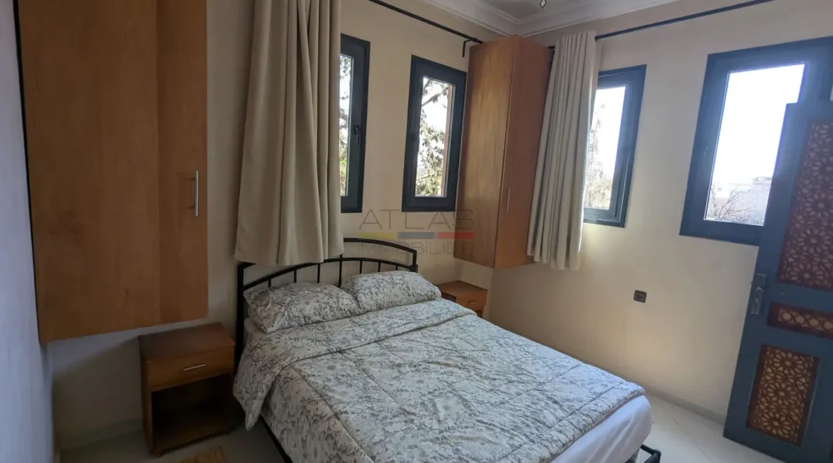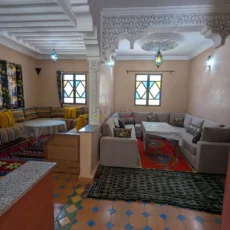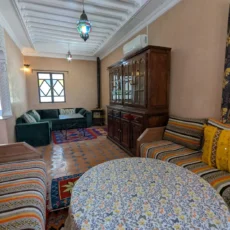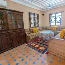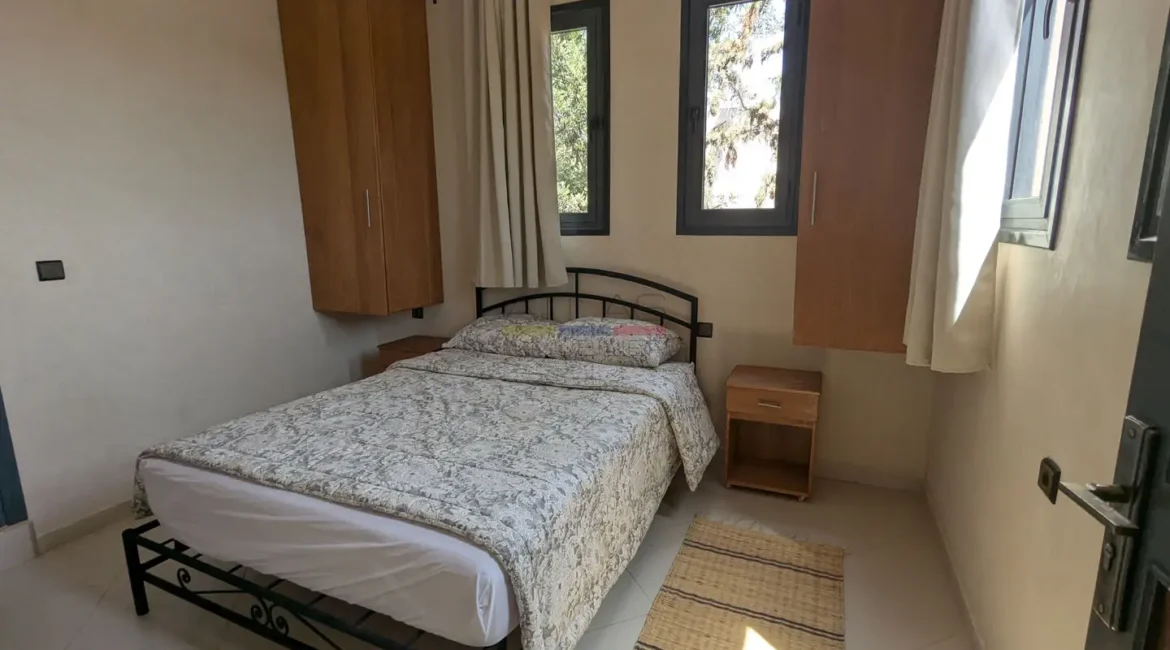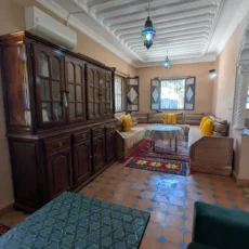 L’espace extérieur séduira par sa grande terrasse, idéale pour profiter des douces soirées d’Essaouira, ainsi que par sa piscine qui invite à la détente et aux moments de convivialité. Le vaste jardin arboré de figuiers et d’oliviers offre une atmosphère apaisante et un charme méditerranéen unique. La villa peut être louée meublée ou vide, selon les besoins et préférences des futurs locataires.