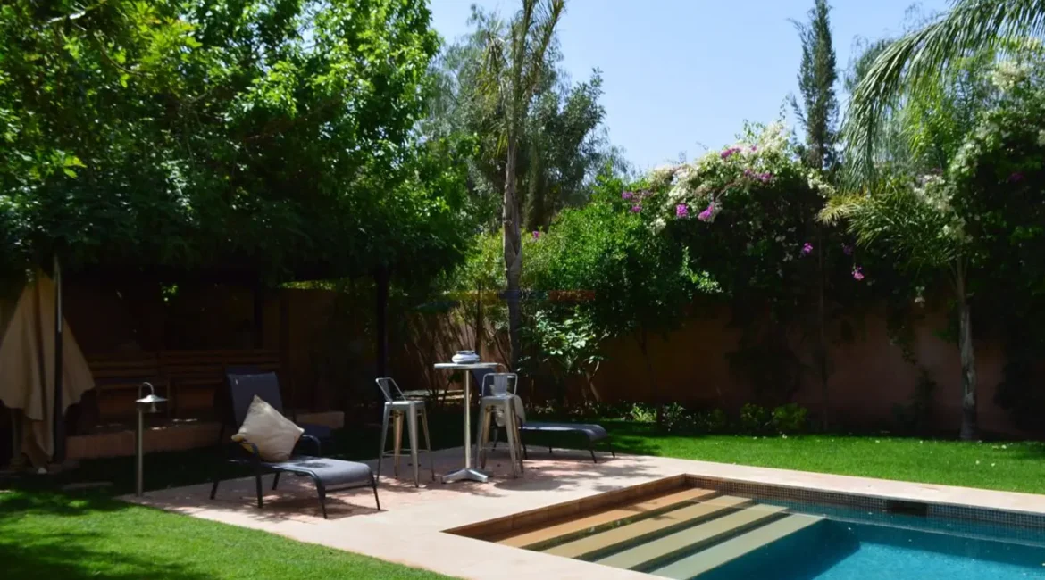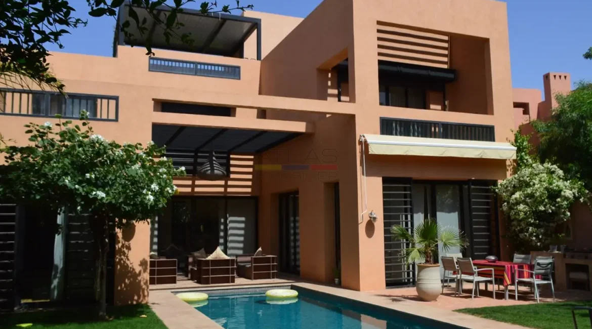 Villa contemporaine Marrakech, villa golf Marrakech, villa haut standing Maroc, villa avec piscine Marrakech, maison moderne proche golf, villa avec jacuzzi Marrakech, maison luxe Marrakech, villa avec hammam privé, villa avec solarium Maroc, villa design Marrakech, maison haut de gamme Maroc, villa trois suites Marrakech