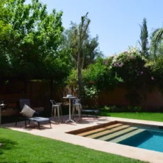 À seulement dix minutes du centre-ville de Marrakech, cette villa contemporaine vous invite à vivre une expérience unique, mêlant raffinement, confort et sérénité.