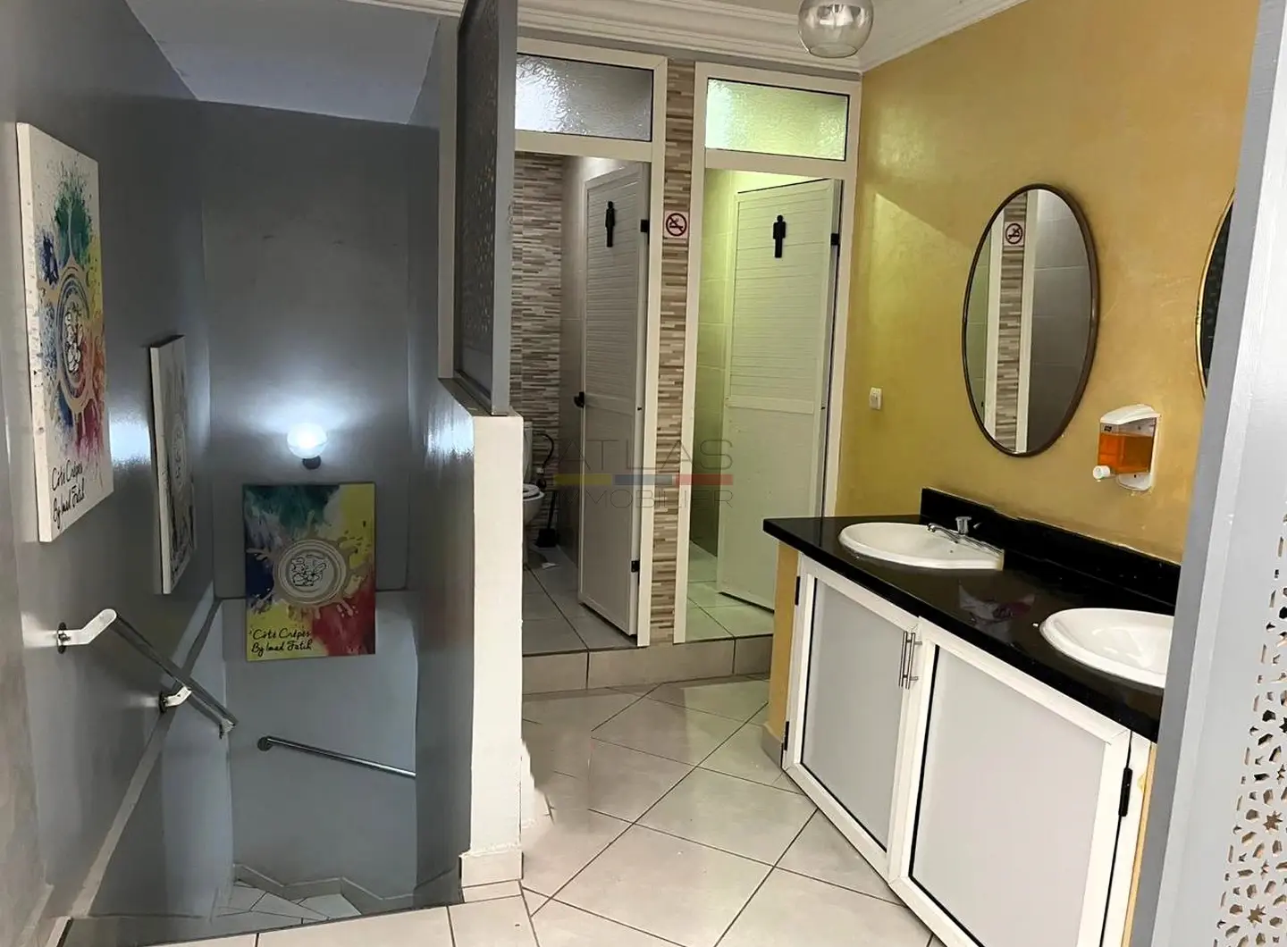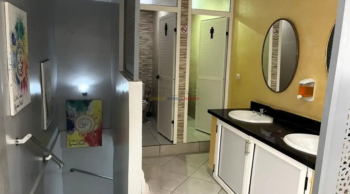 Sur un terrain de 96 m², ce bien se compose d’un restaurant snack renommé pouvant accueillir entre 80 et 90 couverts, équipé d’une vaste cuisine professionnelle de plus de 12 mètres de long, d’une réception fonctionnelle avec système d’envoi et de plusieurs espaces de restauration dont une salle au rez-de-chaussée et une grande salle de 90 m² à l’étage.
