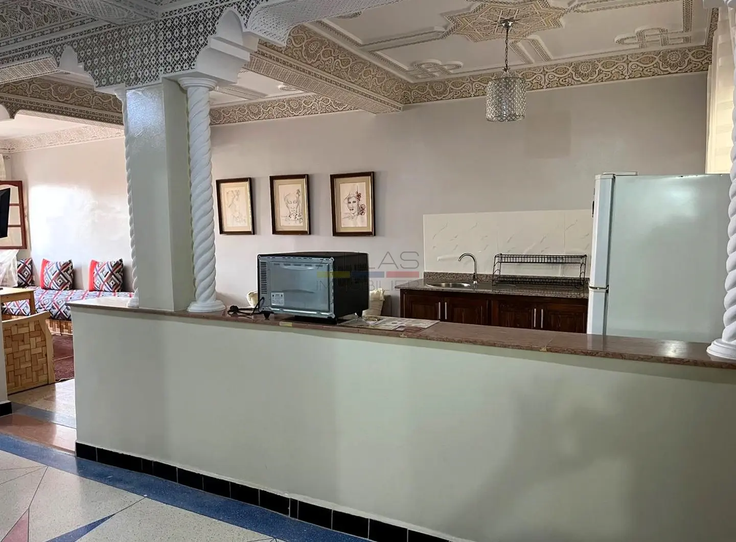 Vendu entièrement meublé et équipé, toutes autorisations, cet immeuble est prêt à accueillir votre activité sans délai et constitue un placement de choix dans l’effervescence d’Essaouira.