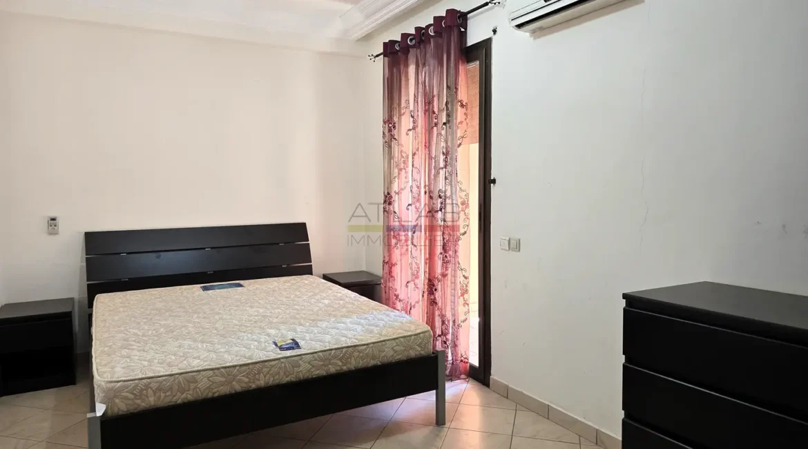 #appartement meublé Marrakech #location longue durée #appartement route de Casa #appartement avec balcon #résidence avec piscine #appartement climatisé #location avec charges comprises #appartement proche Madame Plaza #location meublée Marrakech #appartement 1 chambre Marrakech