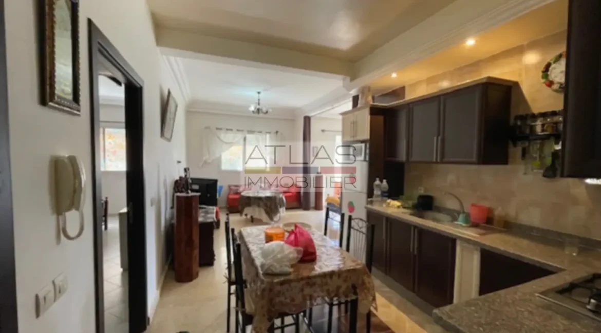 Situé à seulement 200 mètres de la plage, au deuxième étage d’une résidence sécurisée avec ascenseur, cet appartement lumineux bénéficie d’une orientation plein sud et d’une vue dégagée sans vis-à-vis, offrant ainsi une belle intimité et un cadre de vie agréable. Que ce soit pour une location longue durée ou un séjour de détente à Essaouira, ce bien séduit par son agencement fonctionnel et son ambiance chaleureuse.