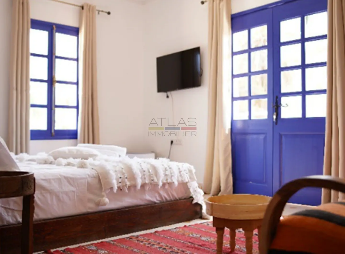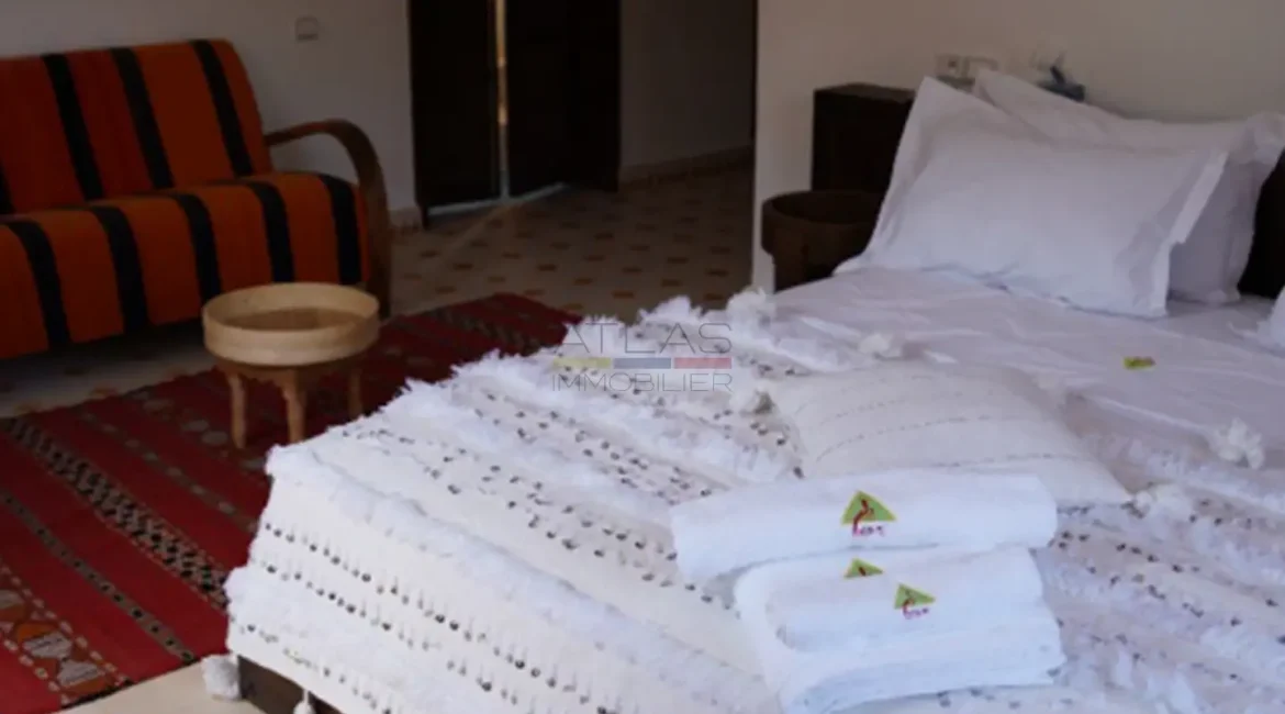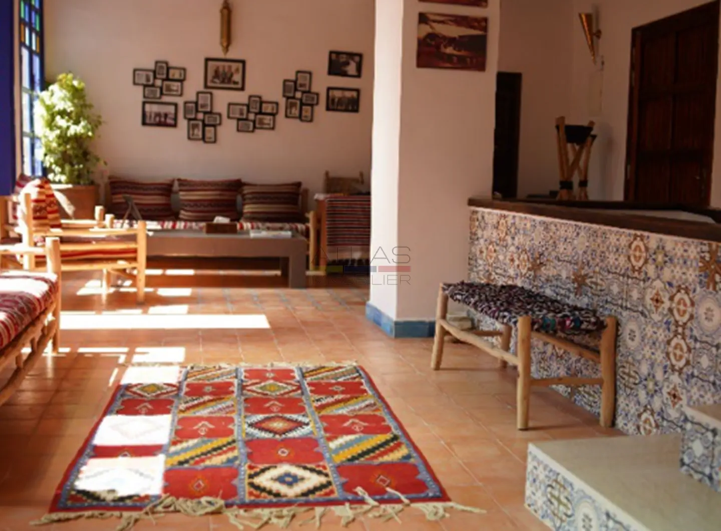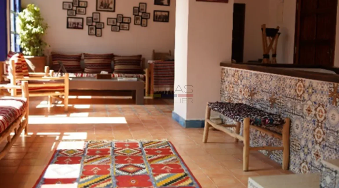 Actuellement exploitée en maison d’hôtes et relevant du statut Melkia avec réquisition en cours, cette propriété représente une opportunité rare d’investir dans un hébergement de charme au fort potentiel locatif et touristique, dans l’un des sites les plus authentiques du sud marocain.