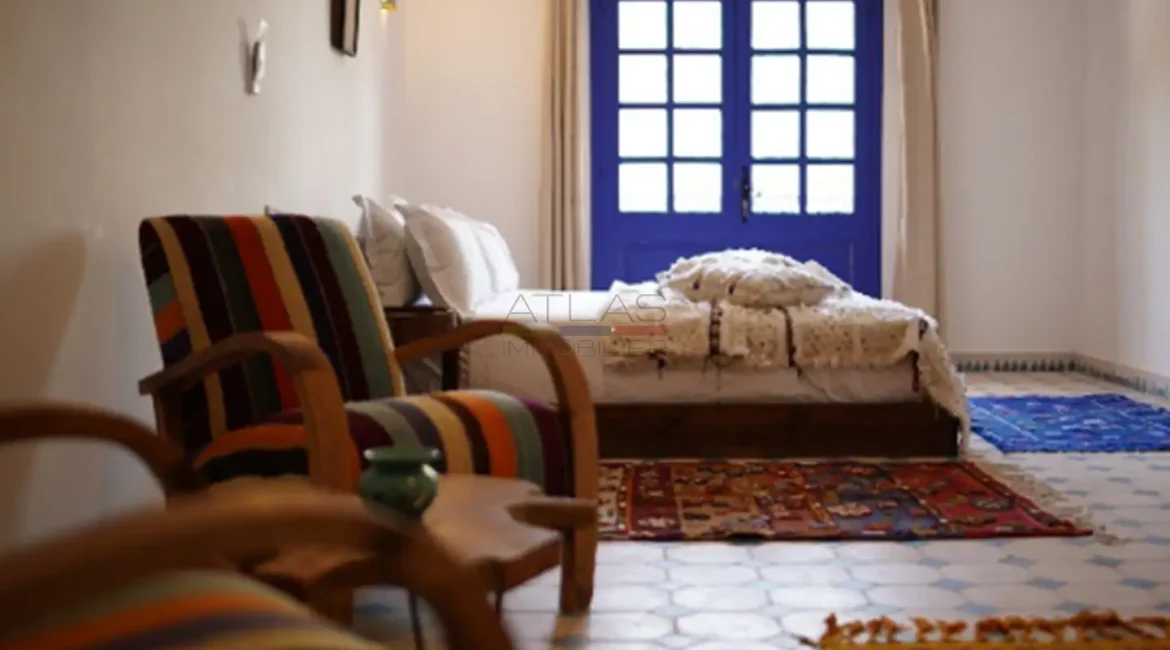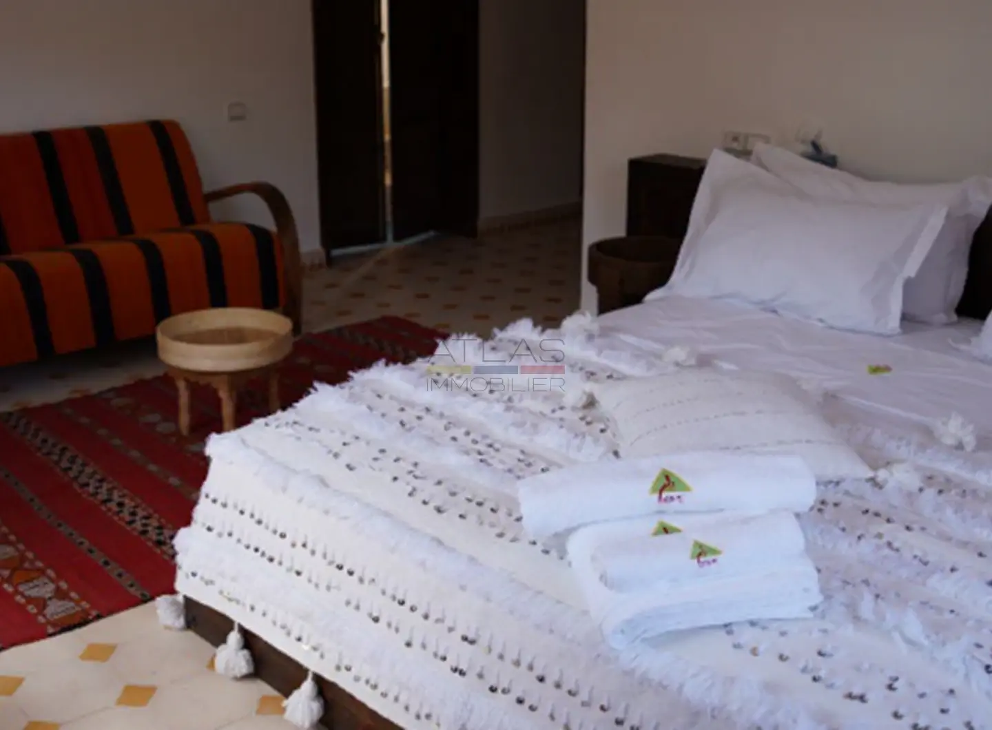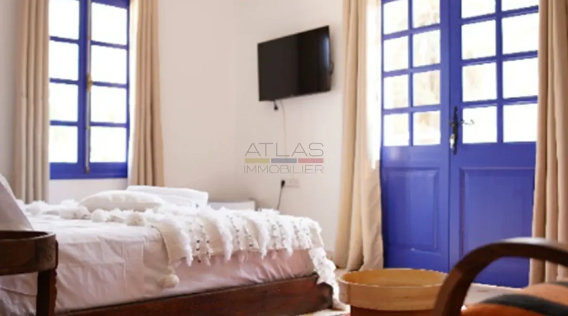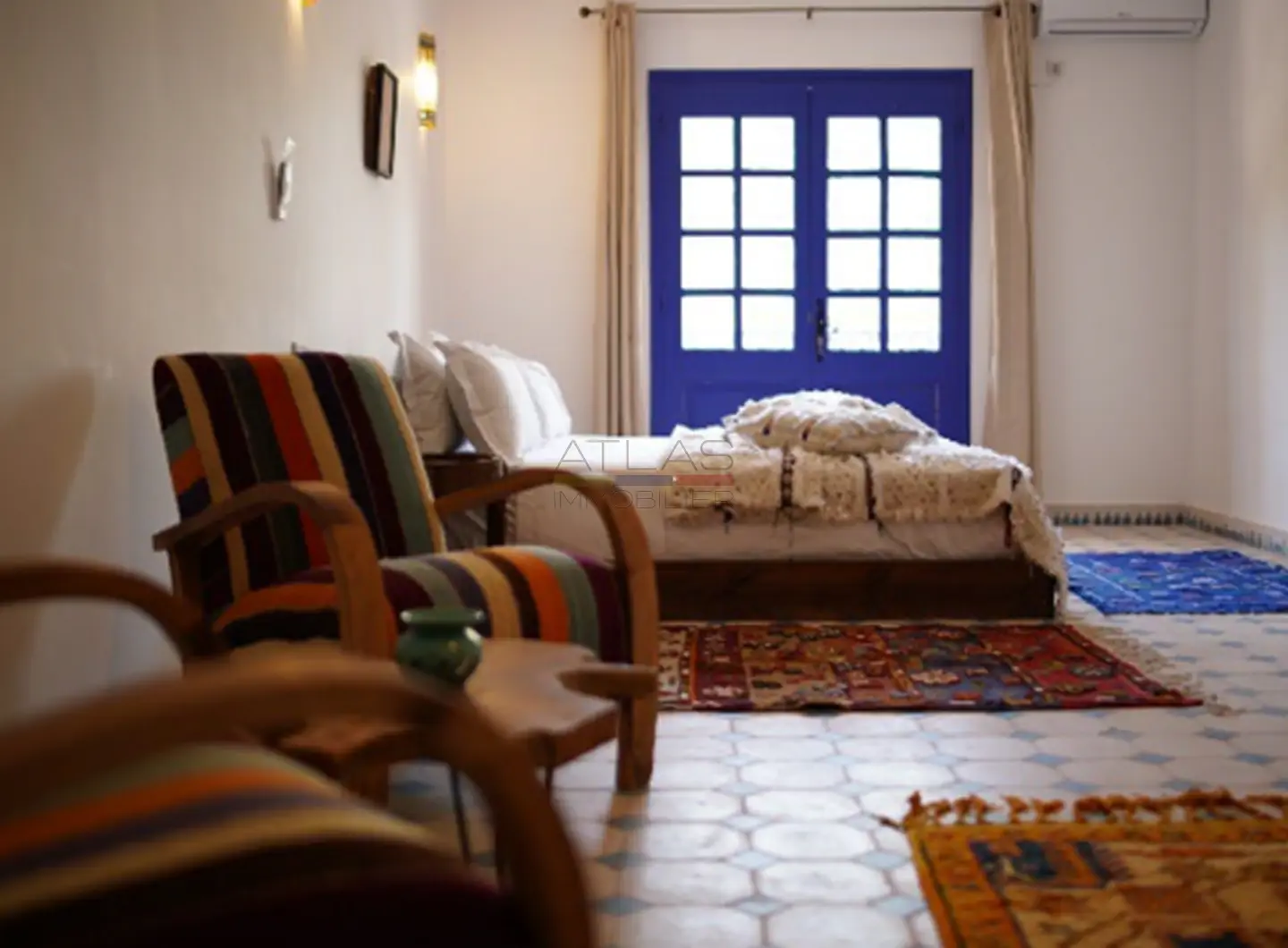 Actuellement exploitée en maison d’hôtes et relevant du statut Melkia avec réquisition en cours, cette propriété représente une opportunité rare d’investir dans un hébergement de charme au fort potentiel locatif et touristique, dans l’un des sites les plus authentiques du sud marocain.