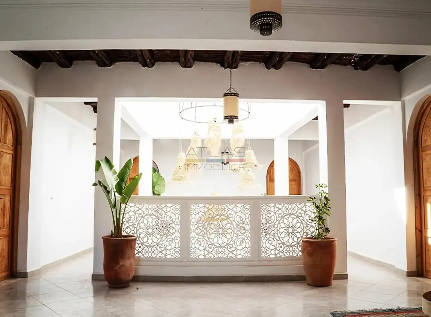 Dissimulée dans un environnement naturel préservé, au cœur des arganiers et à proximité immédiate d’une réserve naturelle, cette maison d’hôtes située à Douar Ait Haj Taher, dans la commune de Had Draa, à seulement quelques minutes d’Essaouira, séduit par son authenticité, ses volumes et son fort potentiel d’exploitation touristique. Implantée sur un terrain arboré de 3 000 m², elle a été pensée comme un véritable lieu de ressourcement, capable d’accueillir confortablement entre 16 et 18 personnes, dans un cadre paisible et recherché pour l’activité de maison d’hôtes à Essaouira.